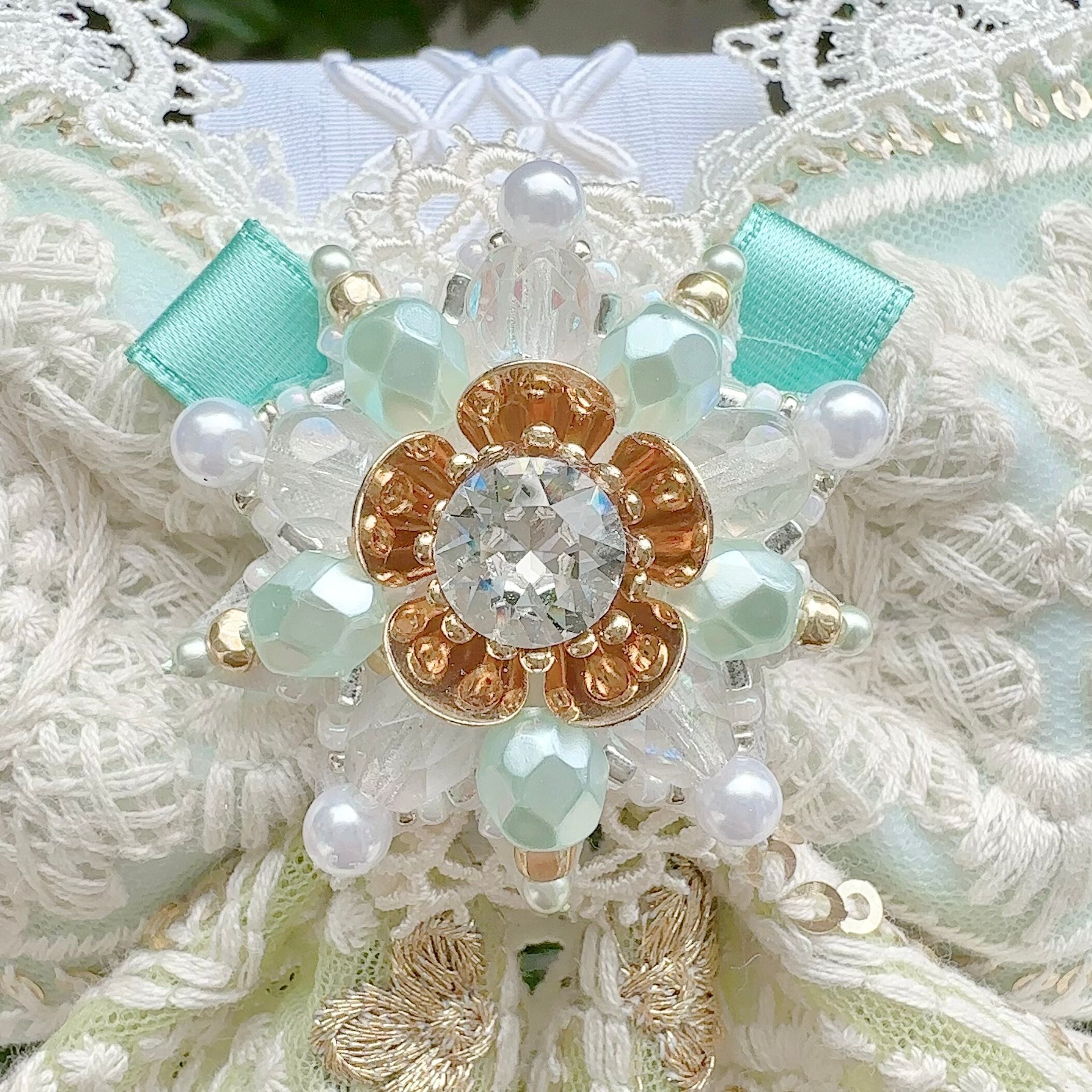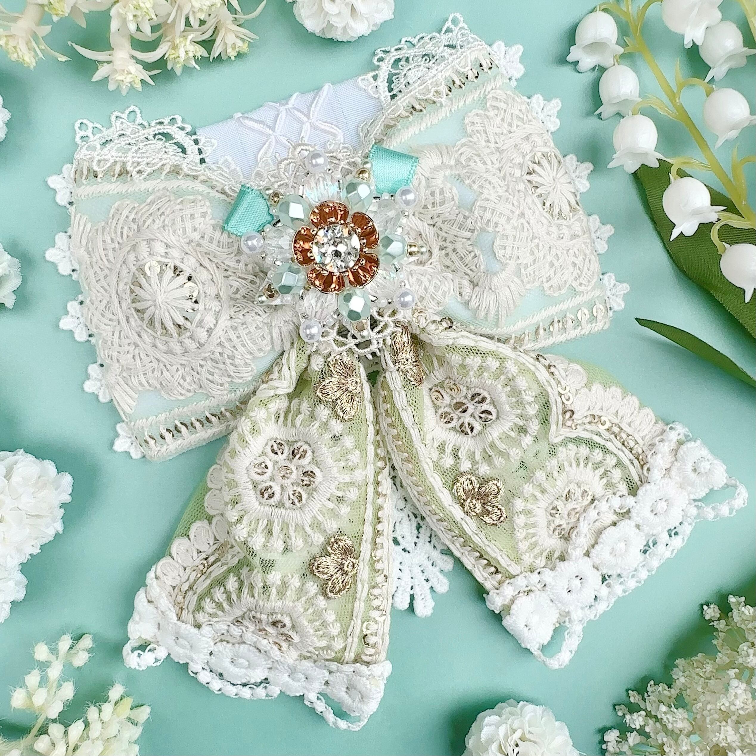 ※バレッタの金具が見えてしまわないように、正面から見て大幅に影響がないようにレースを使用する場合があります。