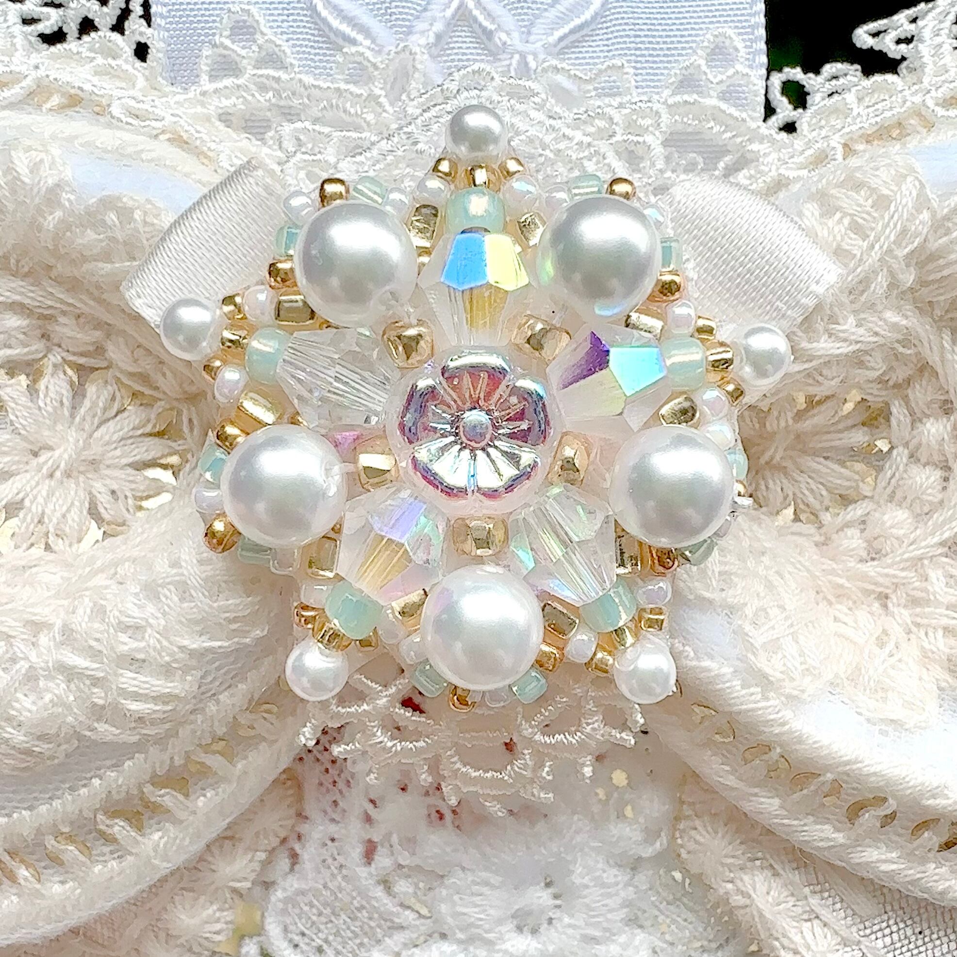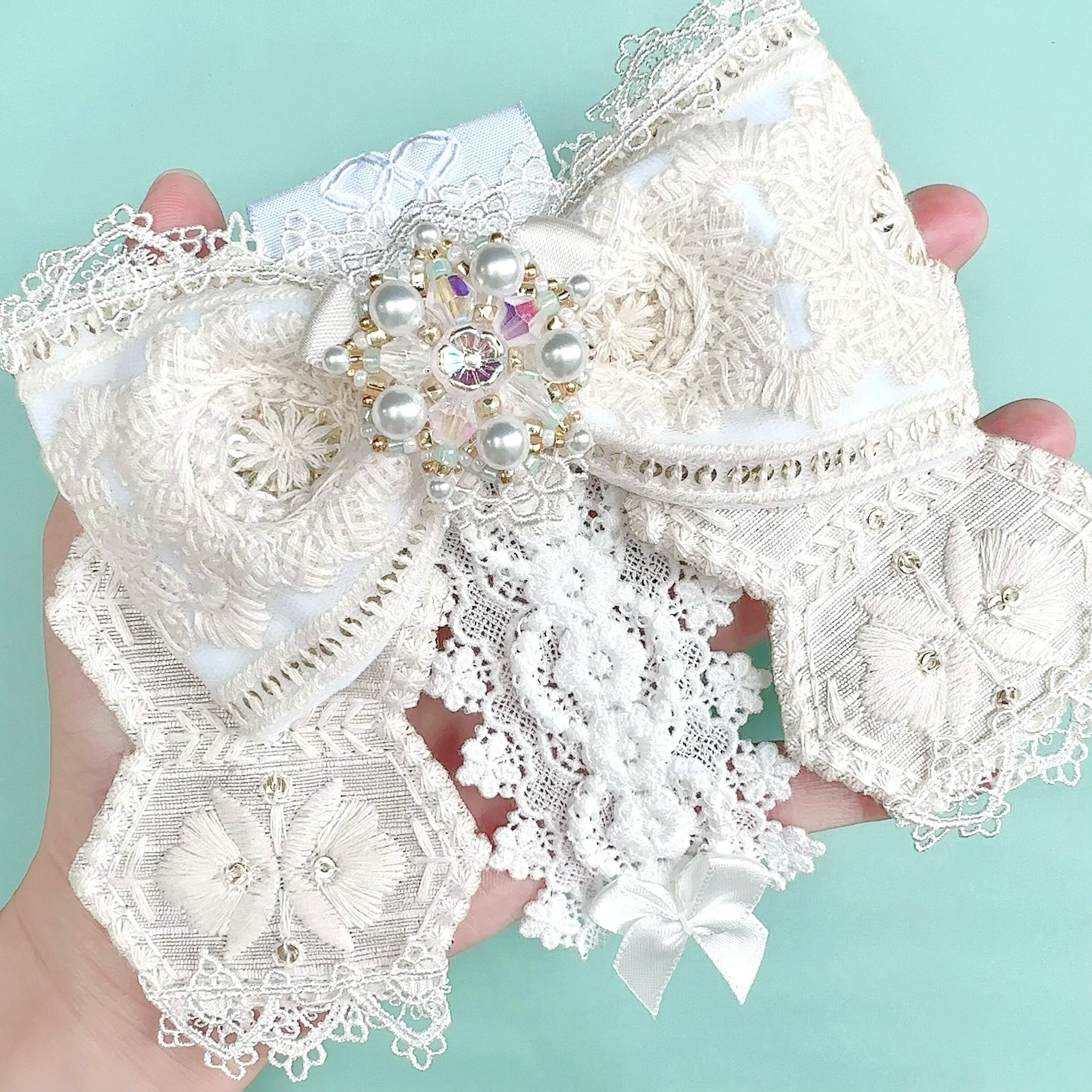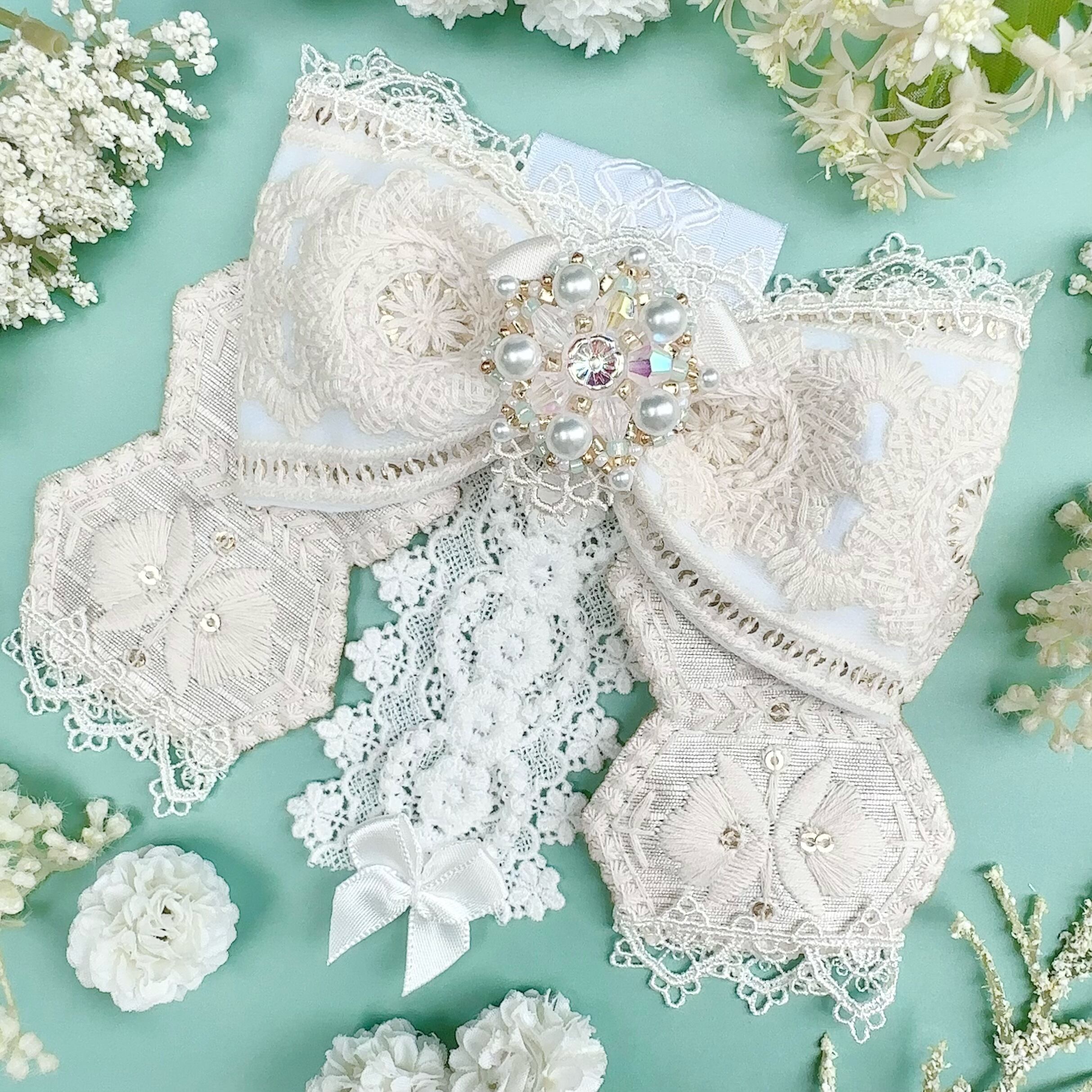 ※バレッタの金具が見えてしまわないように、正面から見て大幅に影響がないようにレースを使用する場合があります。