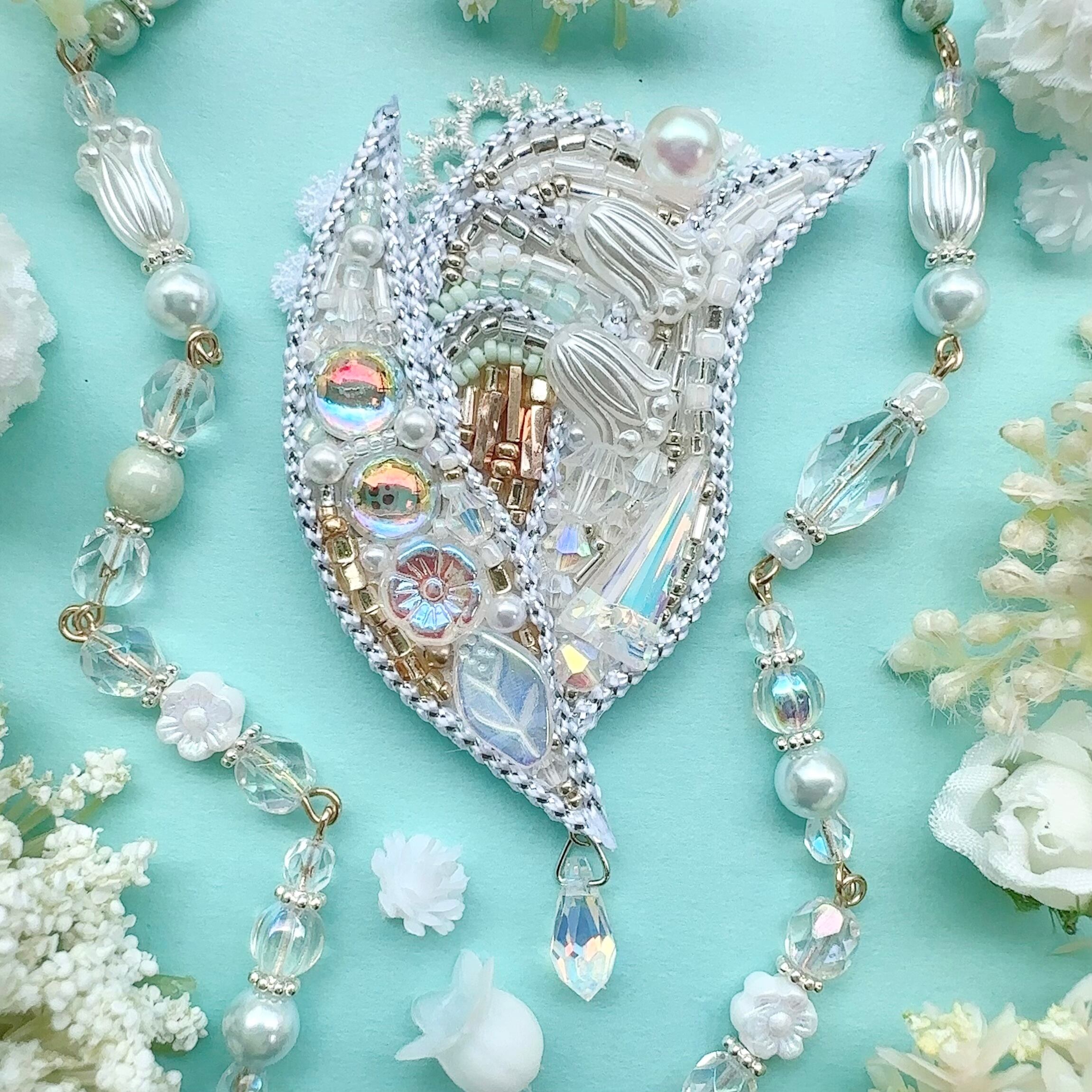 ビーズ刺繍のブローチ・ネックレス・バッグチャームの3wayです。