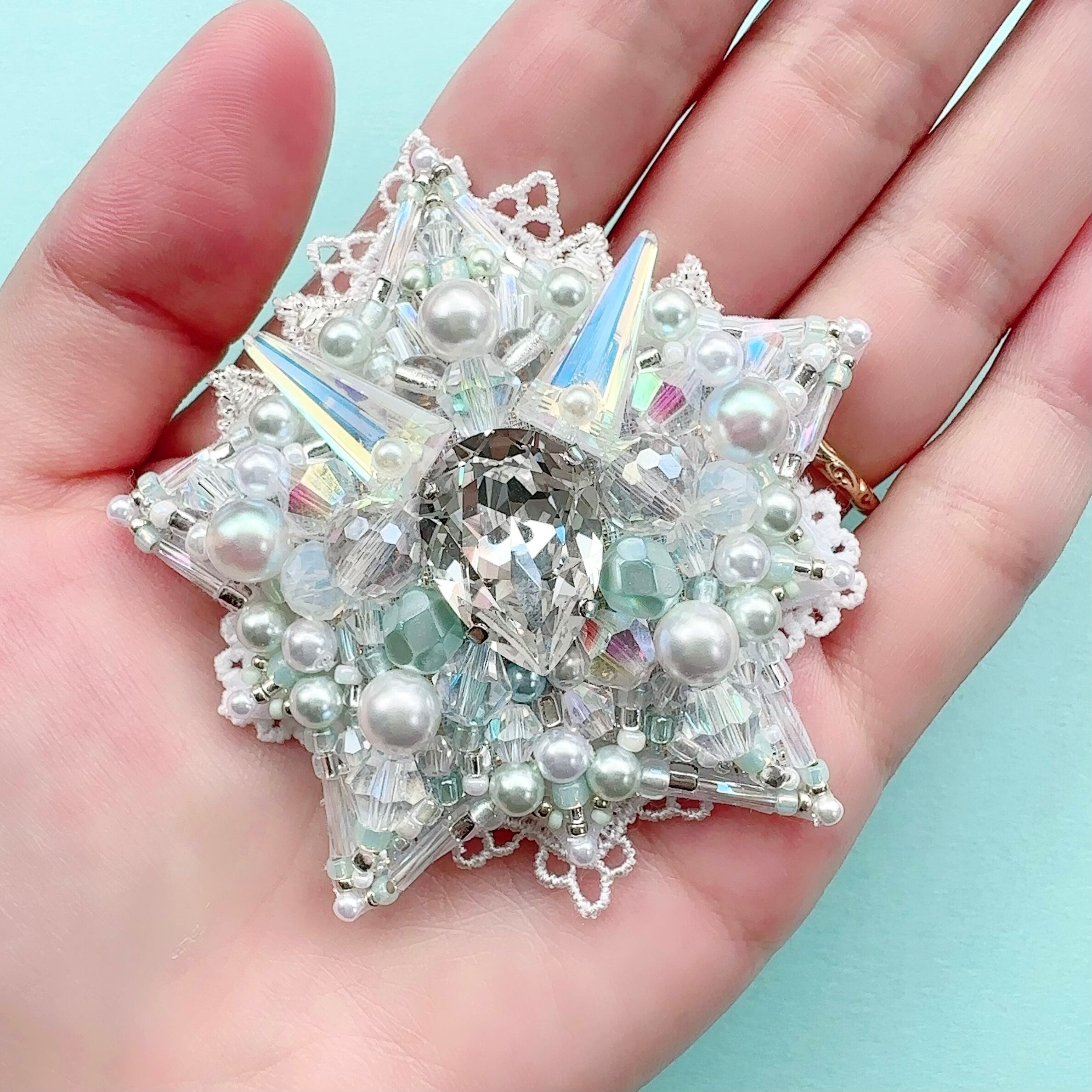 ビーズ刺繍のブローチ・ネックレス・バッグチャームの3wayです。