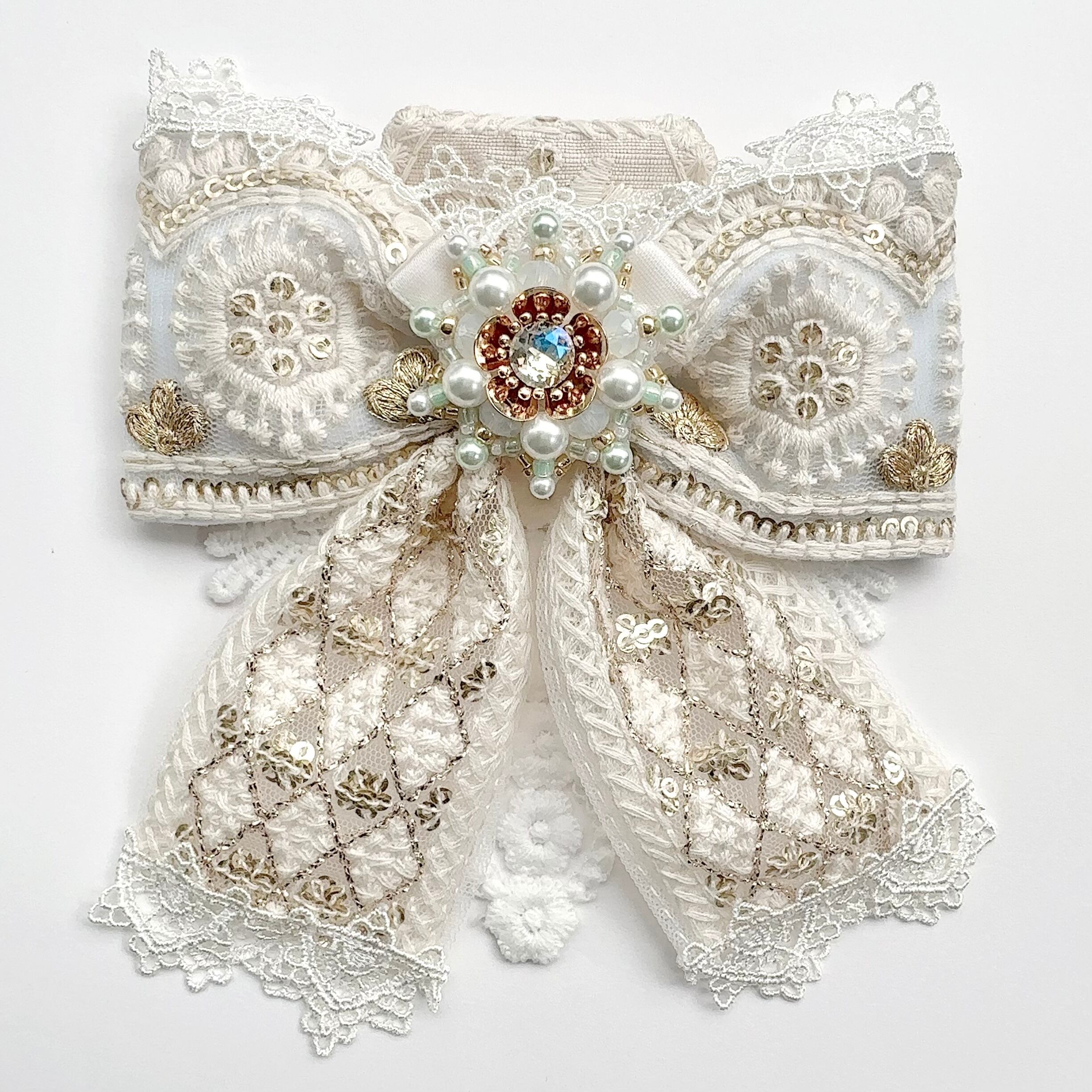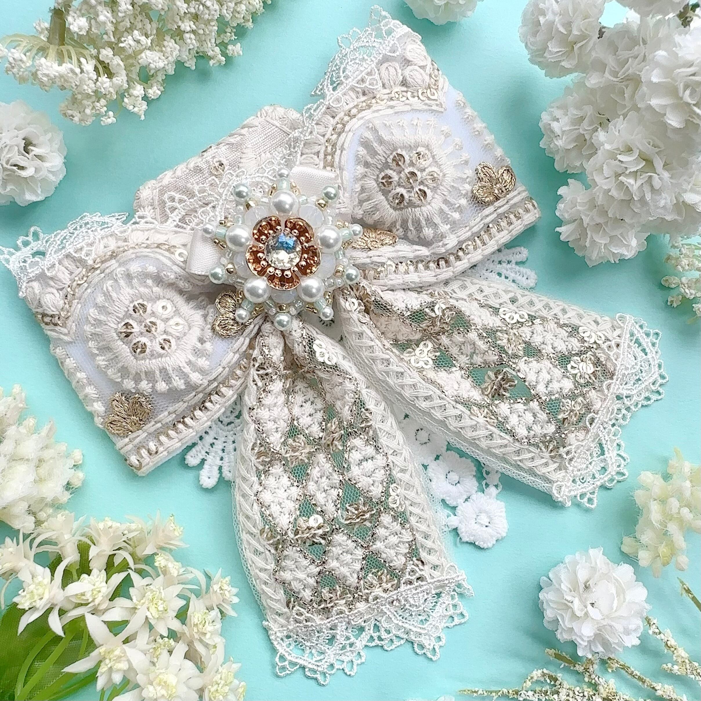 ※バレッタの金具が見えてしまわないように、正面から見て大幅に影響がないようにレースを使用する場合があります。