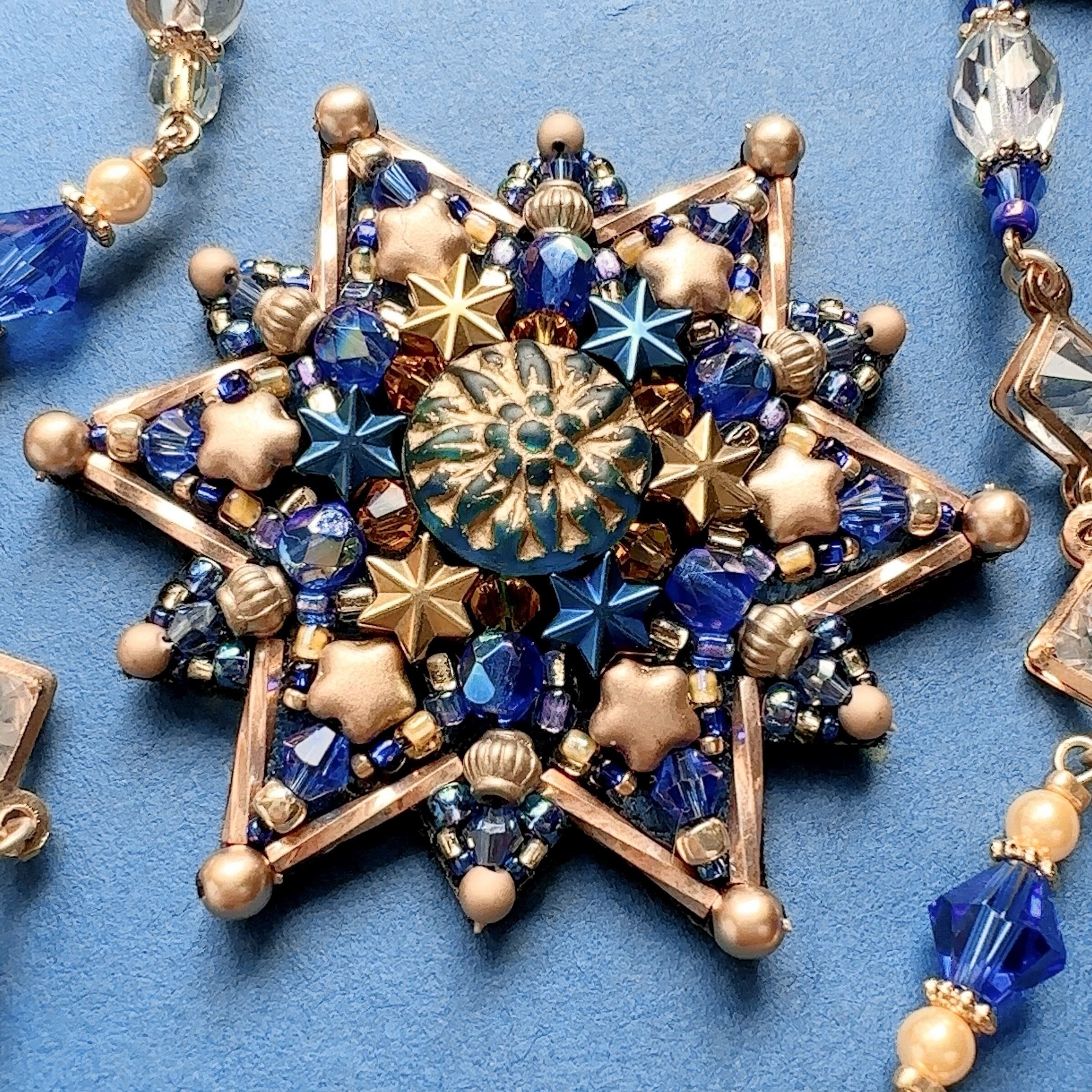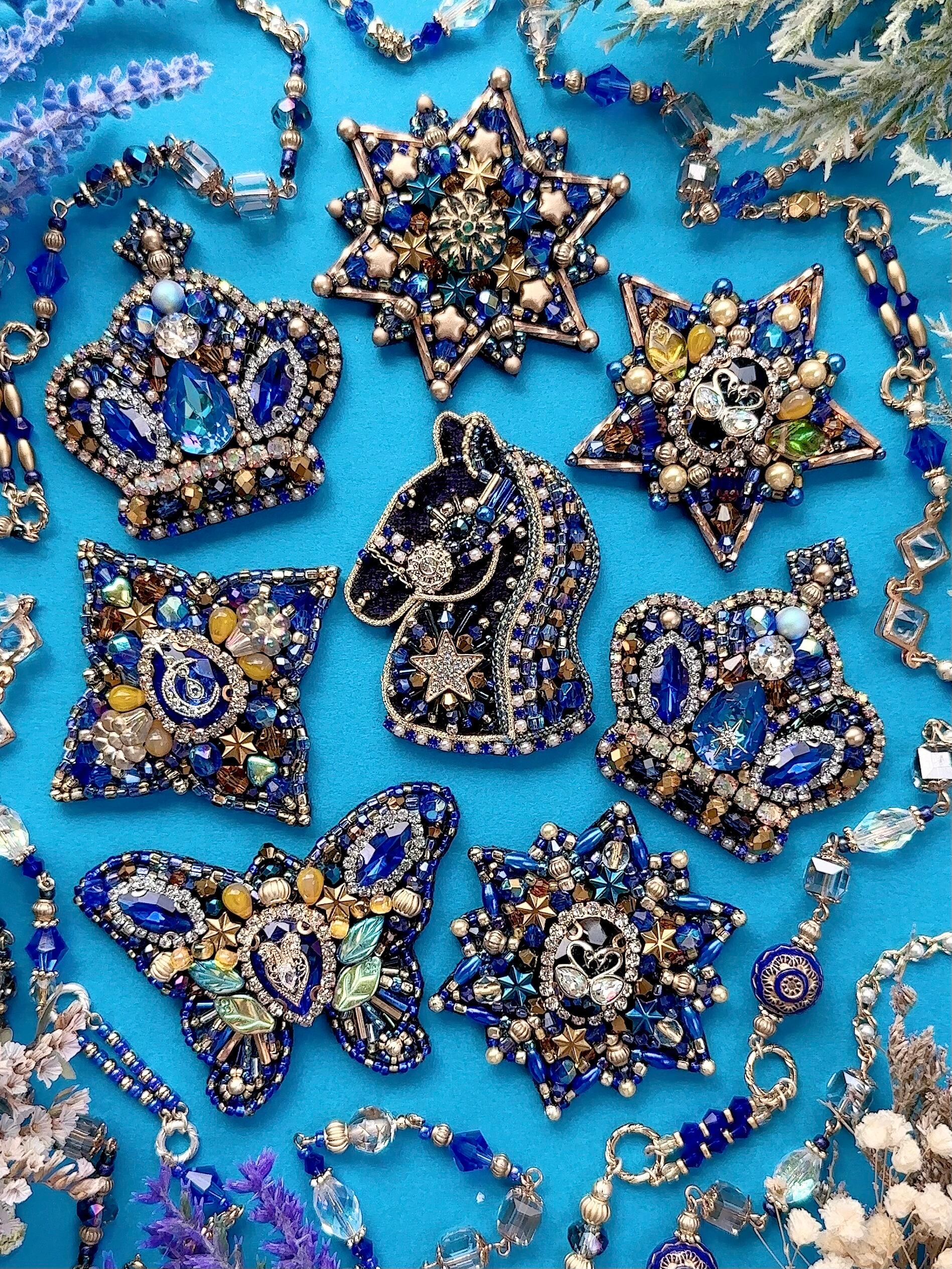 ビーズ刺繍のブローチ・ネックレス・バッグチャームの3wayです。
