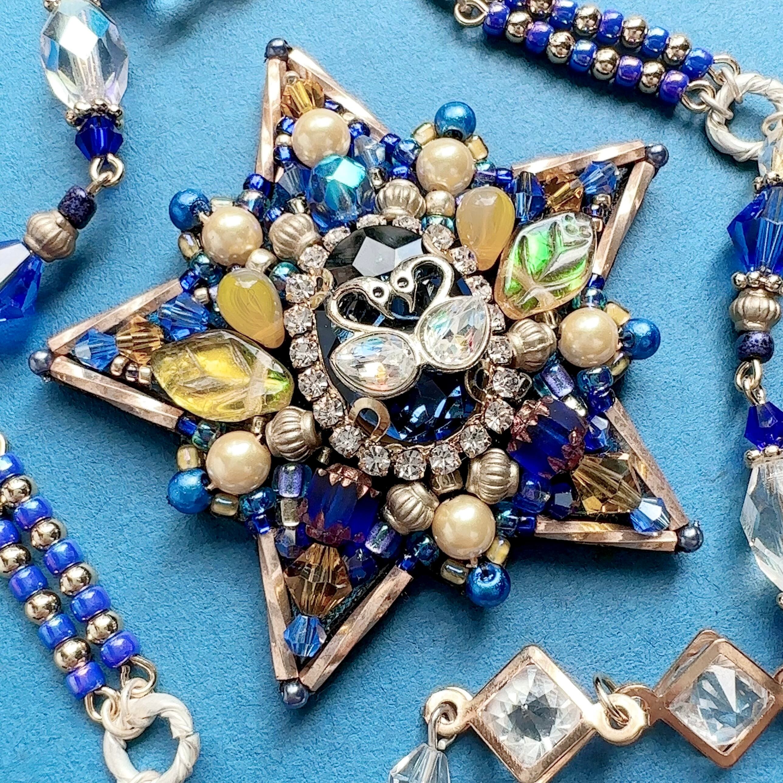ビーズ刺繍のブローチ・ネックレス・バッグチャームの3wayです。