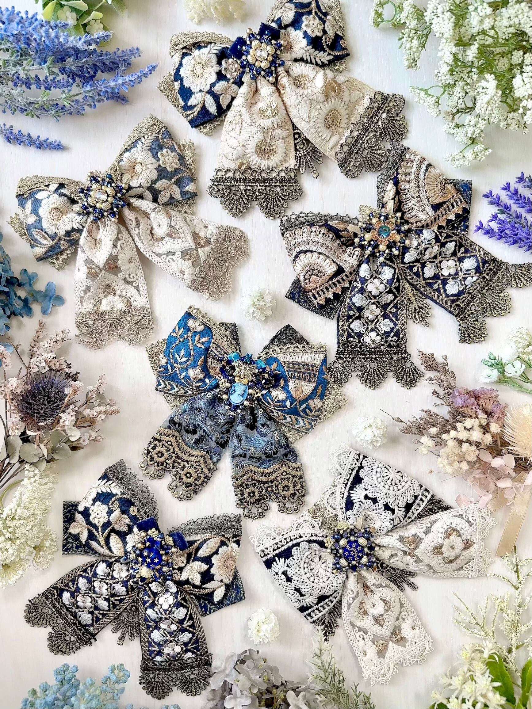 ※バレッタの金具が見えてしまわないように、正面から見て大幅に影響がないようにレースを使用する場合があります。