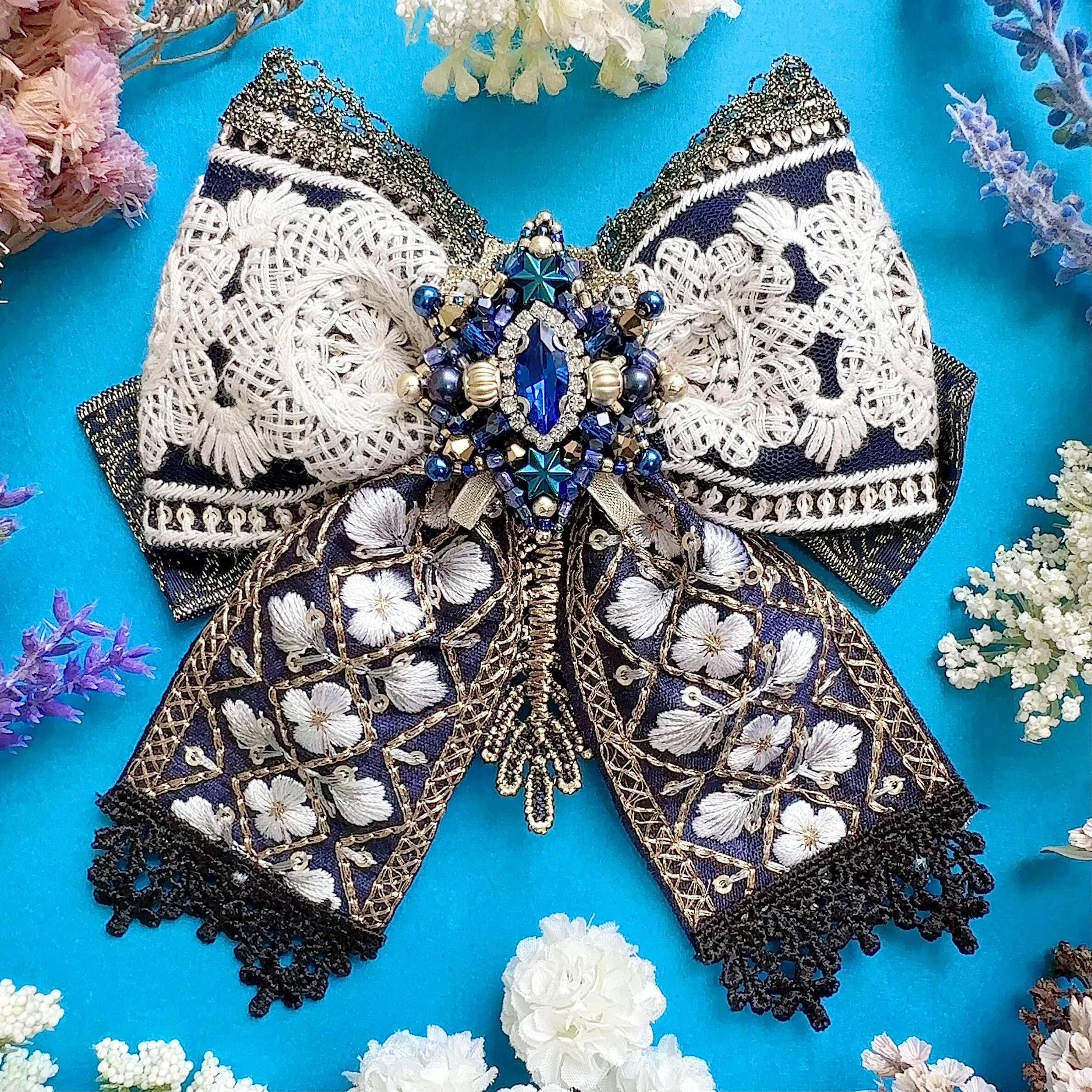 ※バレッタの金具が見えてしまわないように、正面から見て大幅に影響がないようにレースを使用する場合があります。