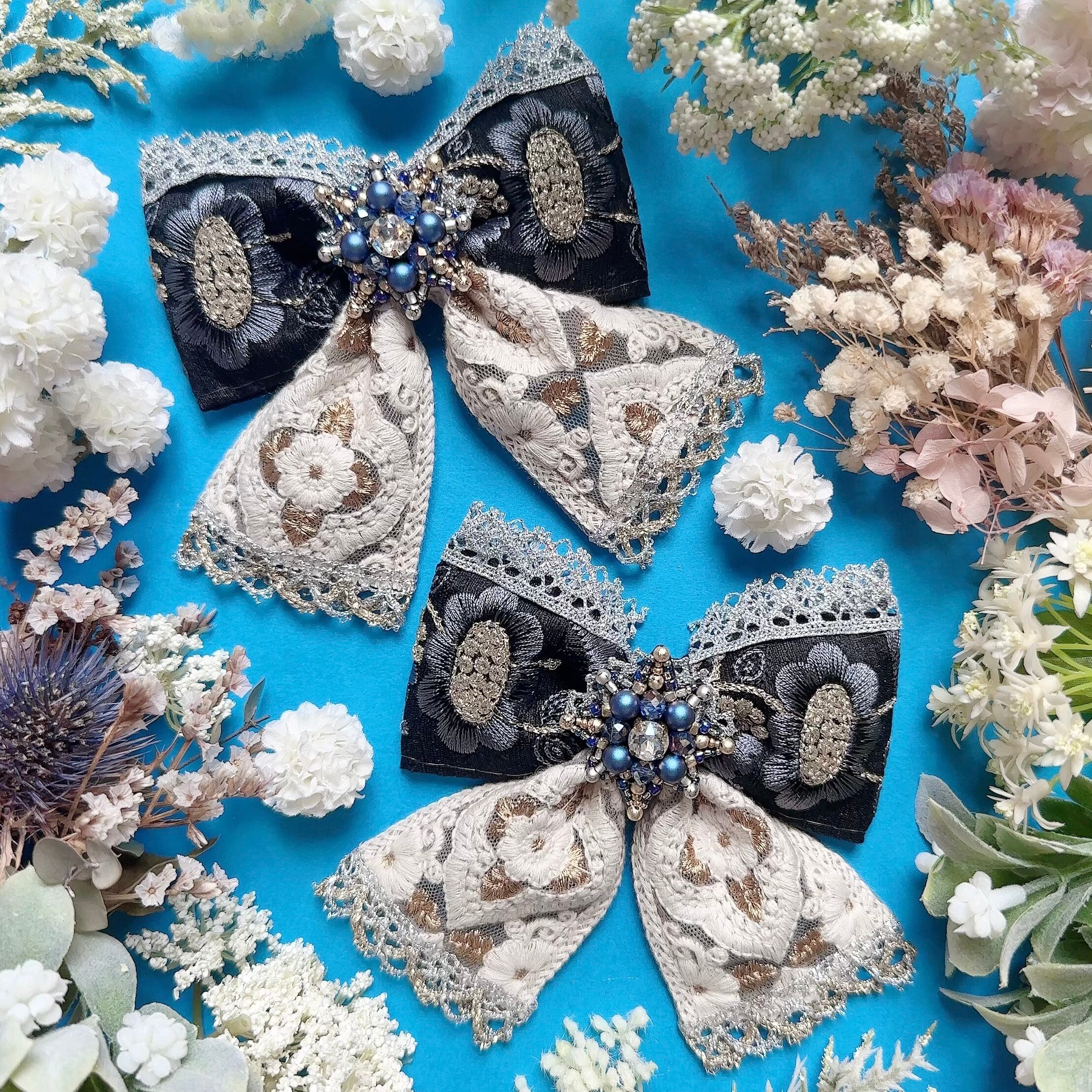 ビーズ刺繍と刺繍リボンの少し小さめのおリボンになります。