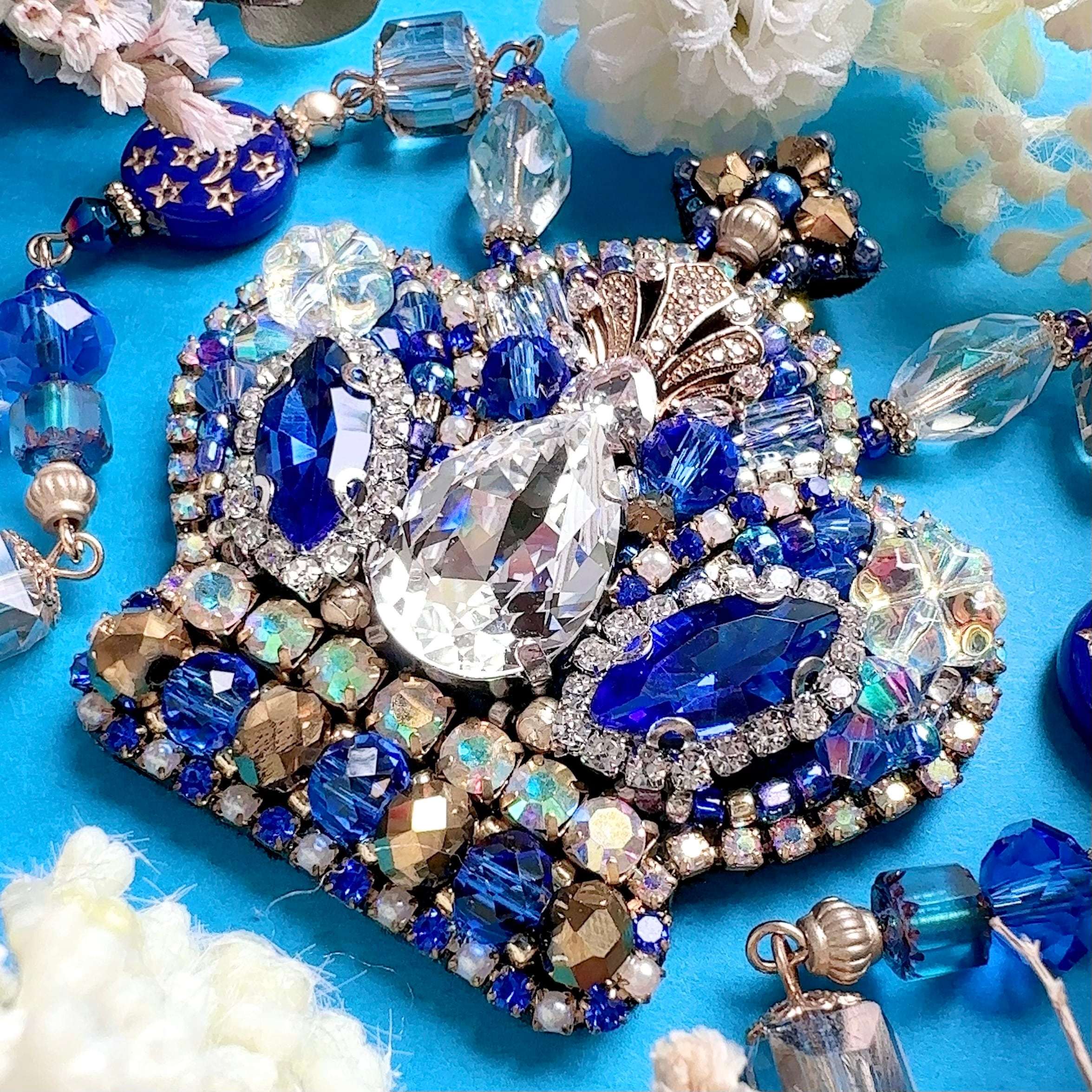 ビーズ刺繍のブローチ・ネックレス・バッグチャームの3wayです。