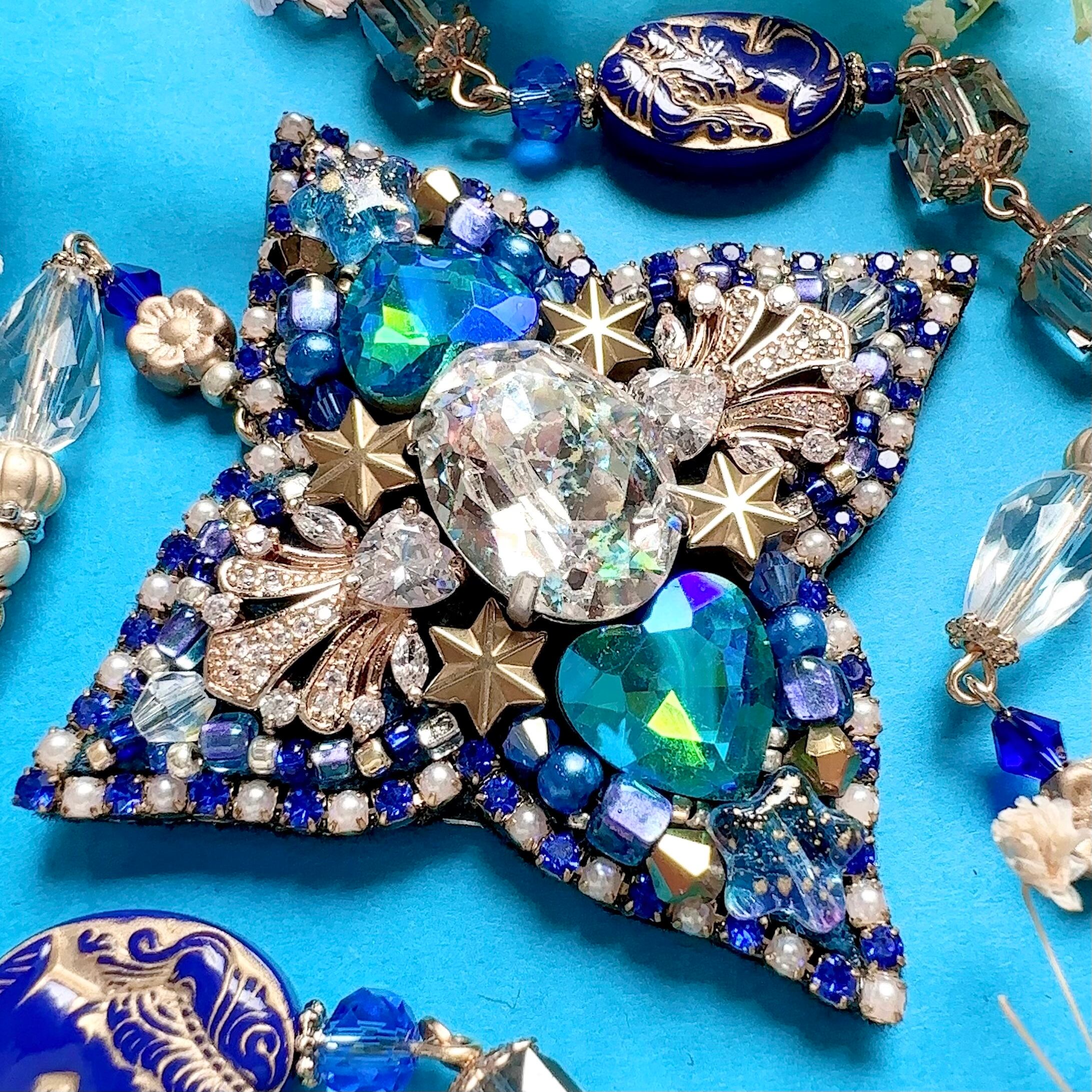 ビーズ刺繍のブローチ・ネックレス・バッグチャームの3wayです。