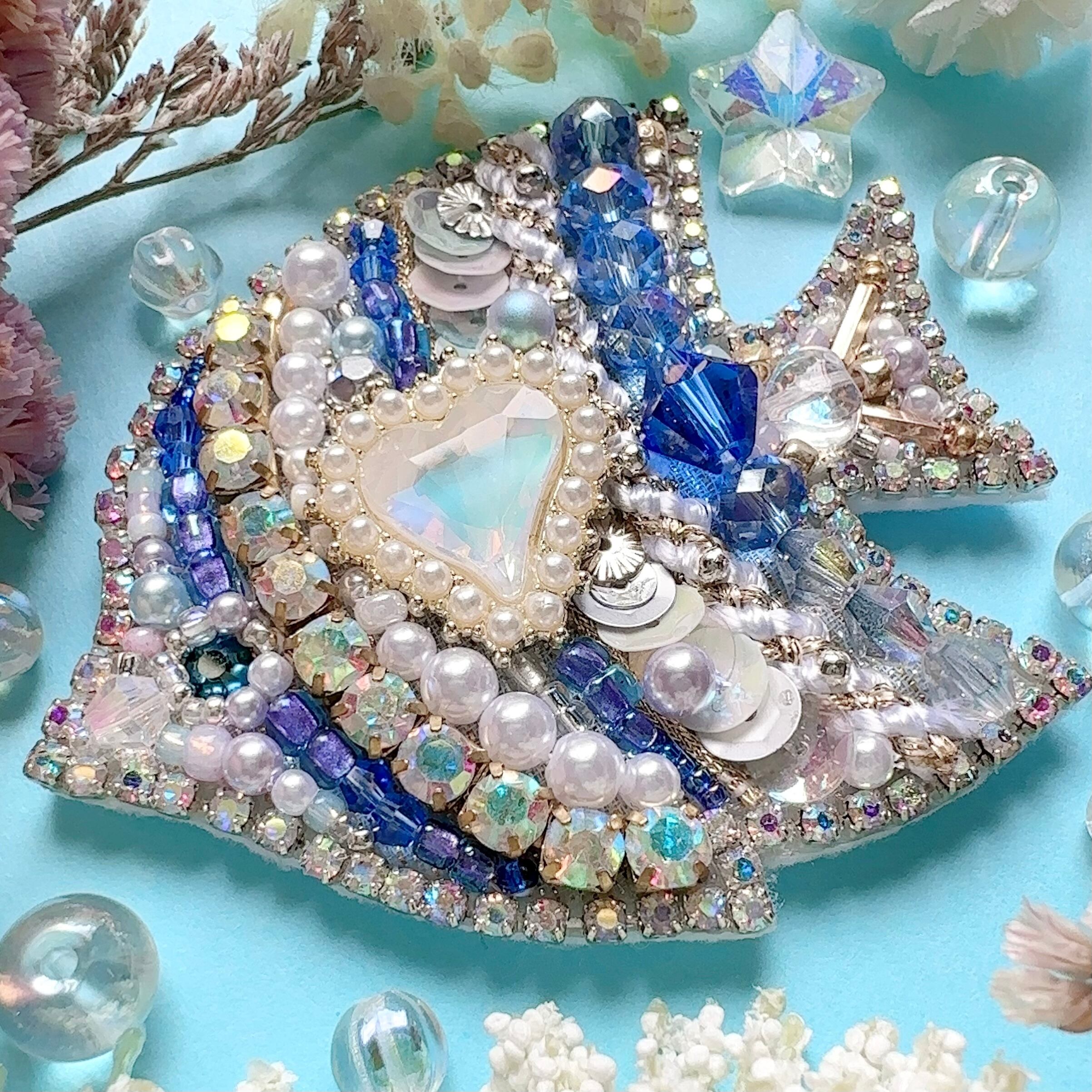 ビーズ刺繍のブローチ・ネックレス・バッグチャームの3wayです。
