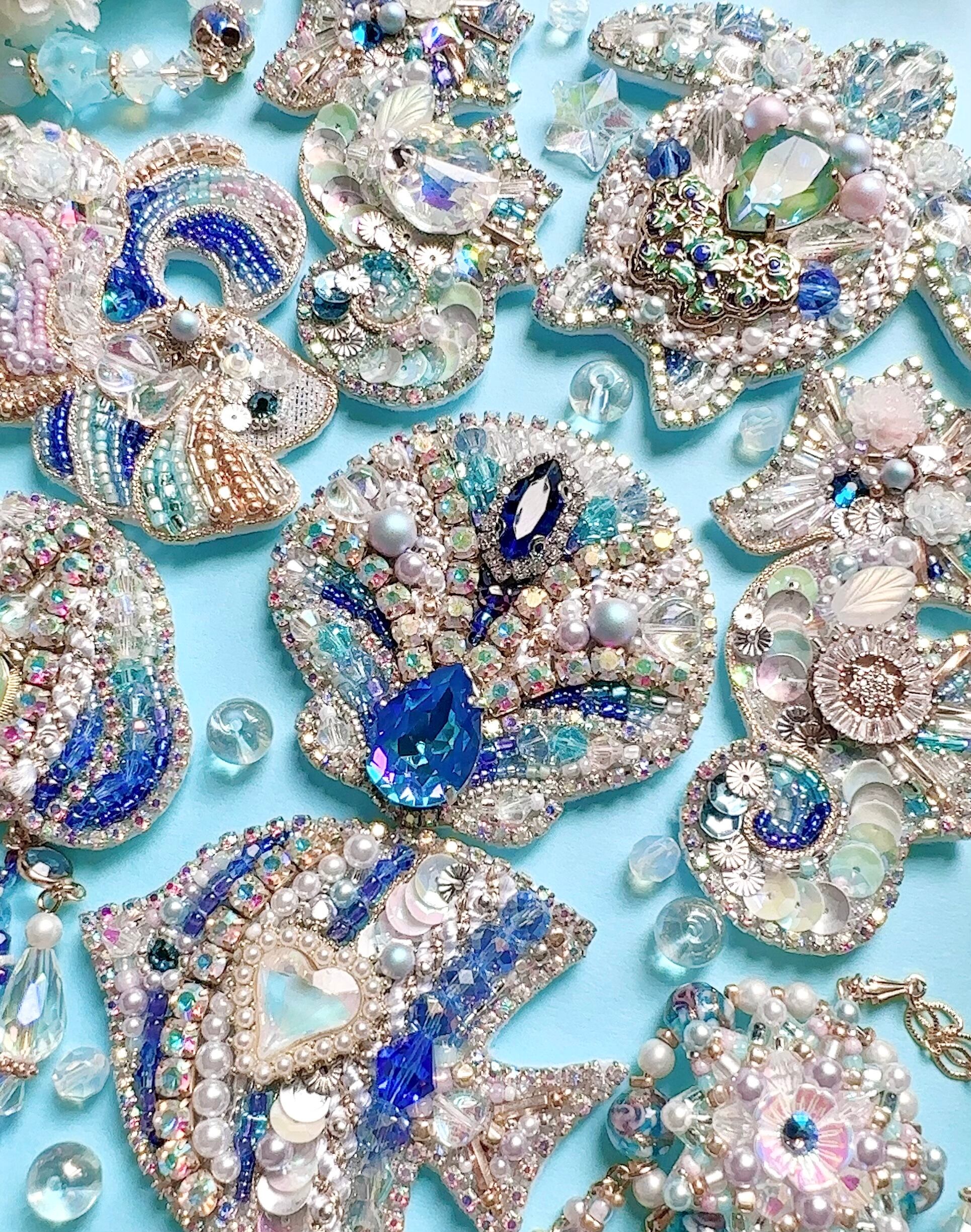 ビーズ刺繍のブローチ・ネックレス・バッグチャームの3wayです。
