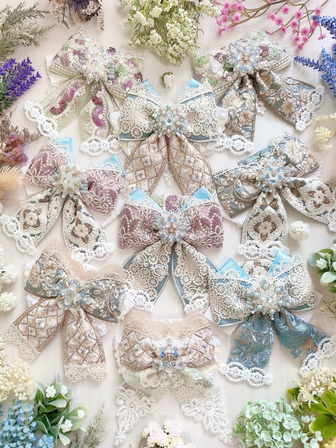 ※バレッタの金具が見えてしまわないように、正面から見て大幅に影響がないようにレースを使用する場合があります。