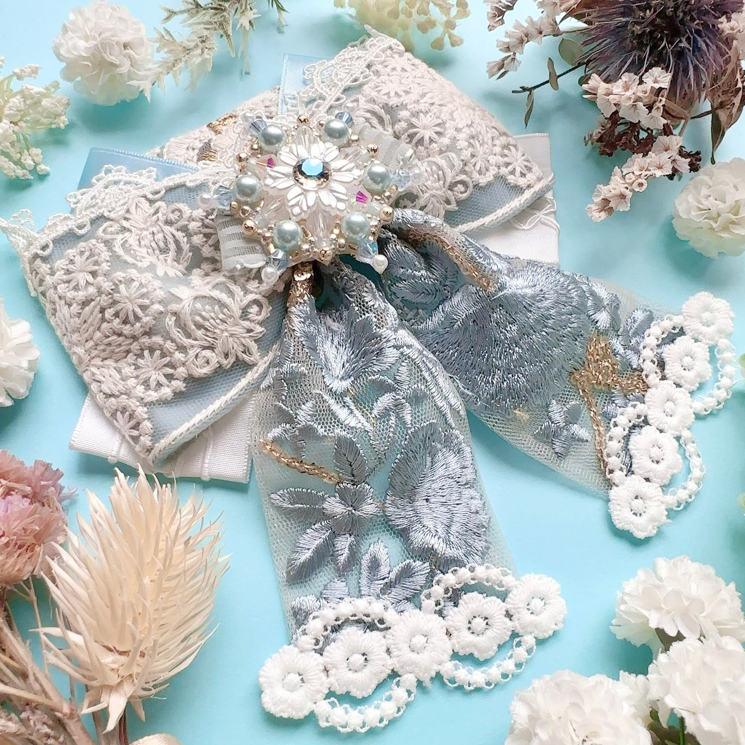 ビーズ刺繍と刺繍リボンの