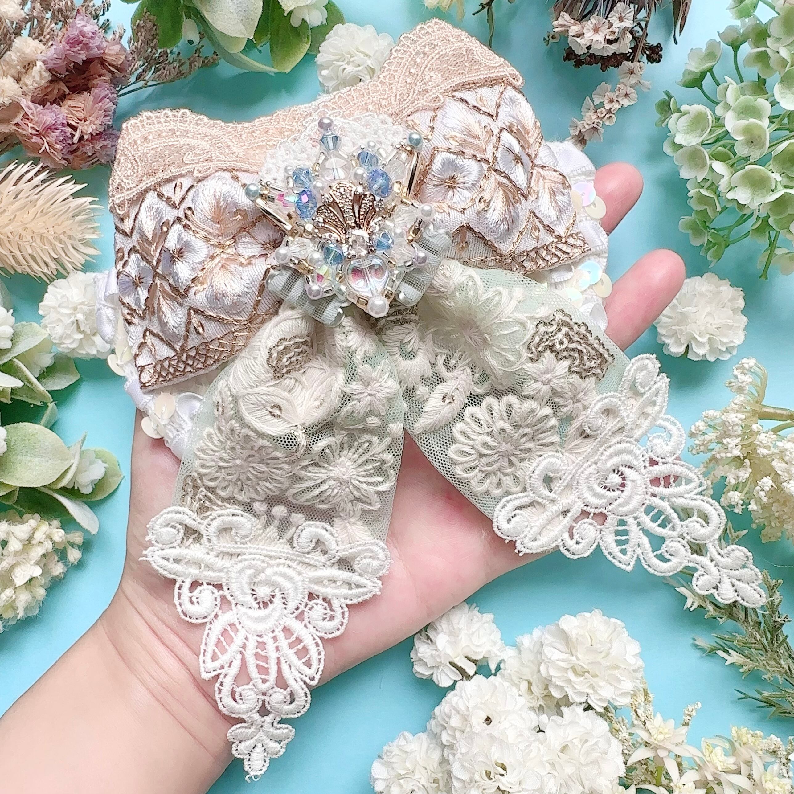 ※バレッタの金具が見えてしまわないように、正面から見て大幅に影響がないようにレースを使用する場合があります。