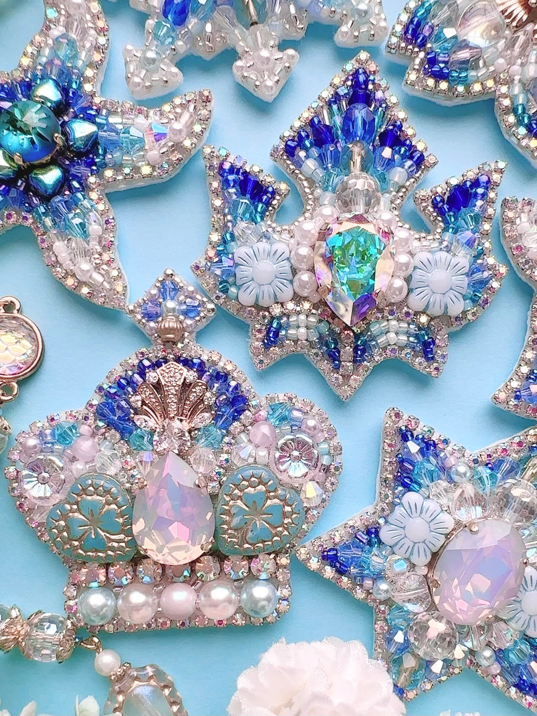 ビーズ刺繍のブローチ・ネックレス・バッグチャームの3wayです。