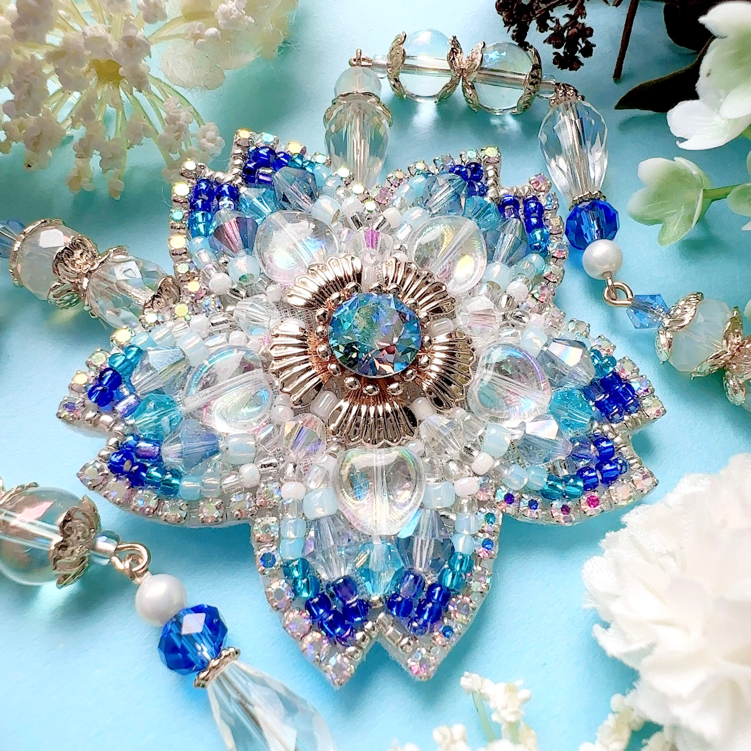 ビーズ刺繍のブローチ・ネックレス・バッグチャームの3wayです。