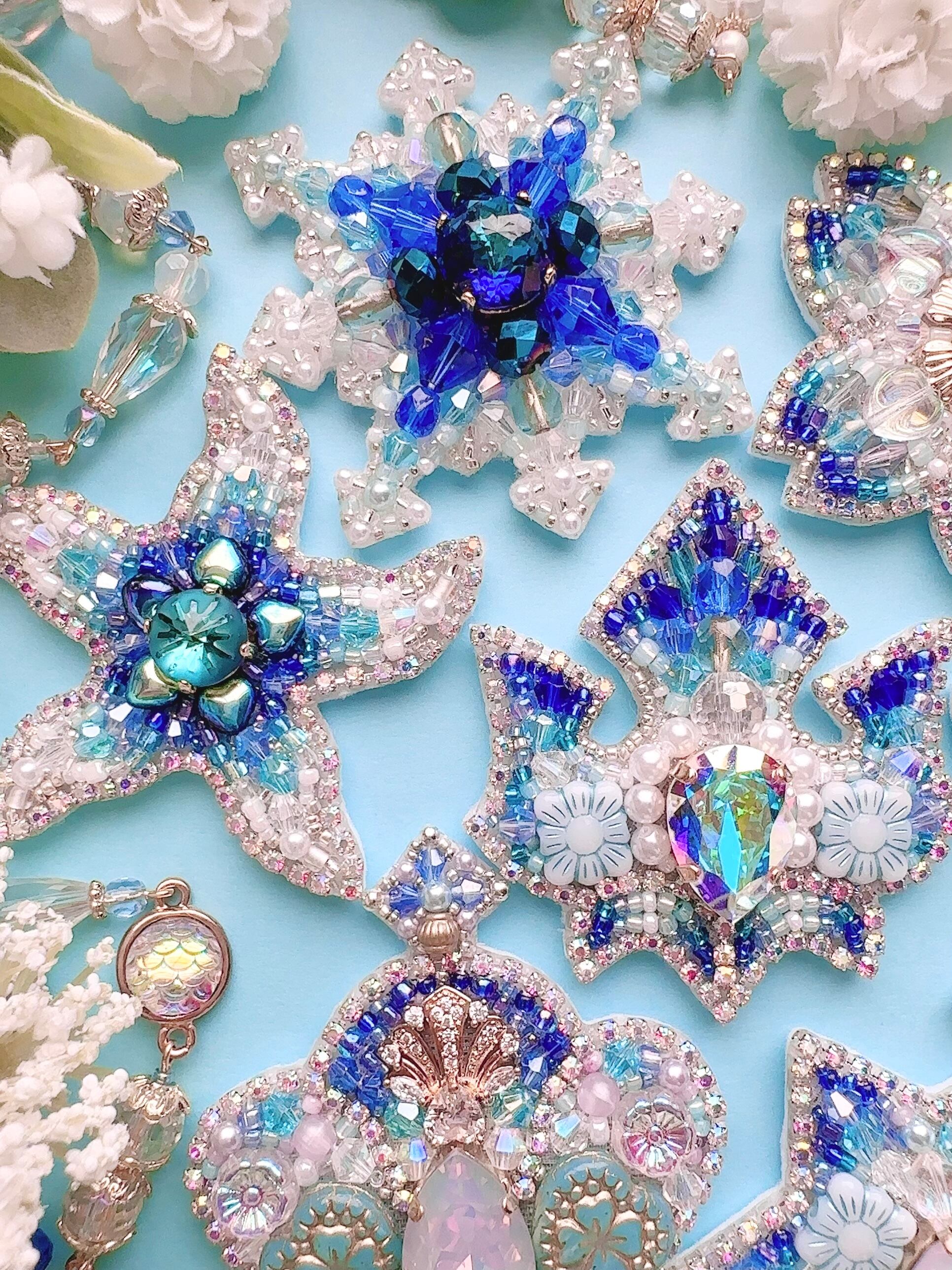 ビーズ刺繍のブローチ・ネックレス・バッグチャームの3wayです。