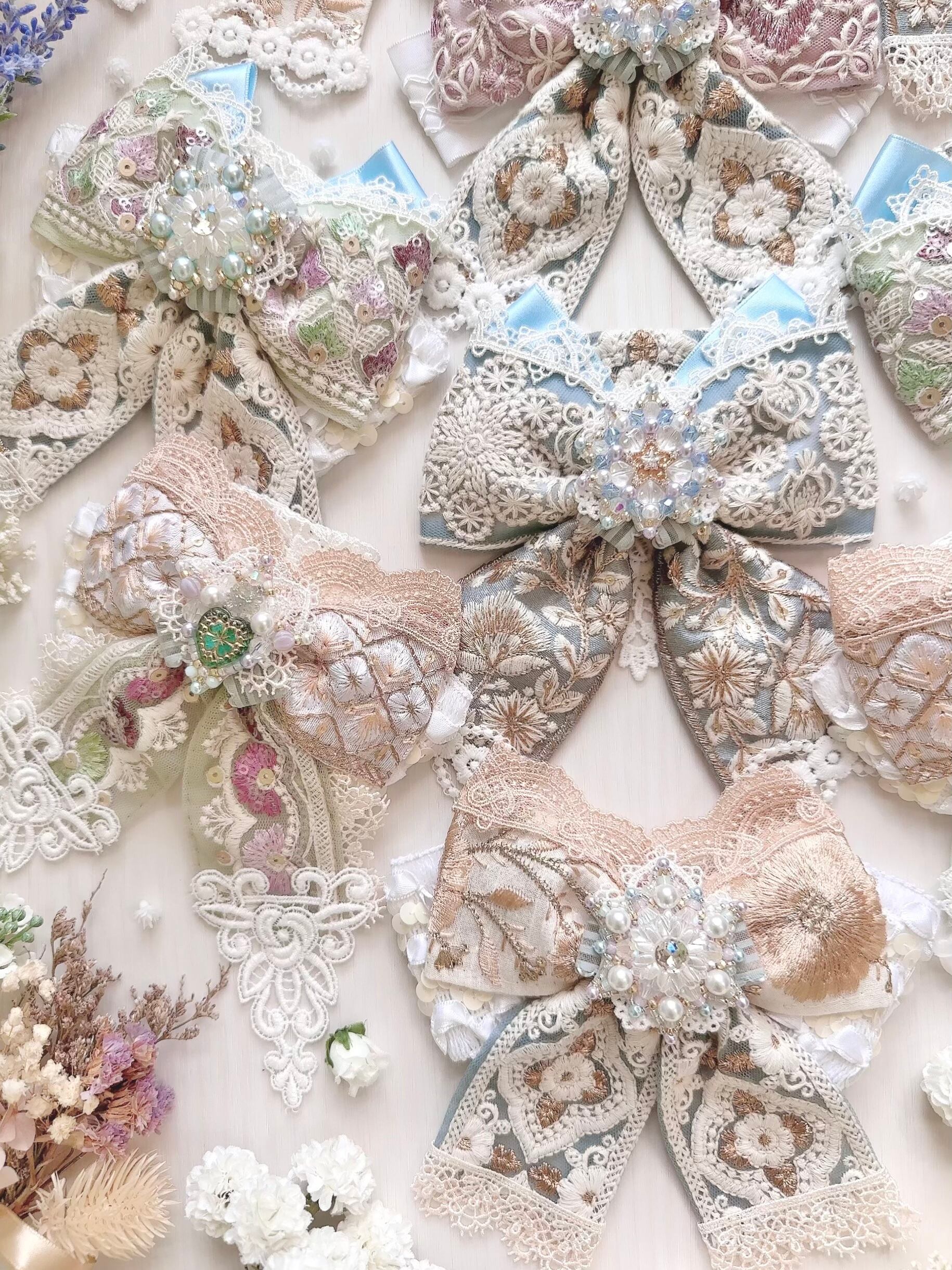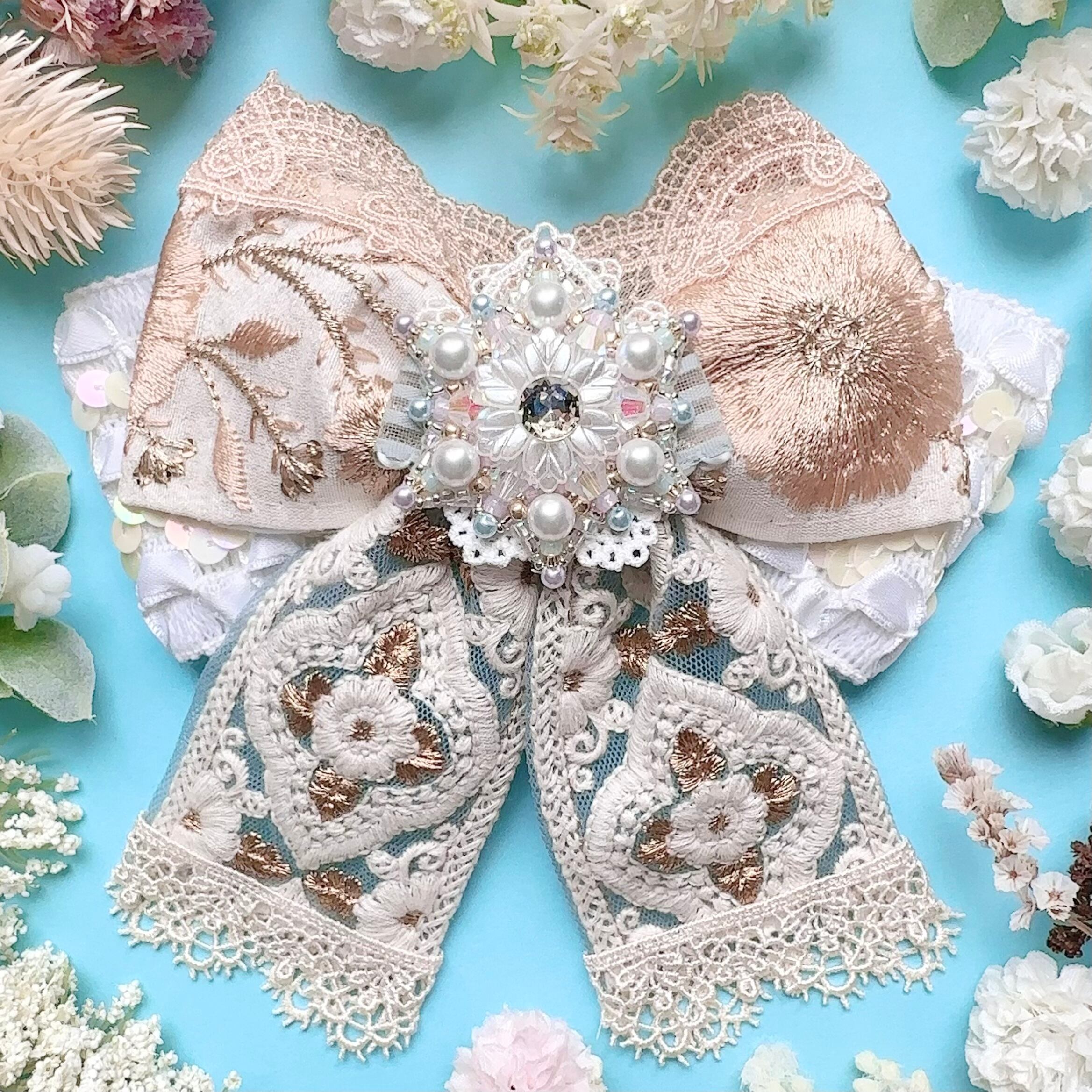 ※バレッタの金具が見えてしまわないように、正面から見て大幅に影響がないようにレースを使用する場合があります。