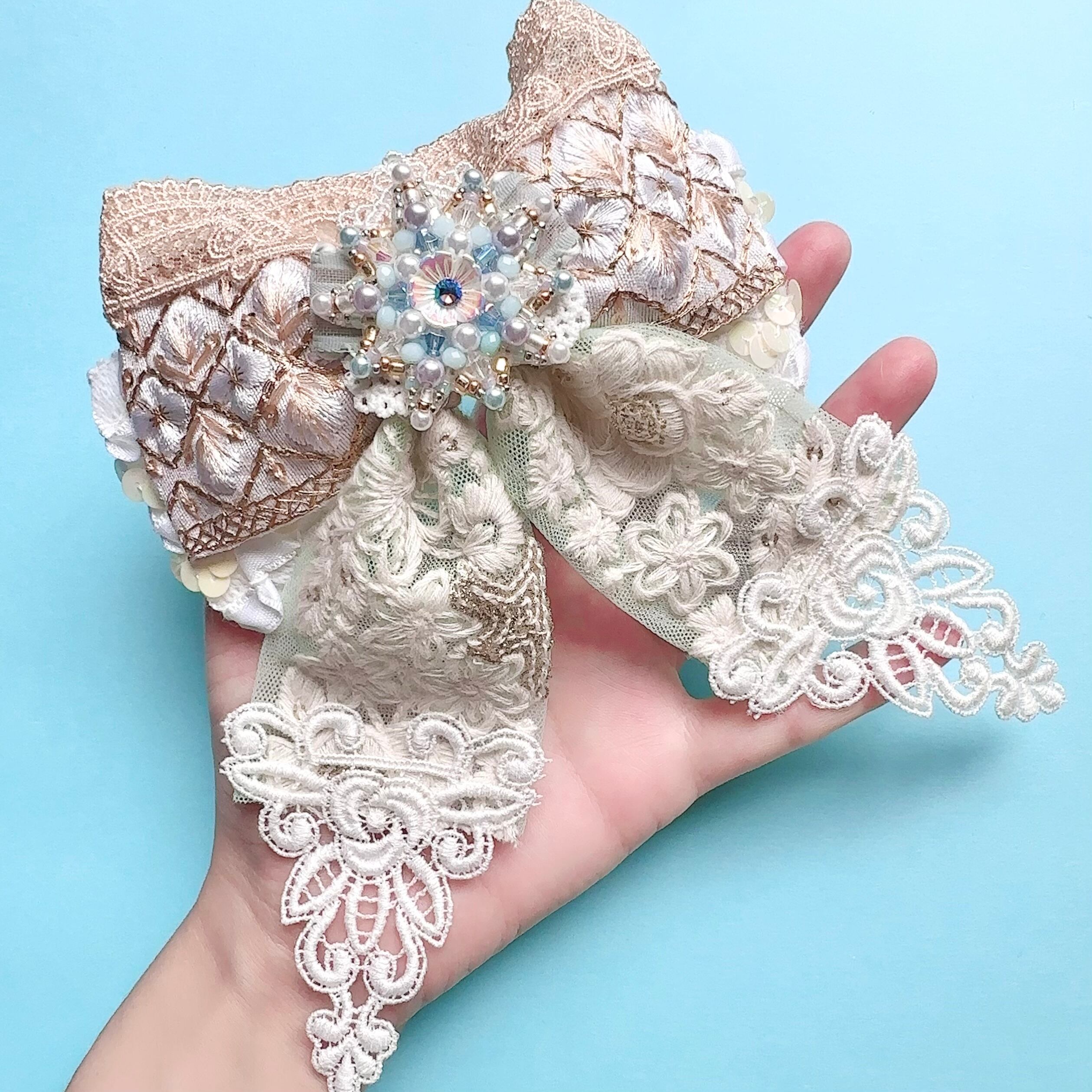 ※バレッタの金具が見えてしまわないように、正面から見て大幅に影響がないようにレースを使用する場合があります。