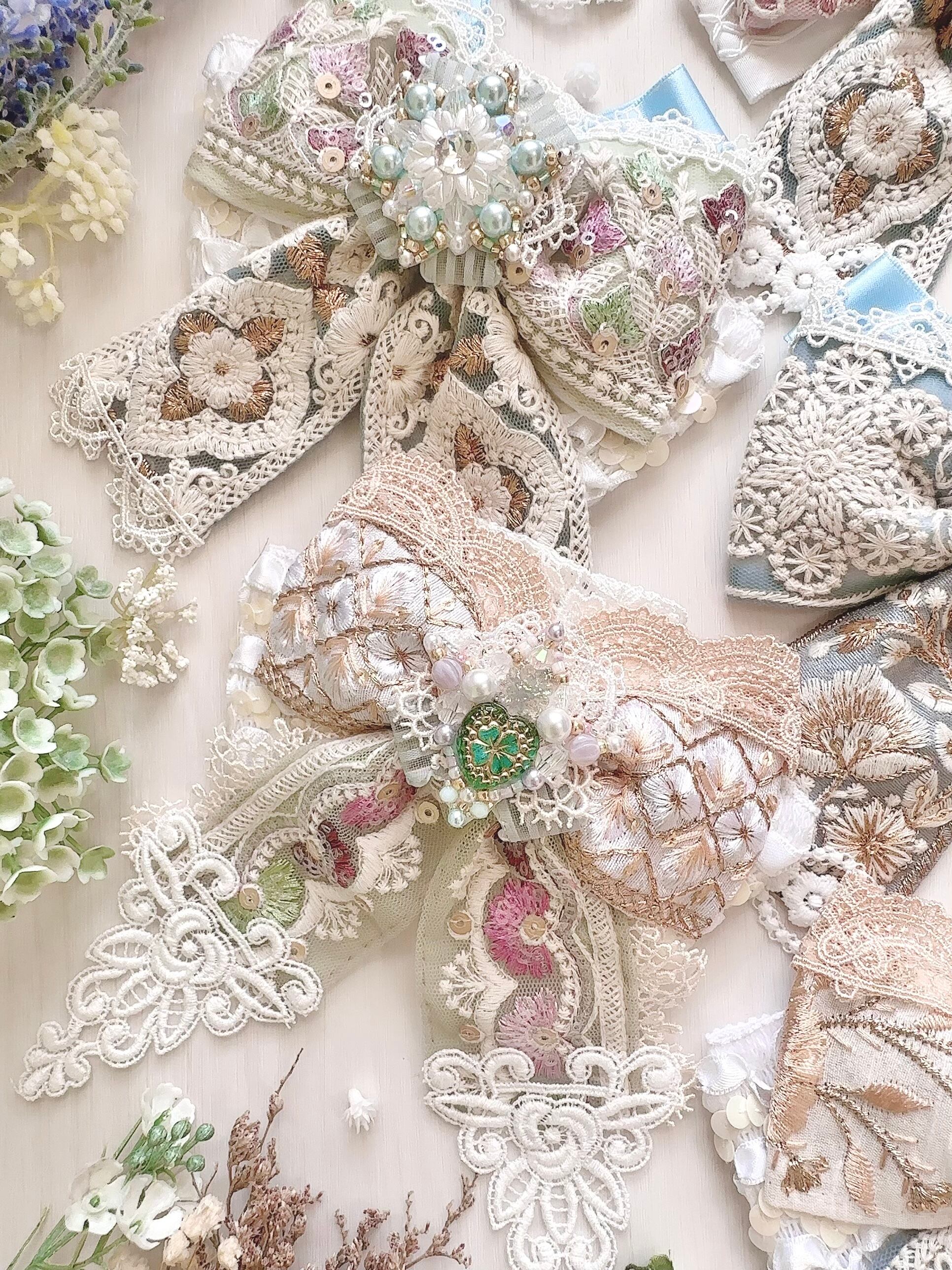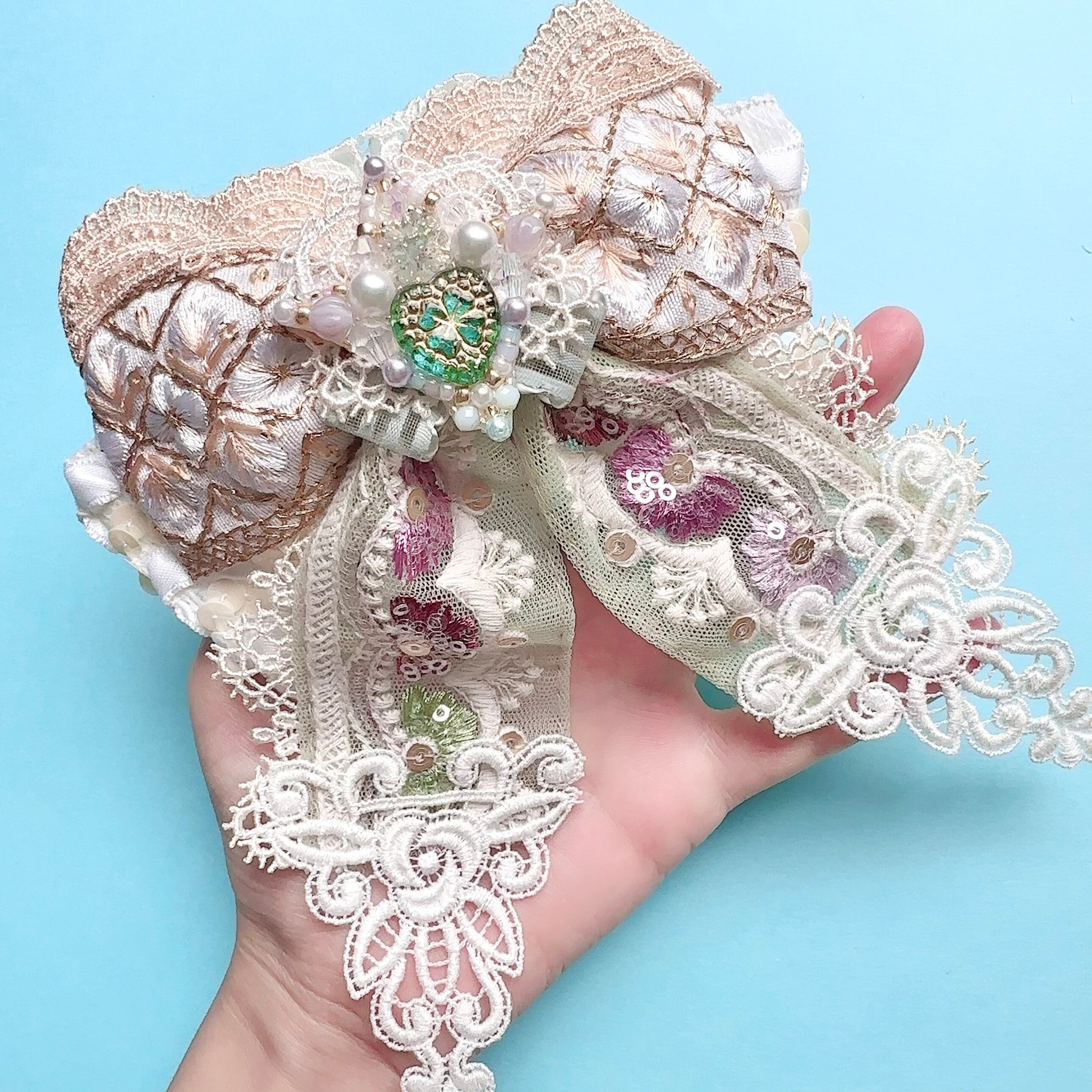 ※バレッタの金具が見えてしまわないように、正面から見て大幅に影響がないようにレースを使用する場合があります。