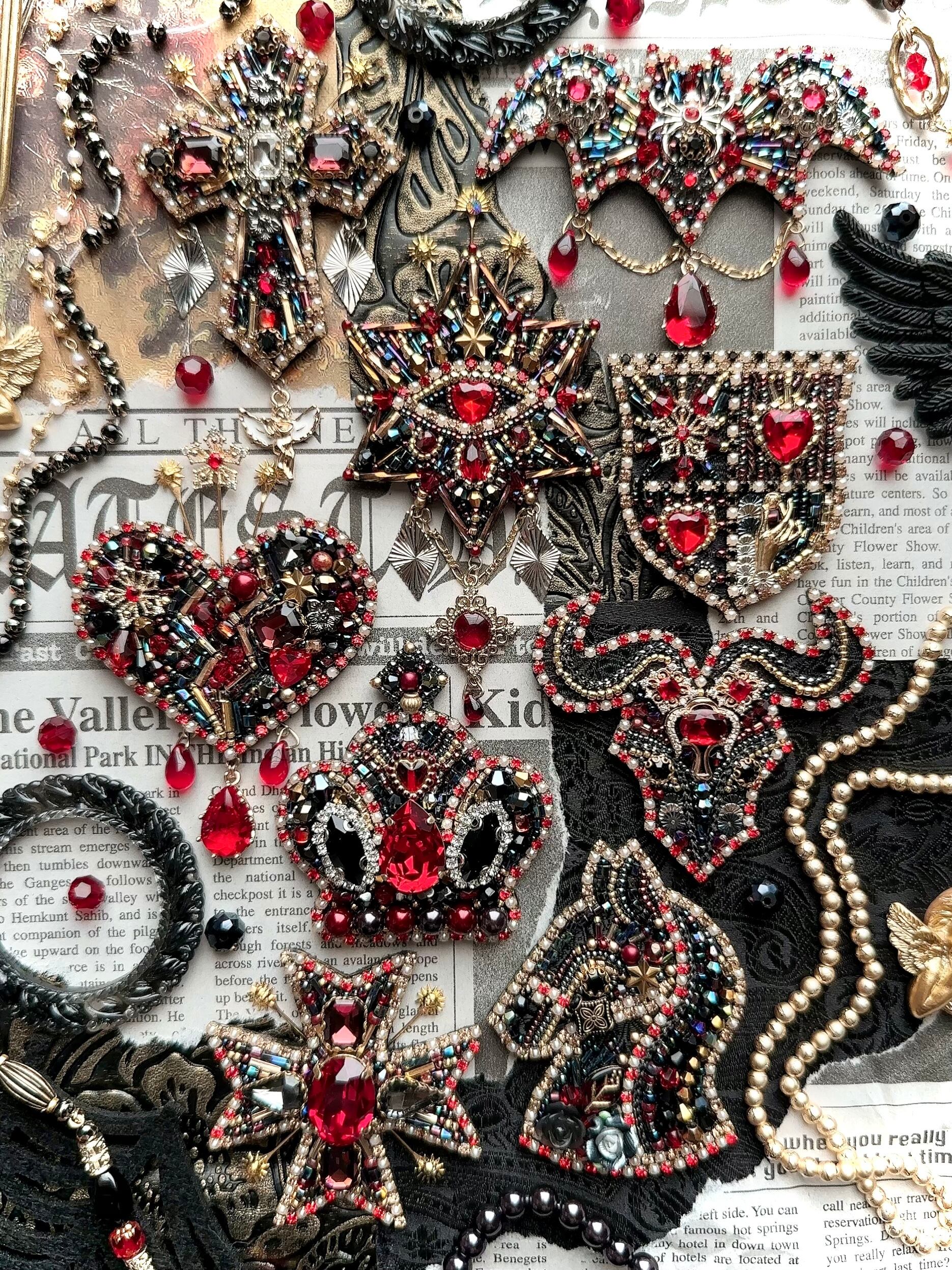 ビーズ刺繍のブローチ・ネックレス・バッグチャームの3wayです。