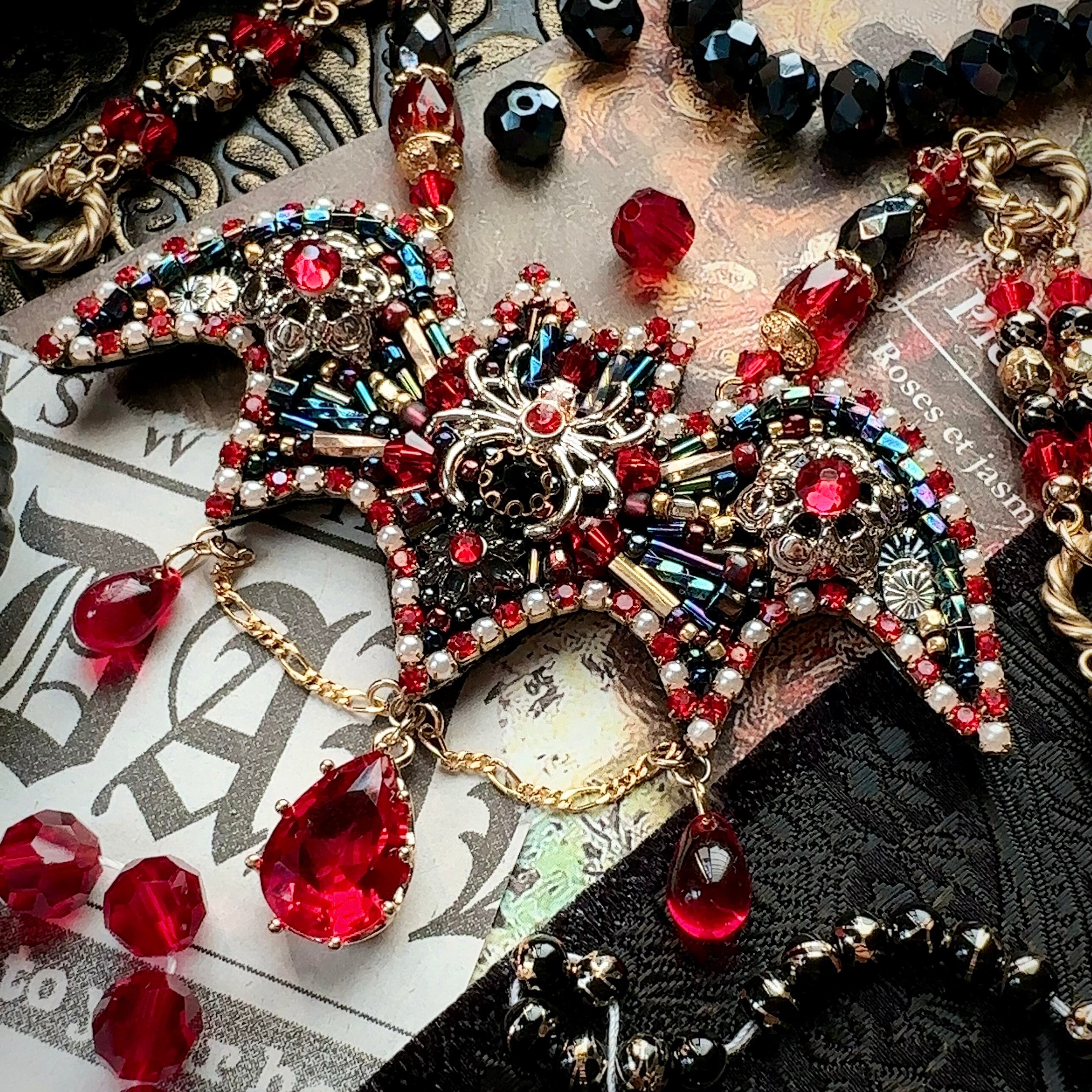ビーズ刺繍のブローチ・ネックレス・バッグチャームの3wayです。
