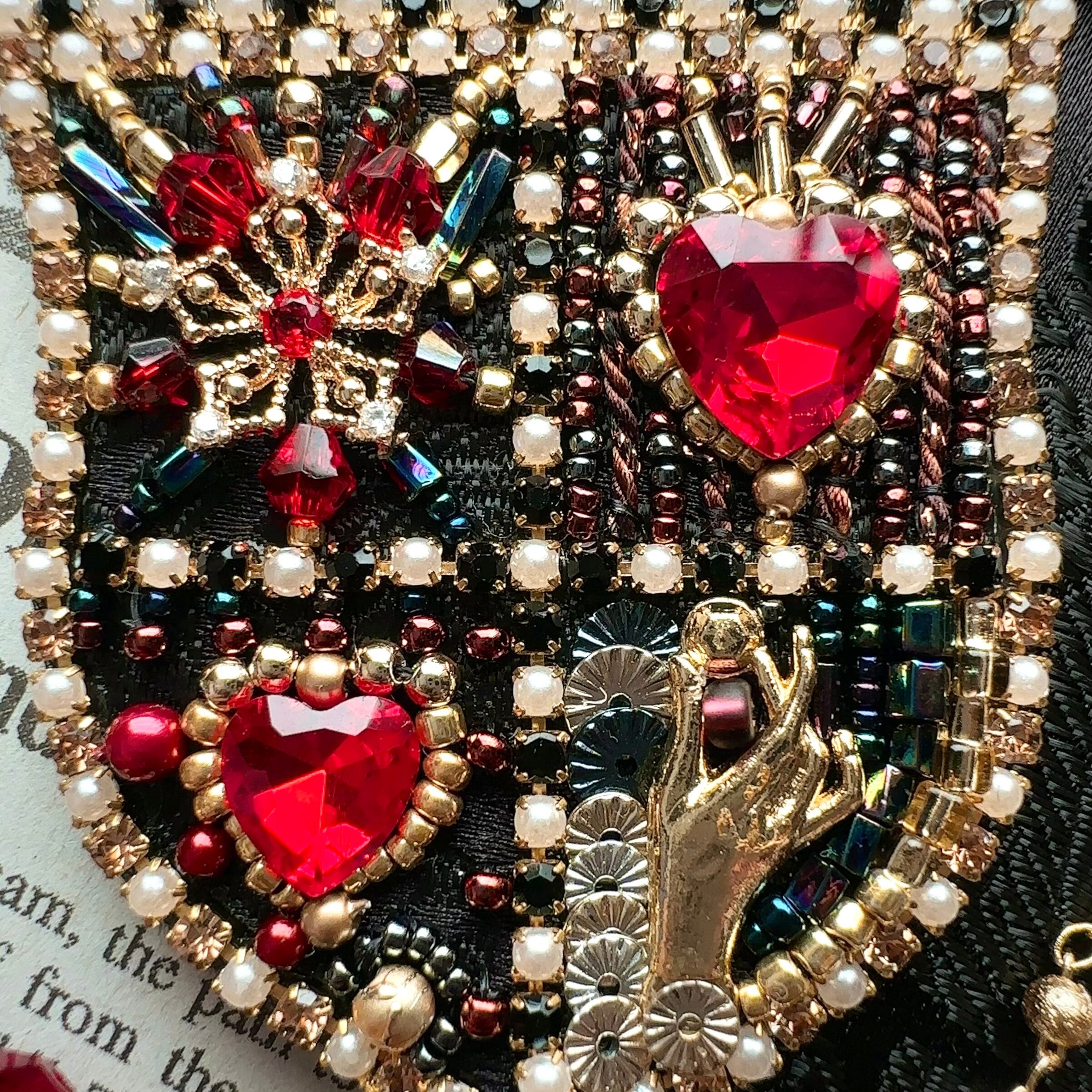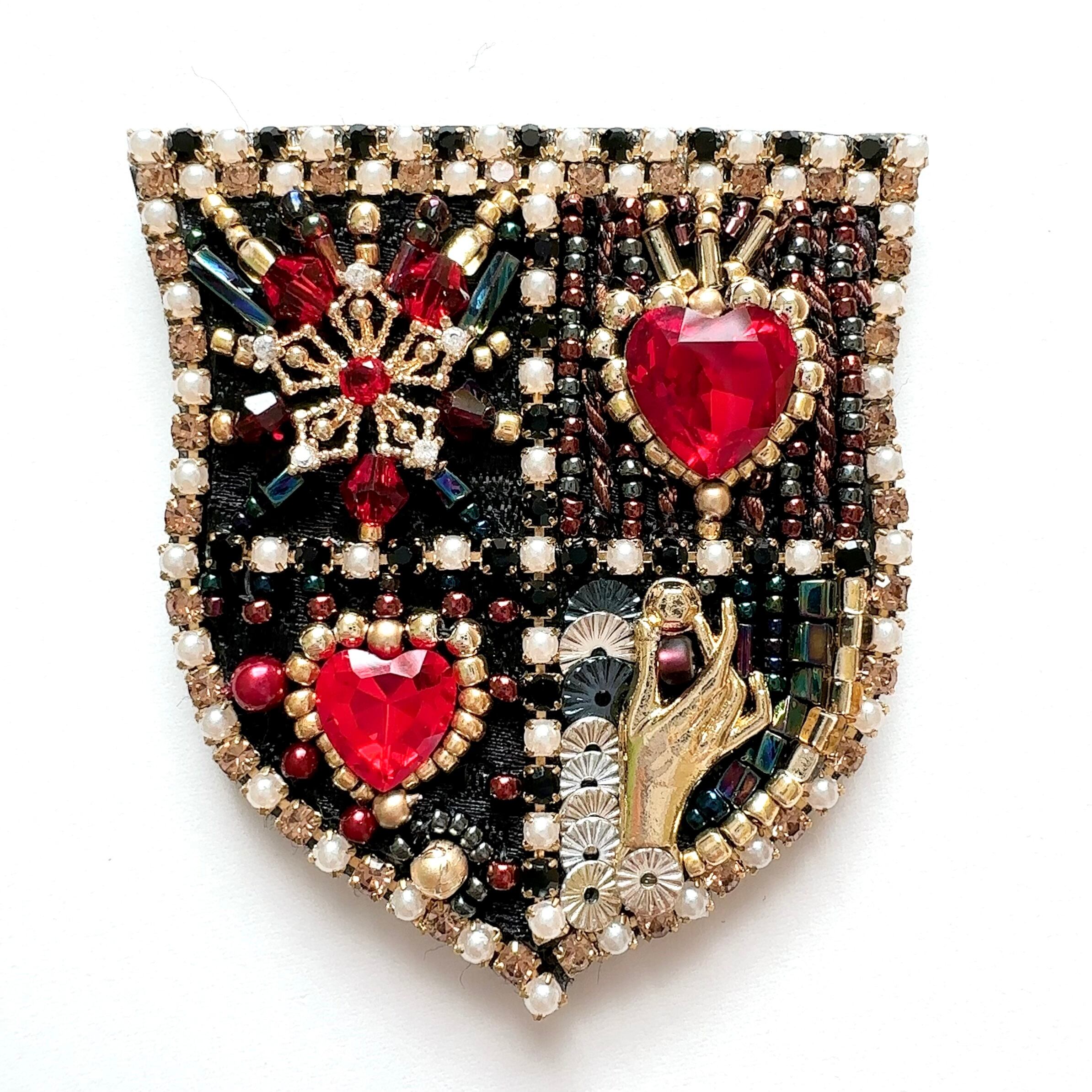 ビーズ刺繍のブローチ・ネックレス・バッグチャームの3wayです。