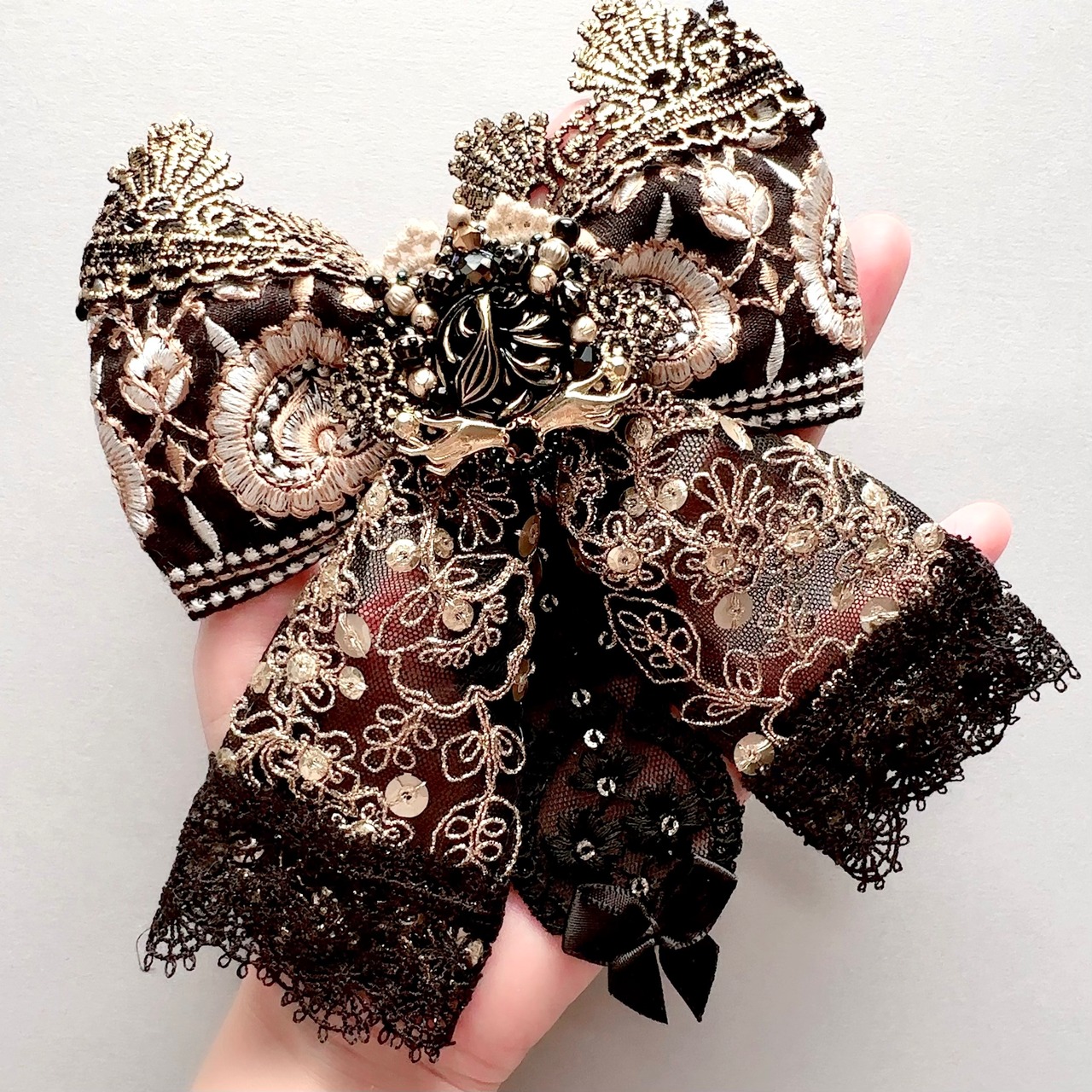 ※バレッタの金具が見えてしまわないように、正面から見て大幅に影響がないようにレースを使用する場合があります。