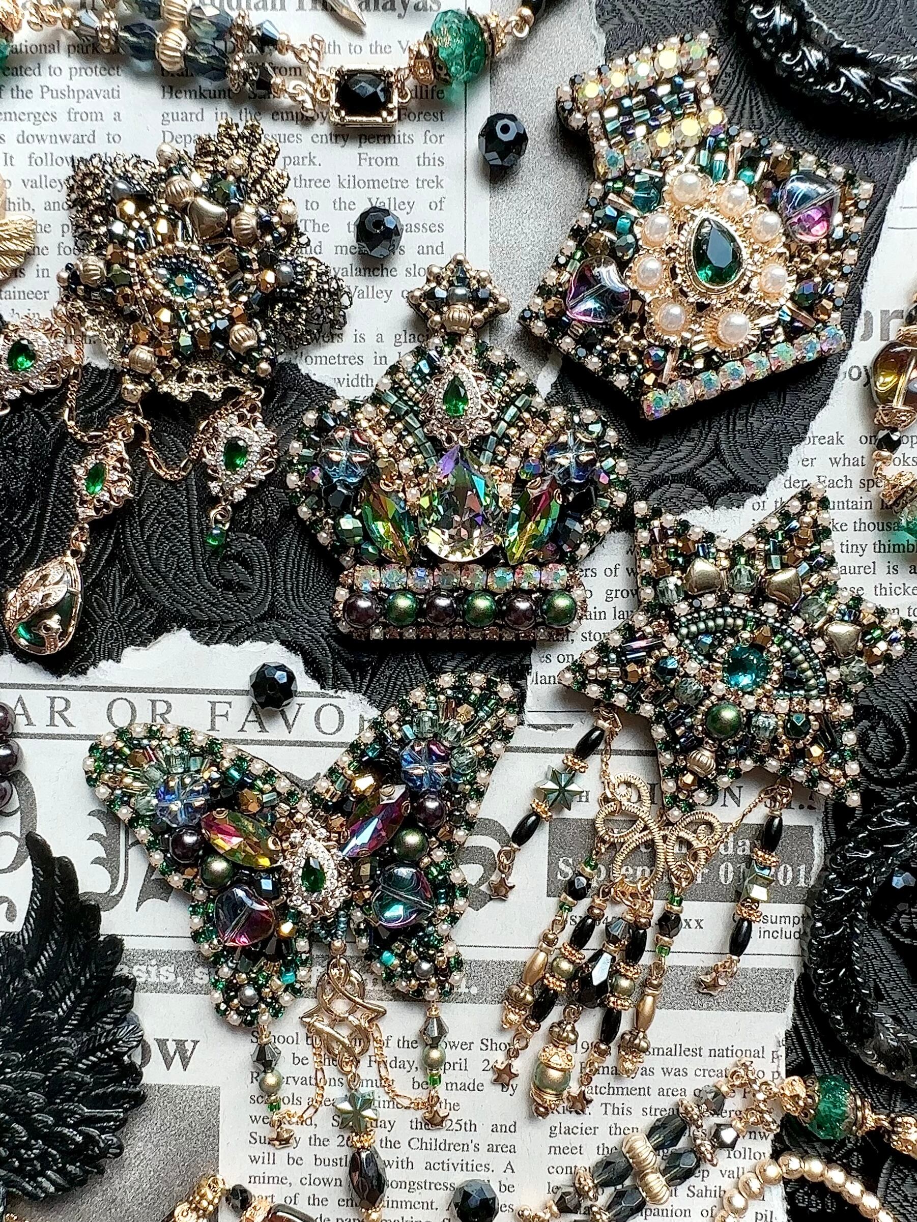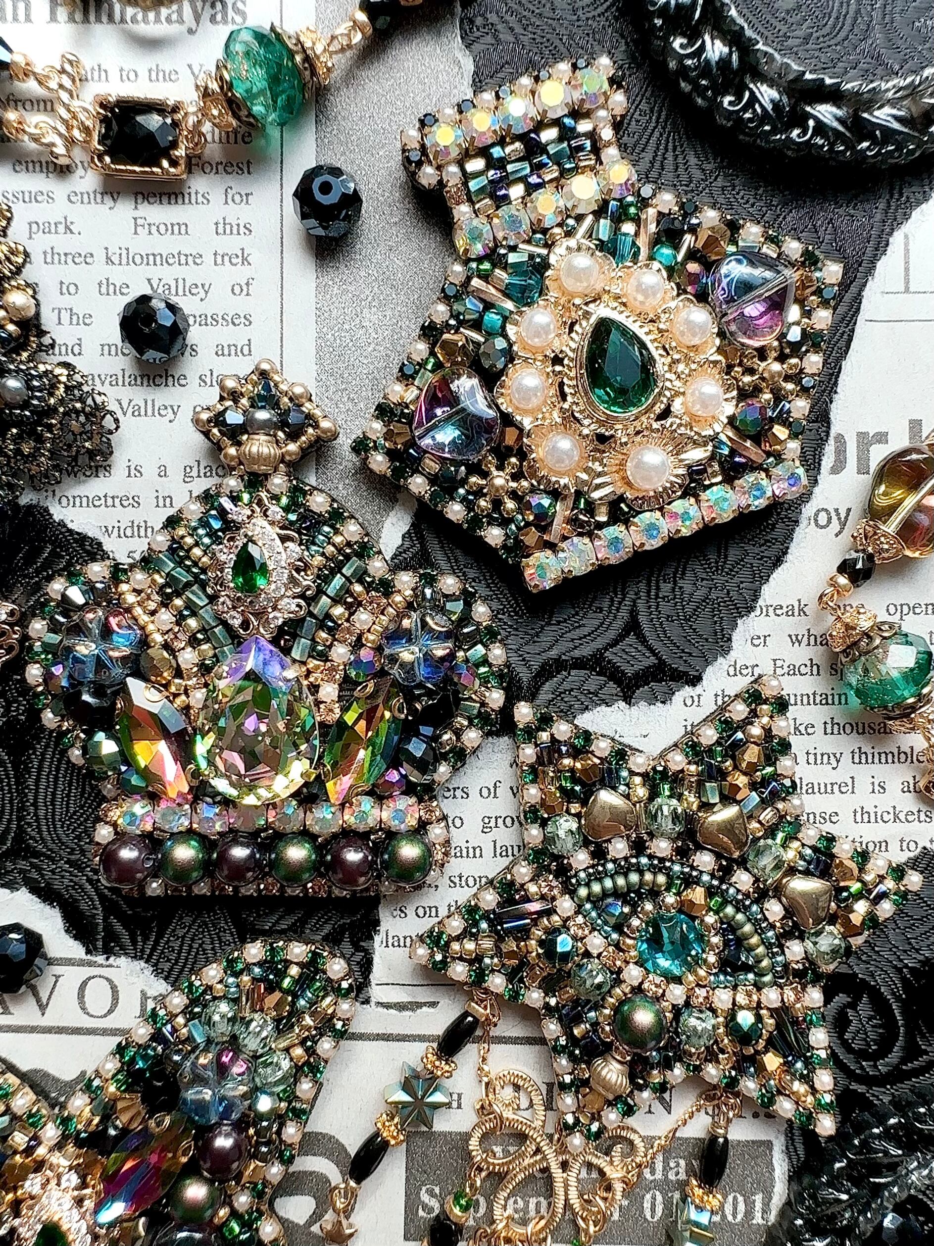 ビーズ刺繍のブローチ・ネックレス・バッグチャームの3wayです。