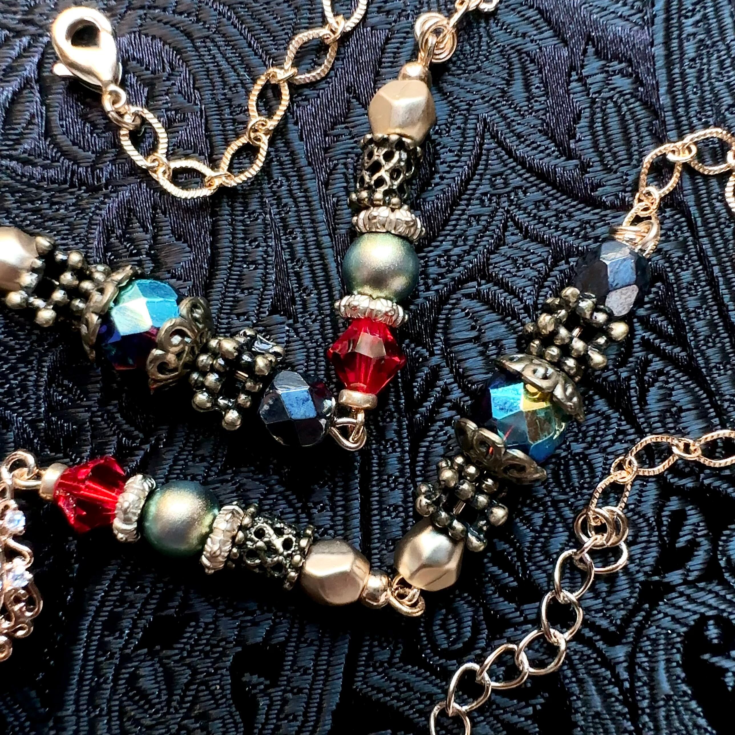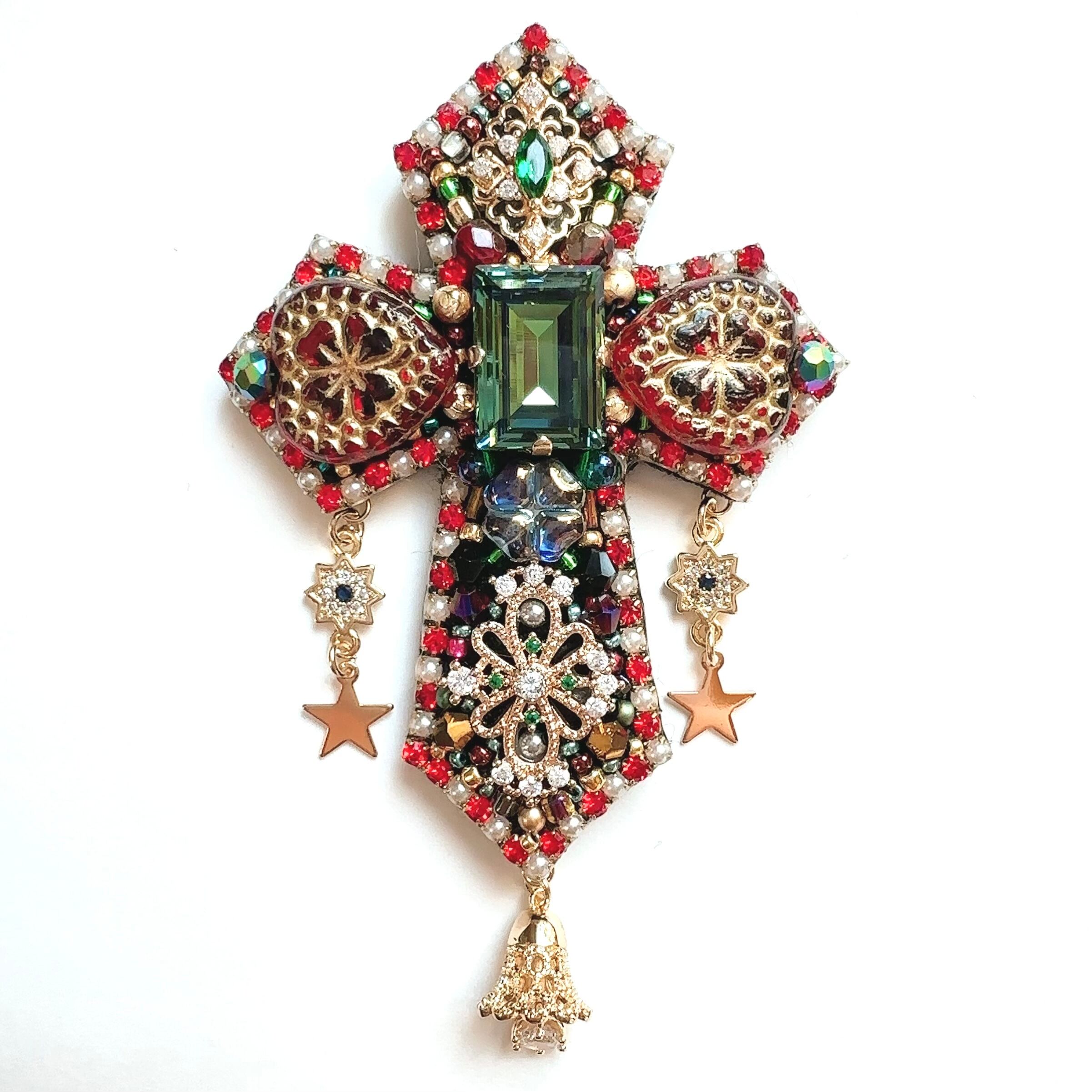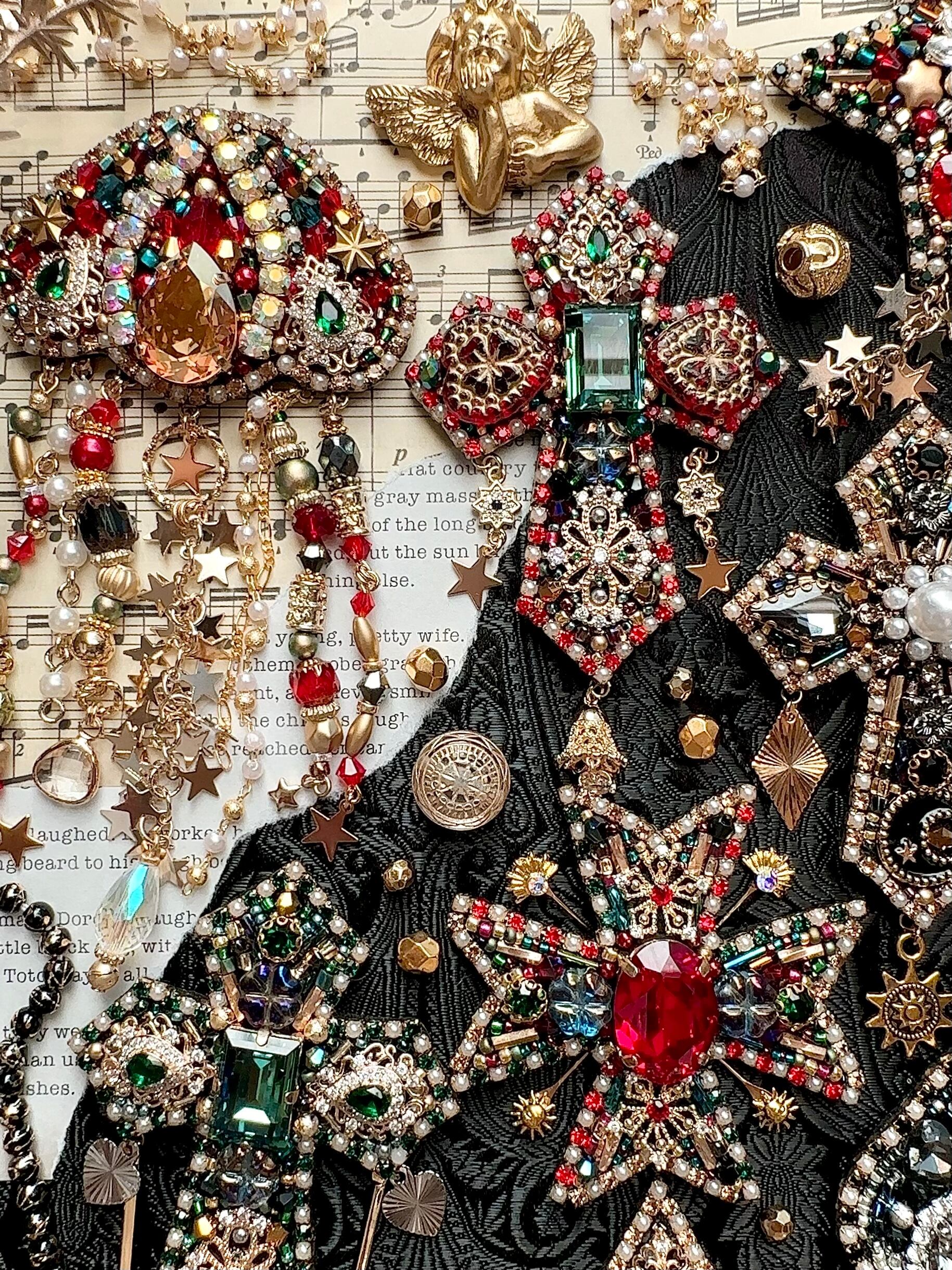 ビーズ刺繍のブローチ・ネックレス・バッグチャームの3wayです。