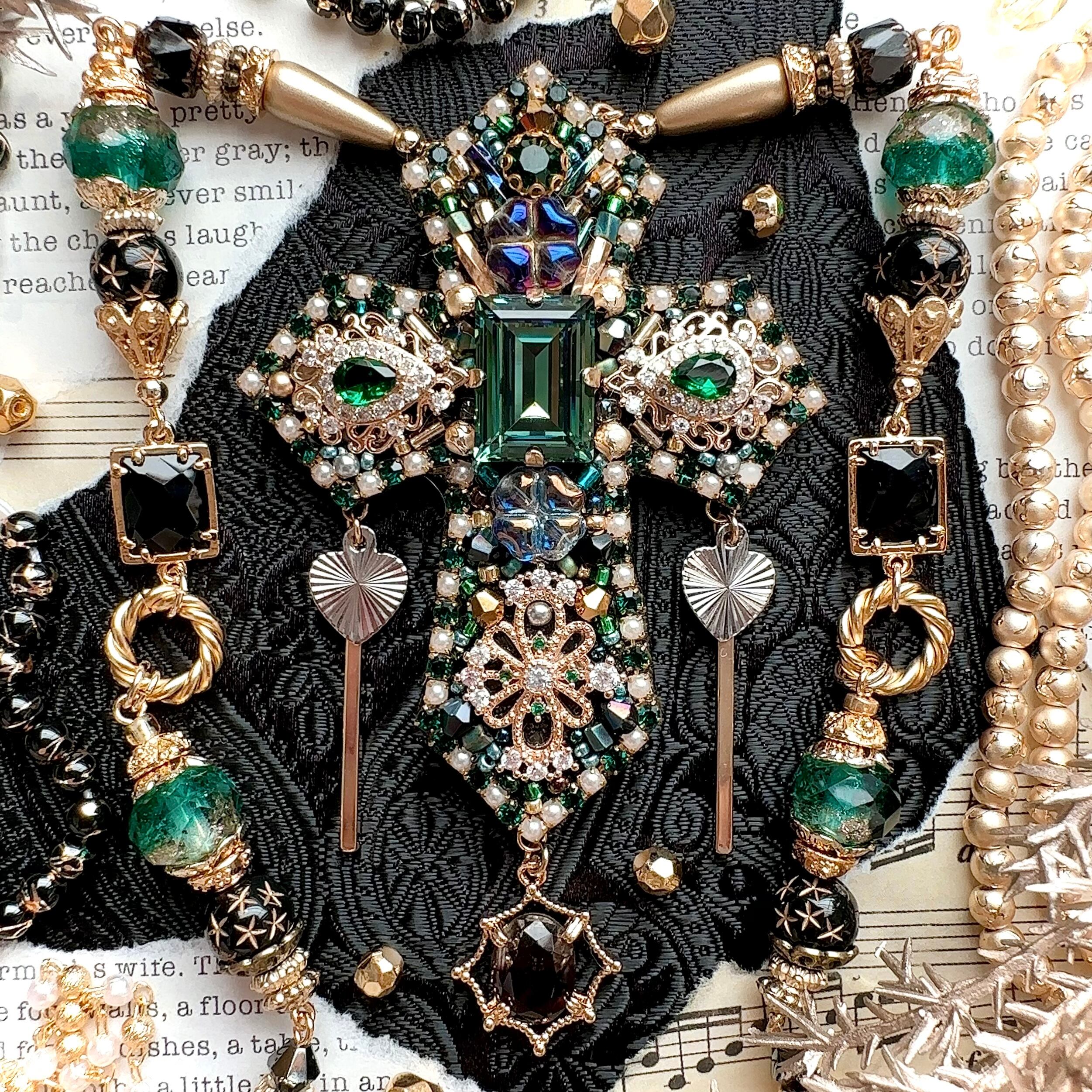 ビーズ刺繍のブローチ・ネックレス・バッグチャームの3wayです。