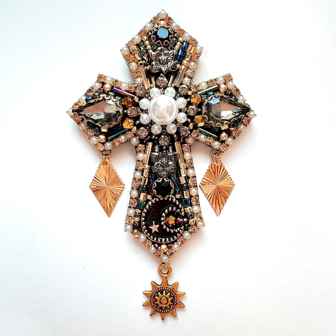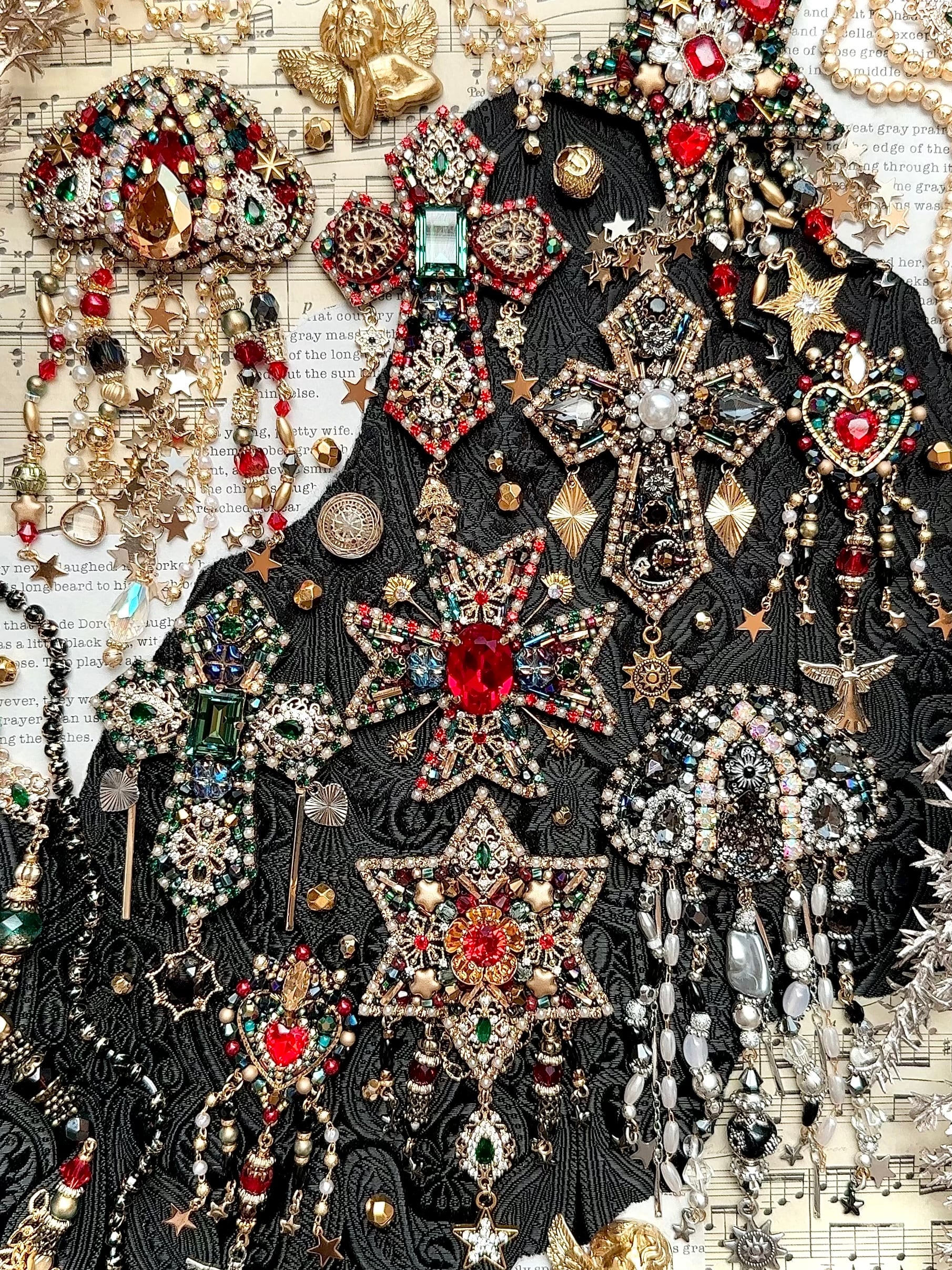 ビーズ刺繍のブローチ・ネックレス・バッグチャームの3wayです。