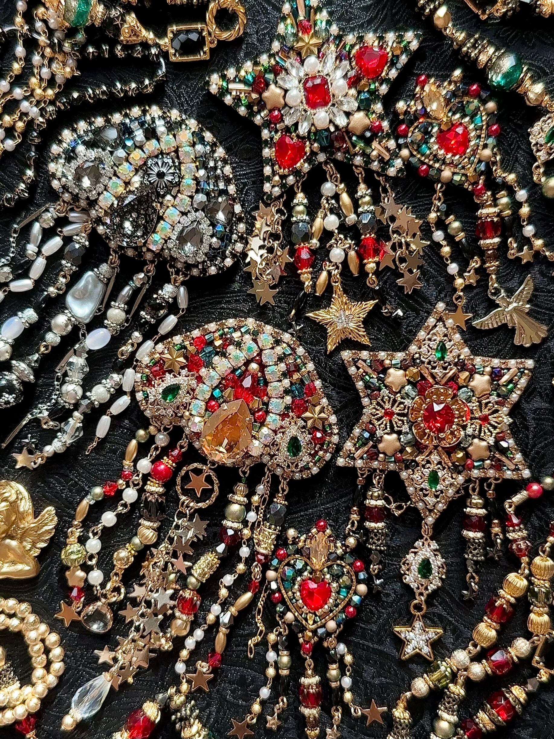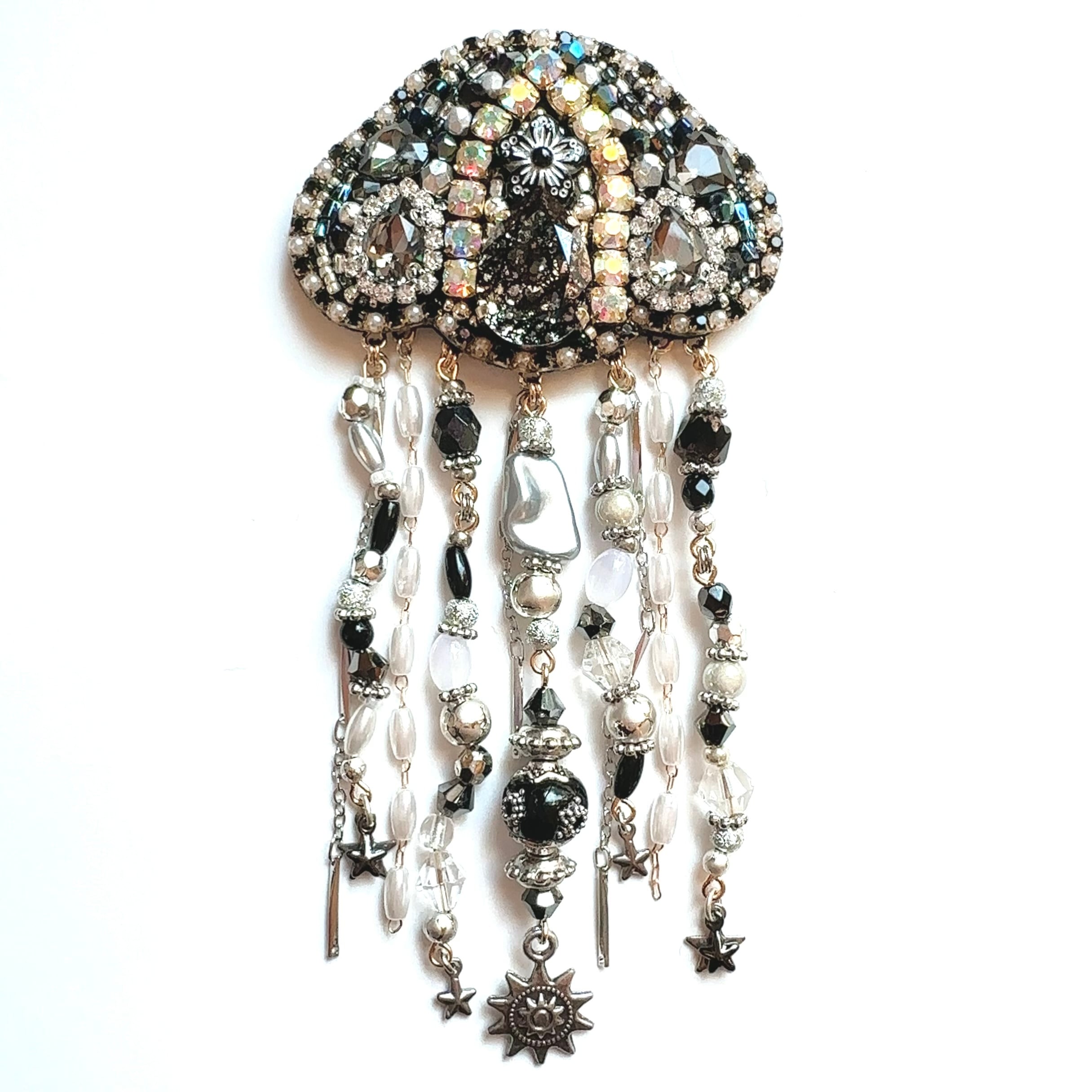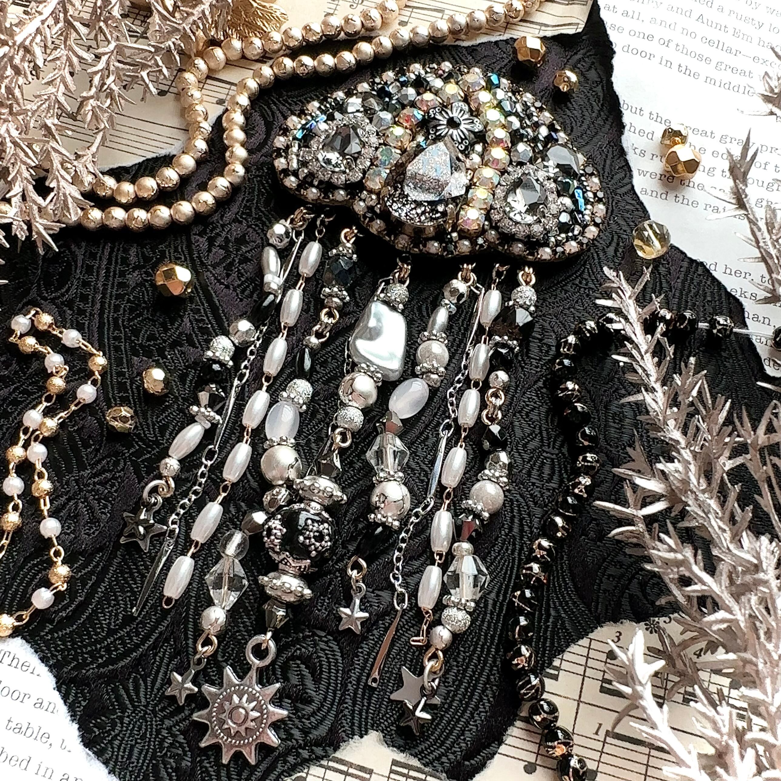 ビーズ刺繍のブローチ・ネックレス・バッグチャームの3wayです。