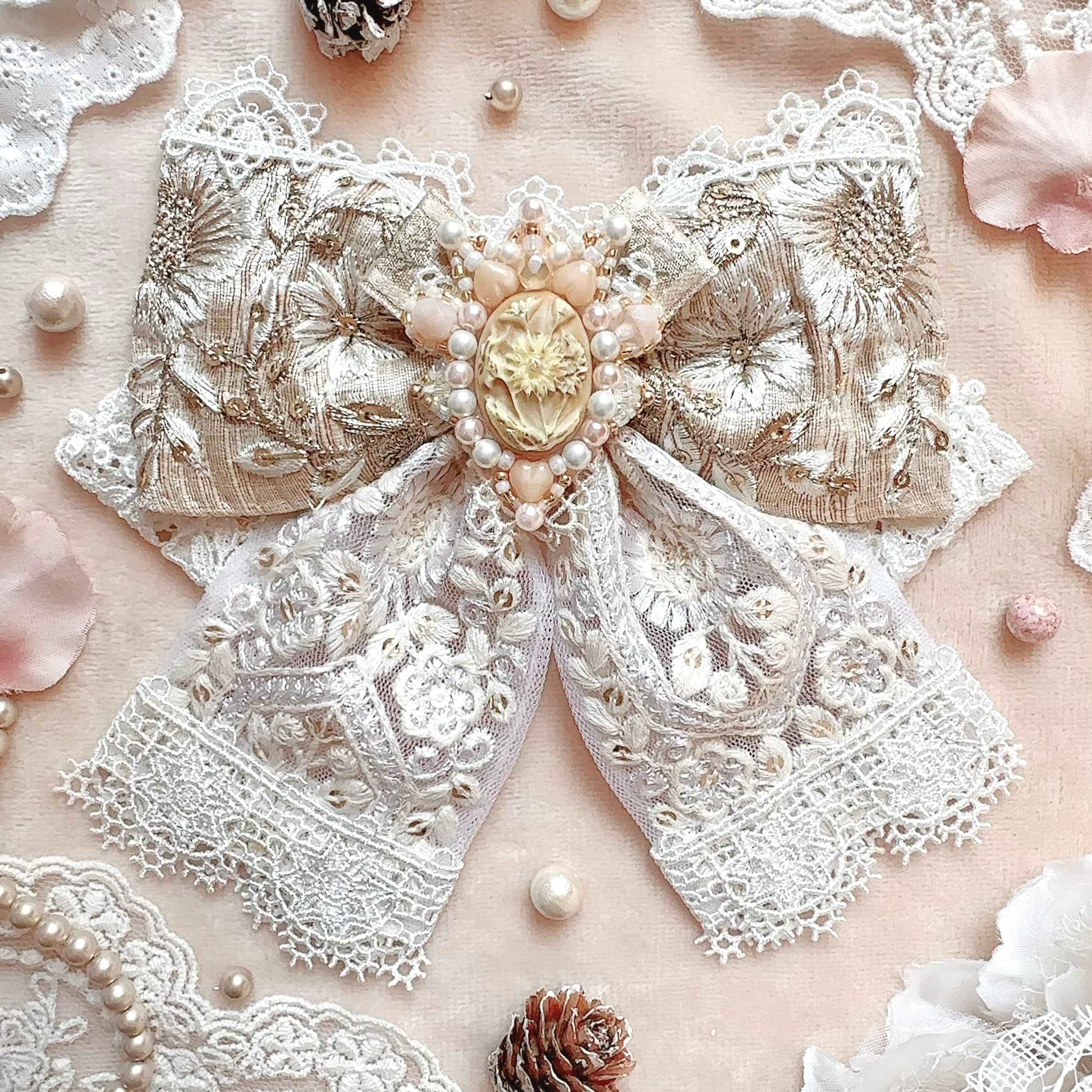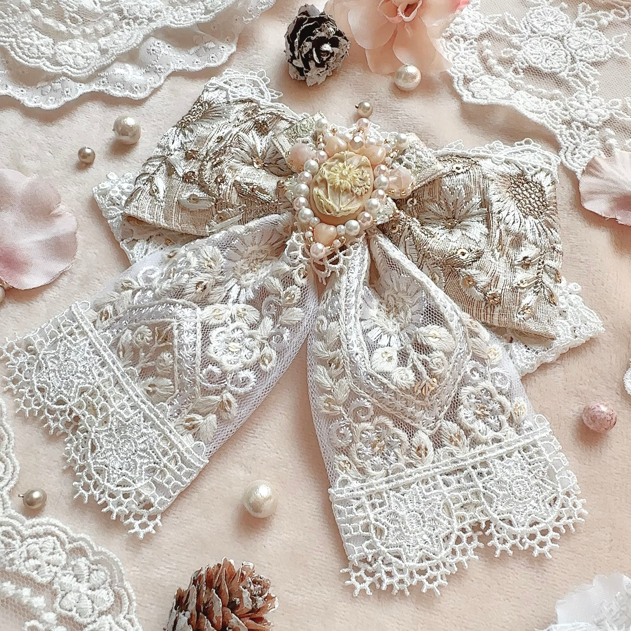 ※バレッタの金具が見えてしまわないように、正面から見て大幅にデザインの影響がないよう致しますが一部レースを使用する場合があります。