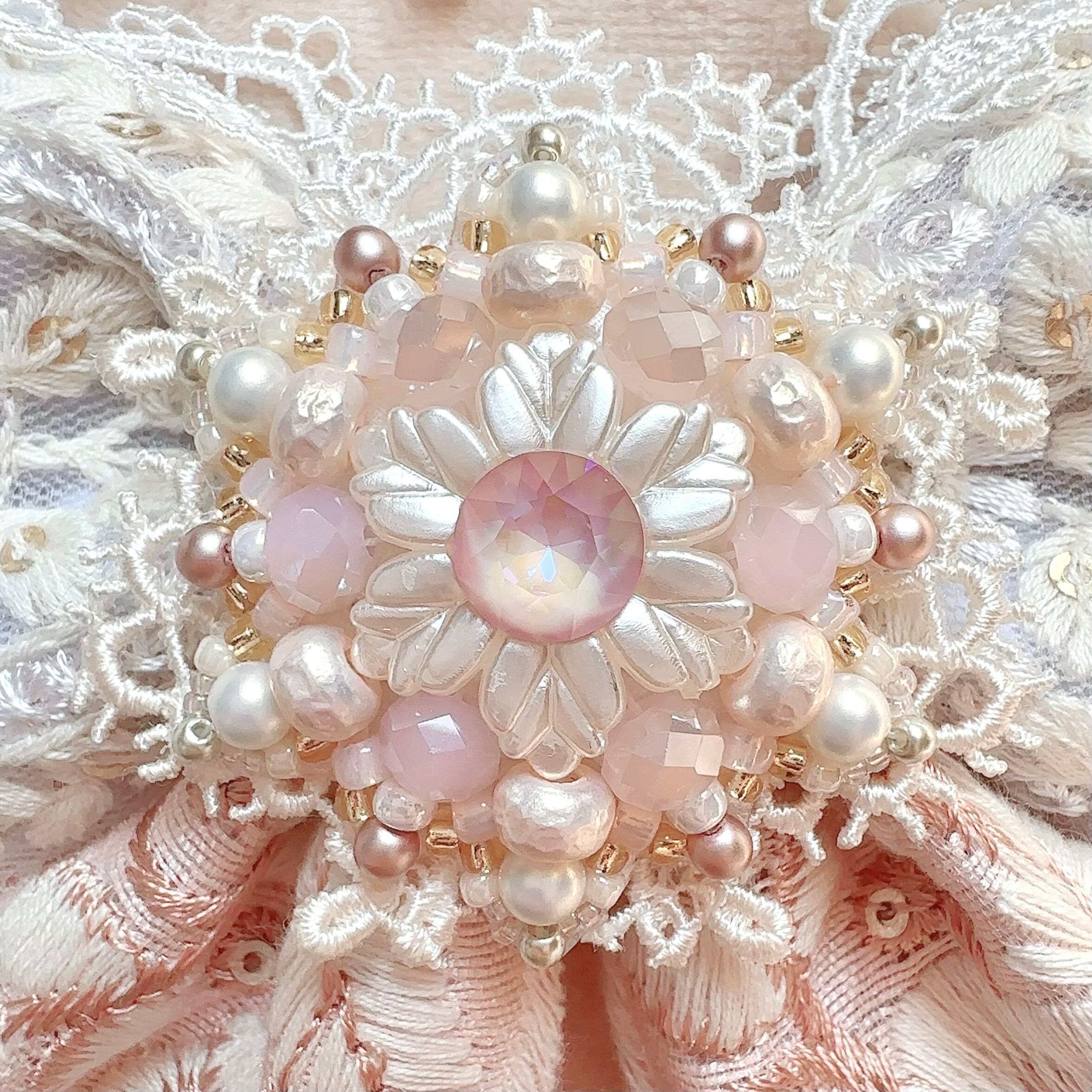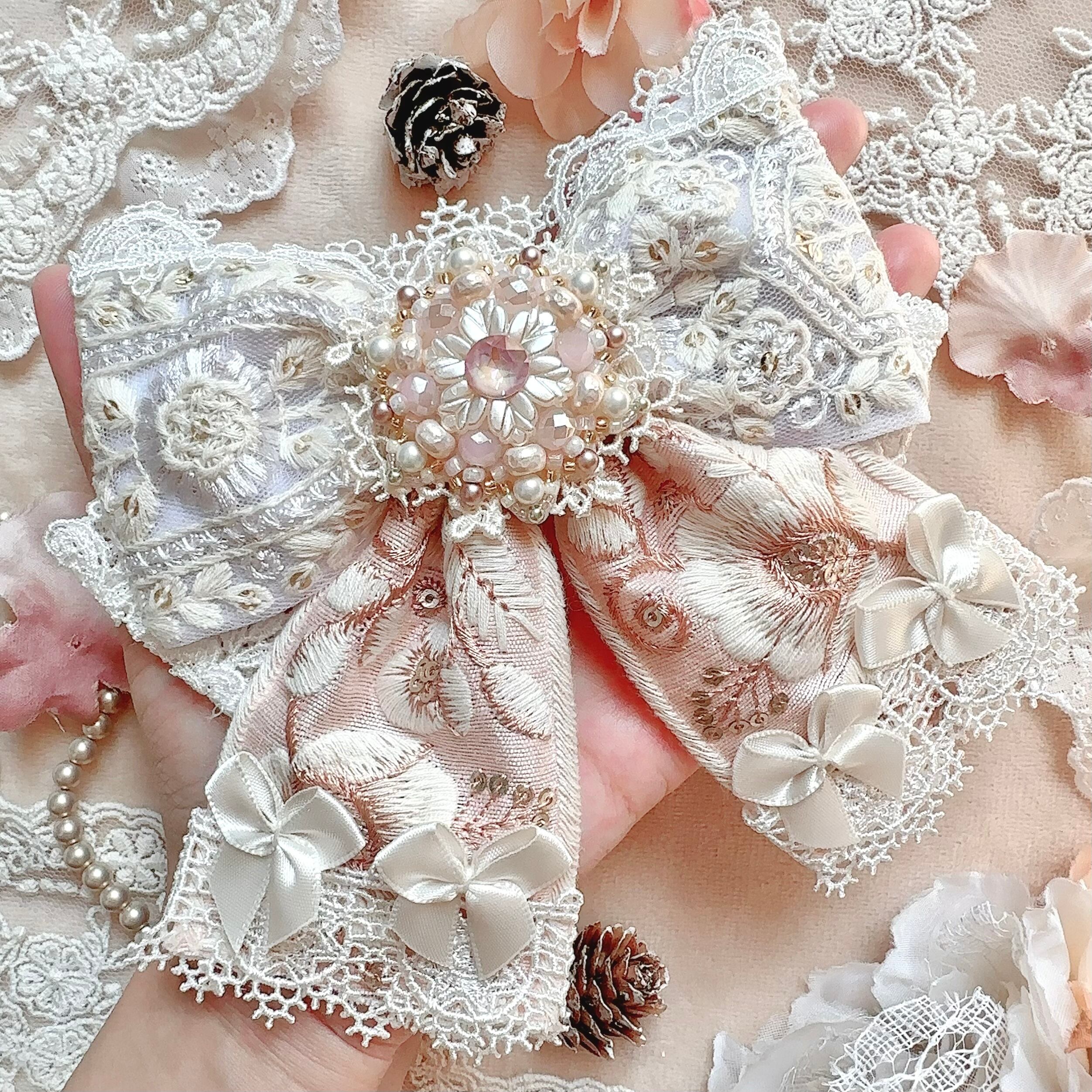 ※バレッタの金具が見えてしまわないように、正面から見て大幅にデザインの影響がないよう致しますが一部レースを使用する場合があります。