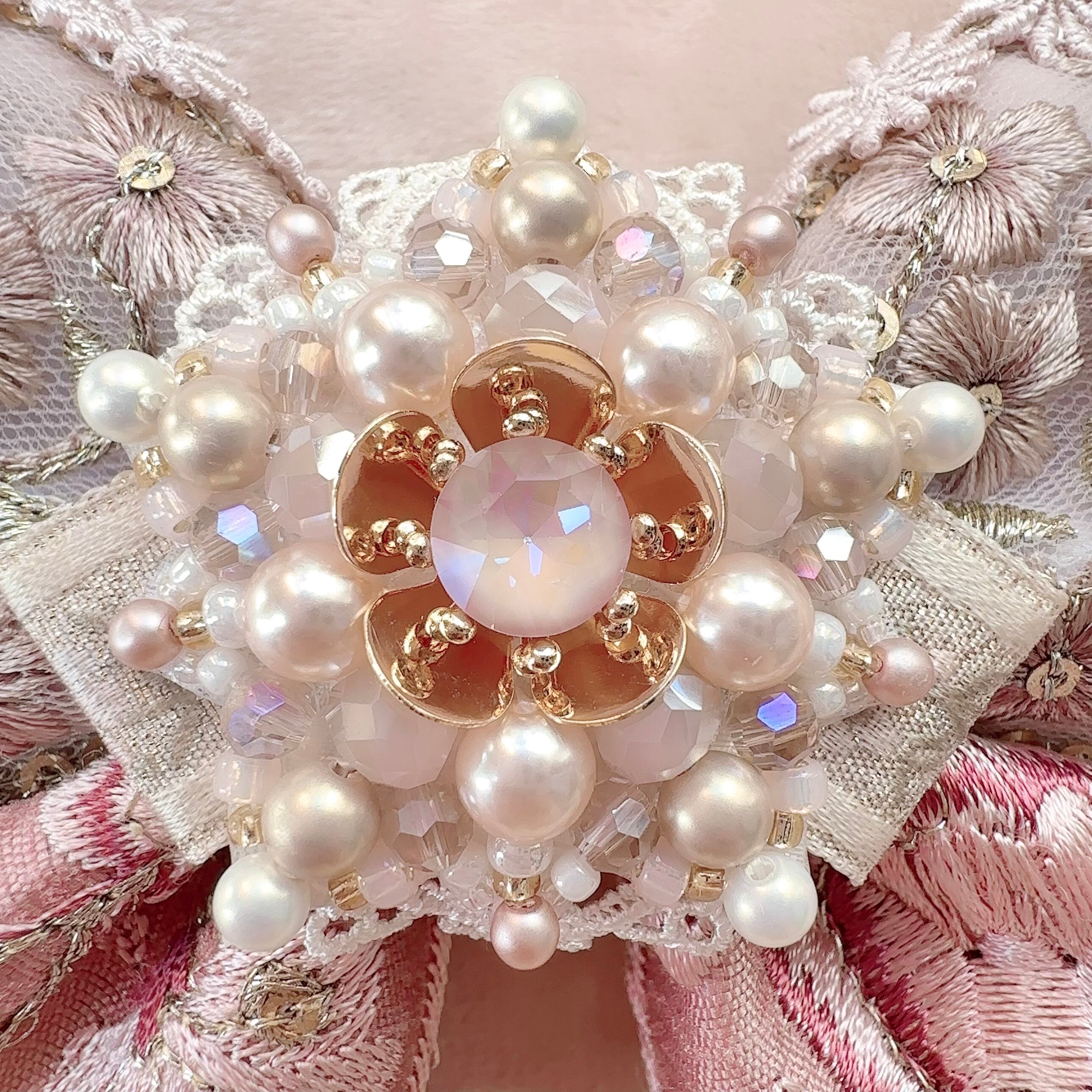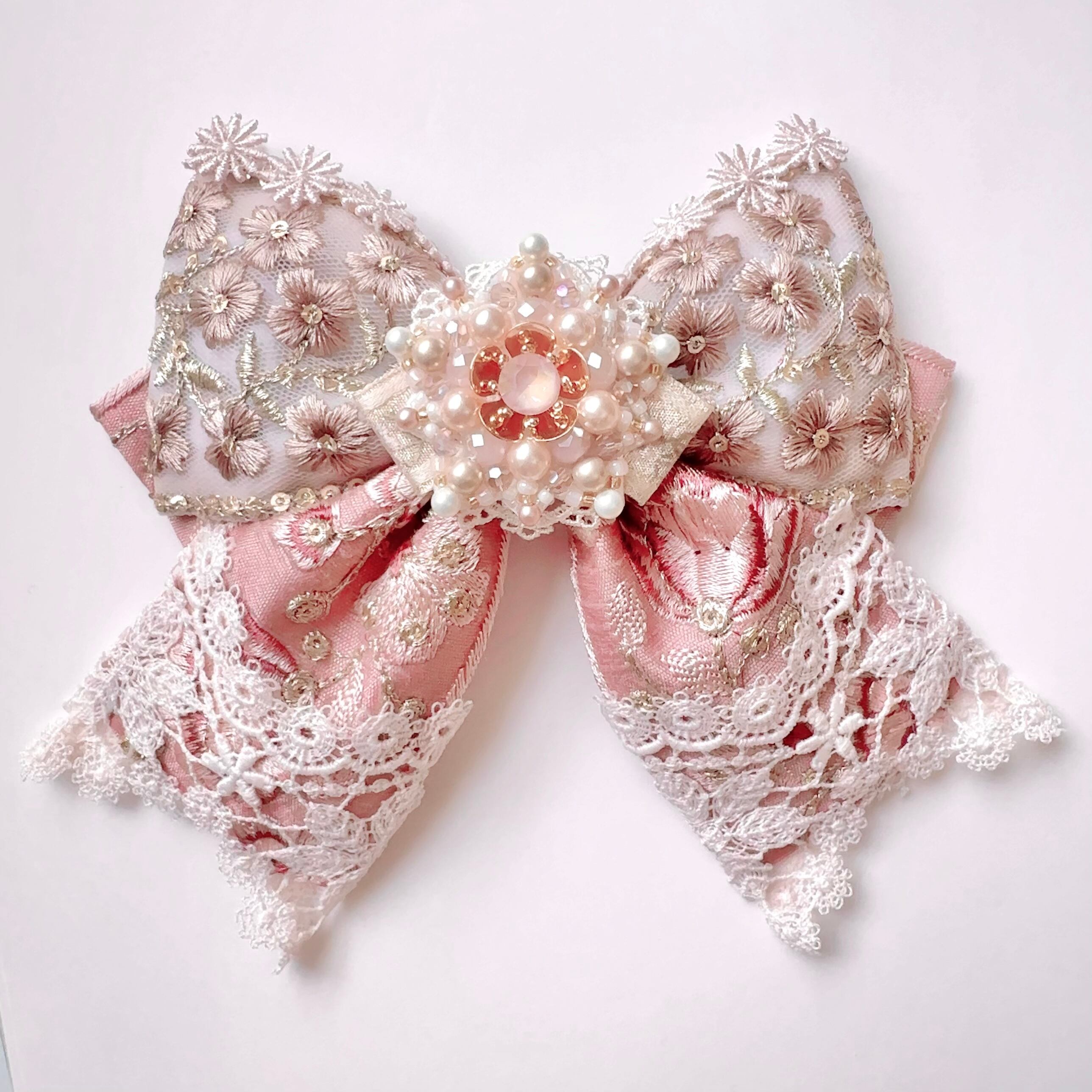 ※バレッタの金具が見えてしまわないように、正面から見て大幅にデザインの影響がないよう致しますが一部レースを使用する場合があります。