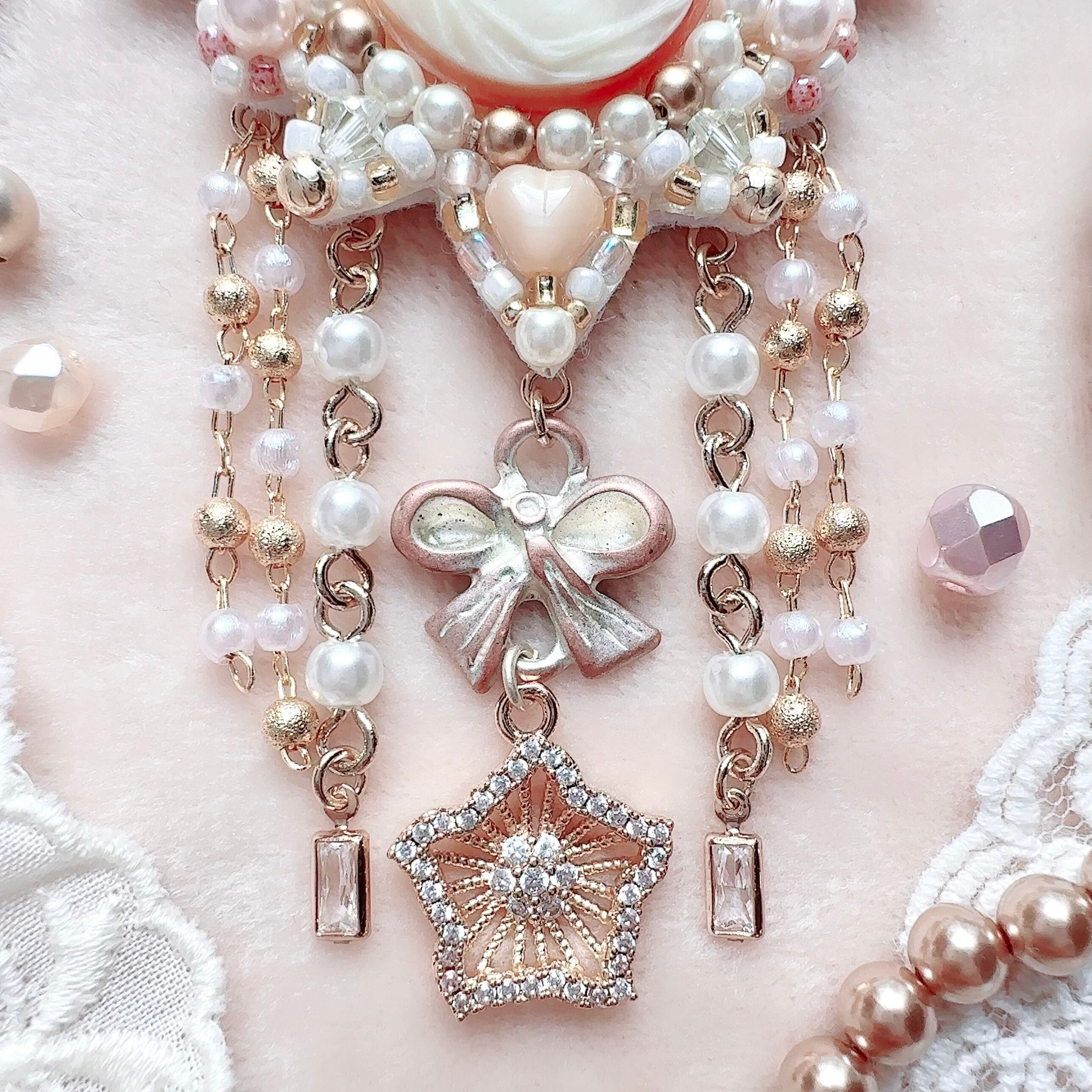 ビーズ刺繍のブローチ・ネックレス・バッグチャームの3wayです。