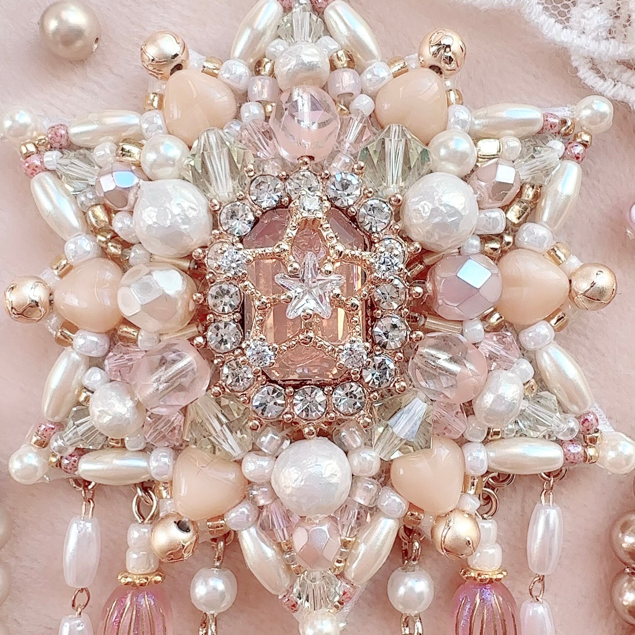 ビーズ刺繍のブローチ・ネックレス・バッグチャームの3wayです。