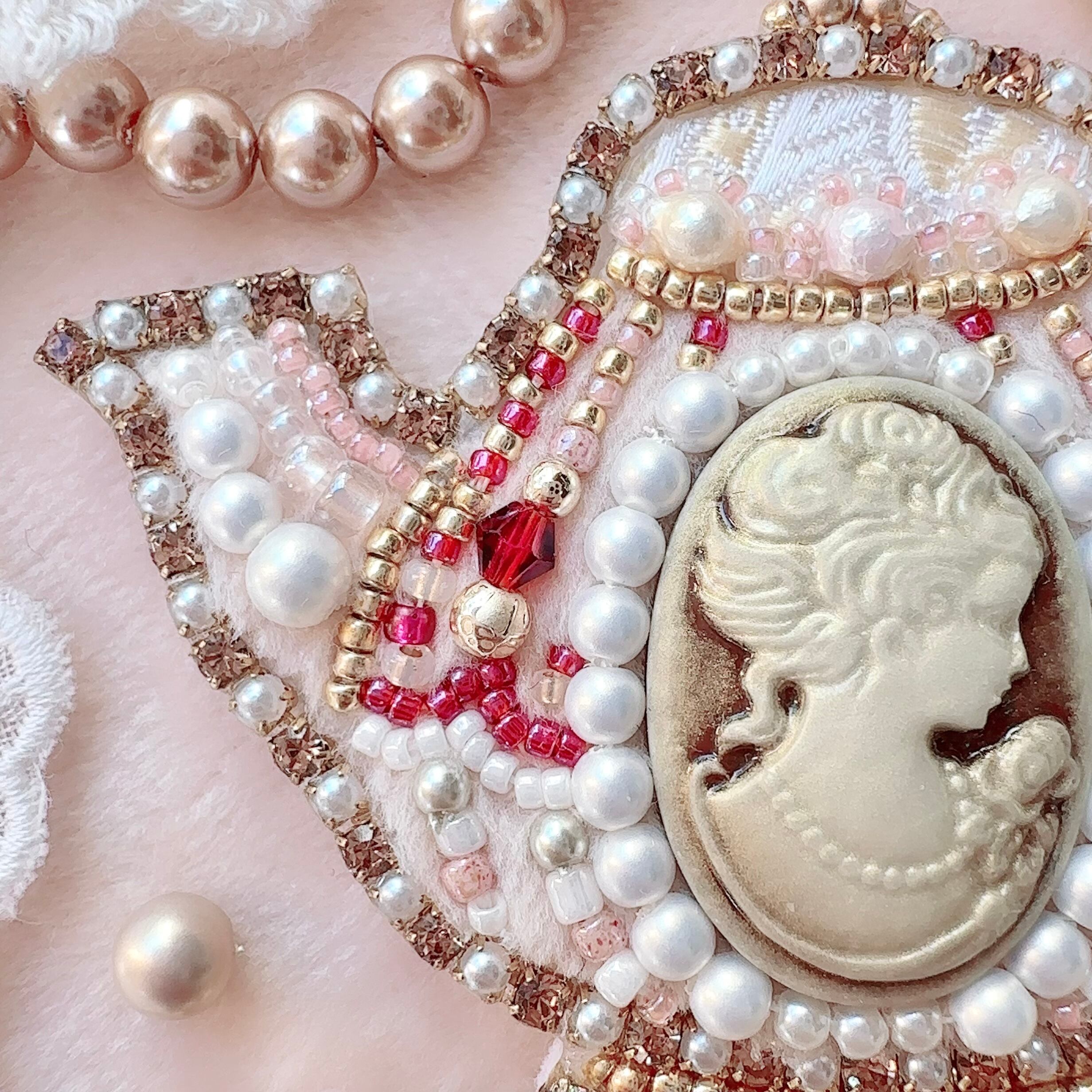 ビーズ刺繍のブローチ・ネックレス・バッグチャームの3wayです。