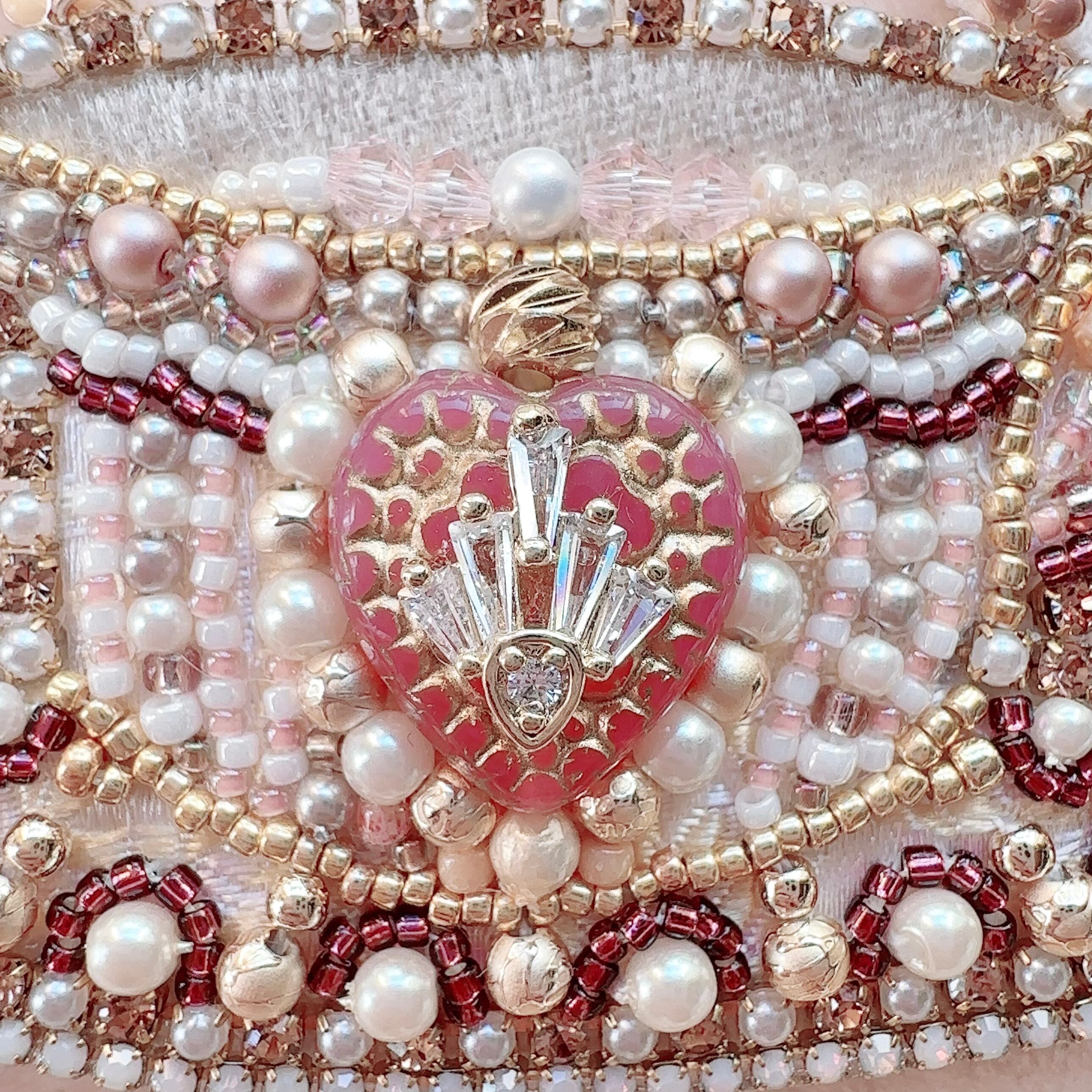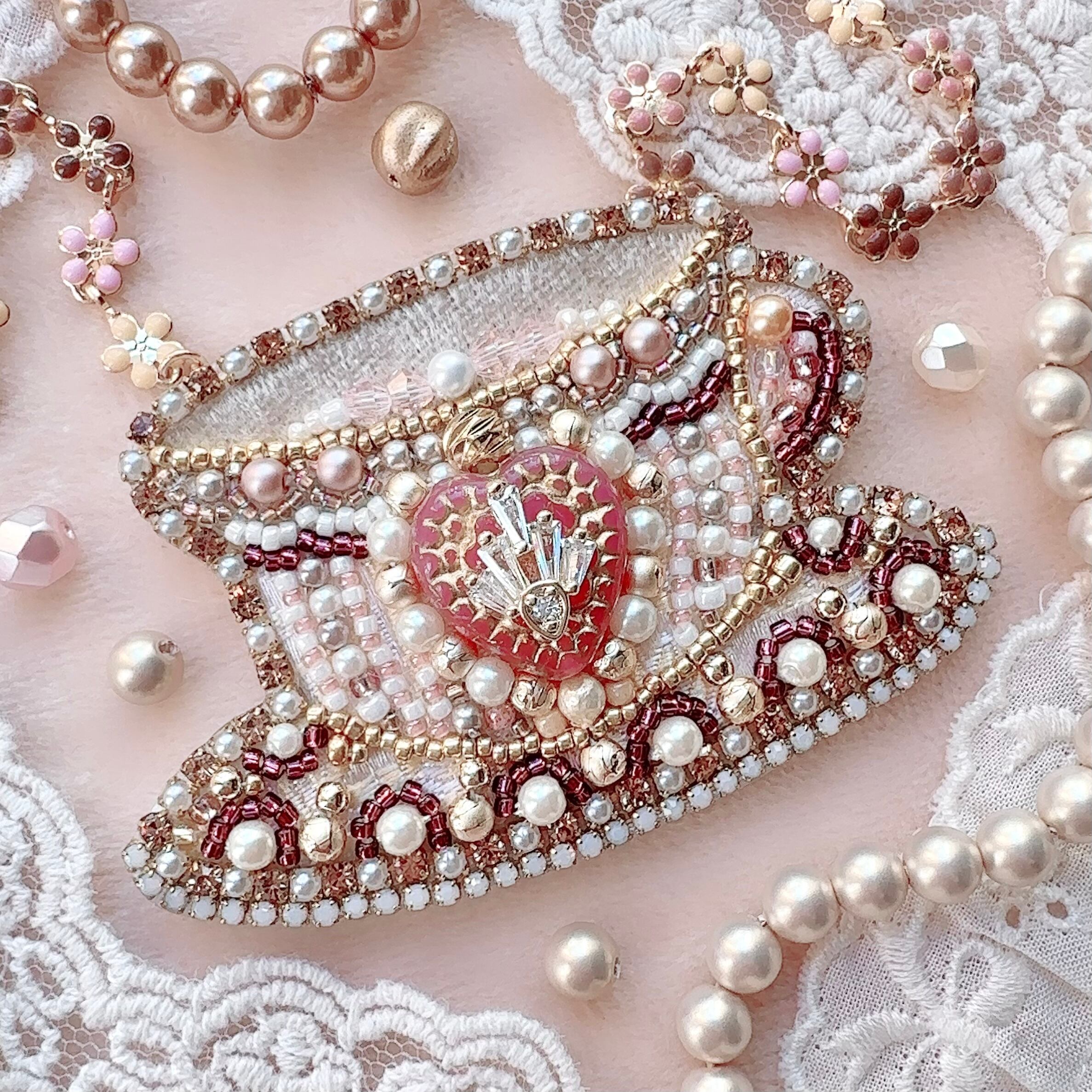 ビーズ刺繍のブローチ・ネックレス・バッグチャームの3wayです。
