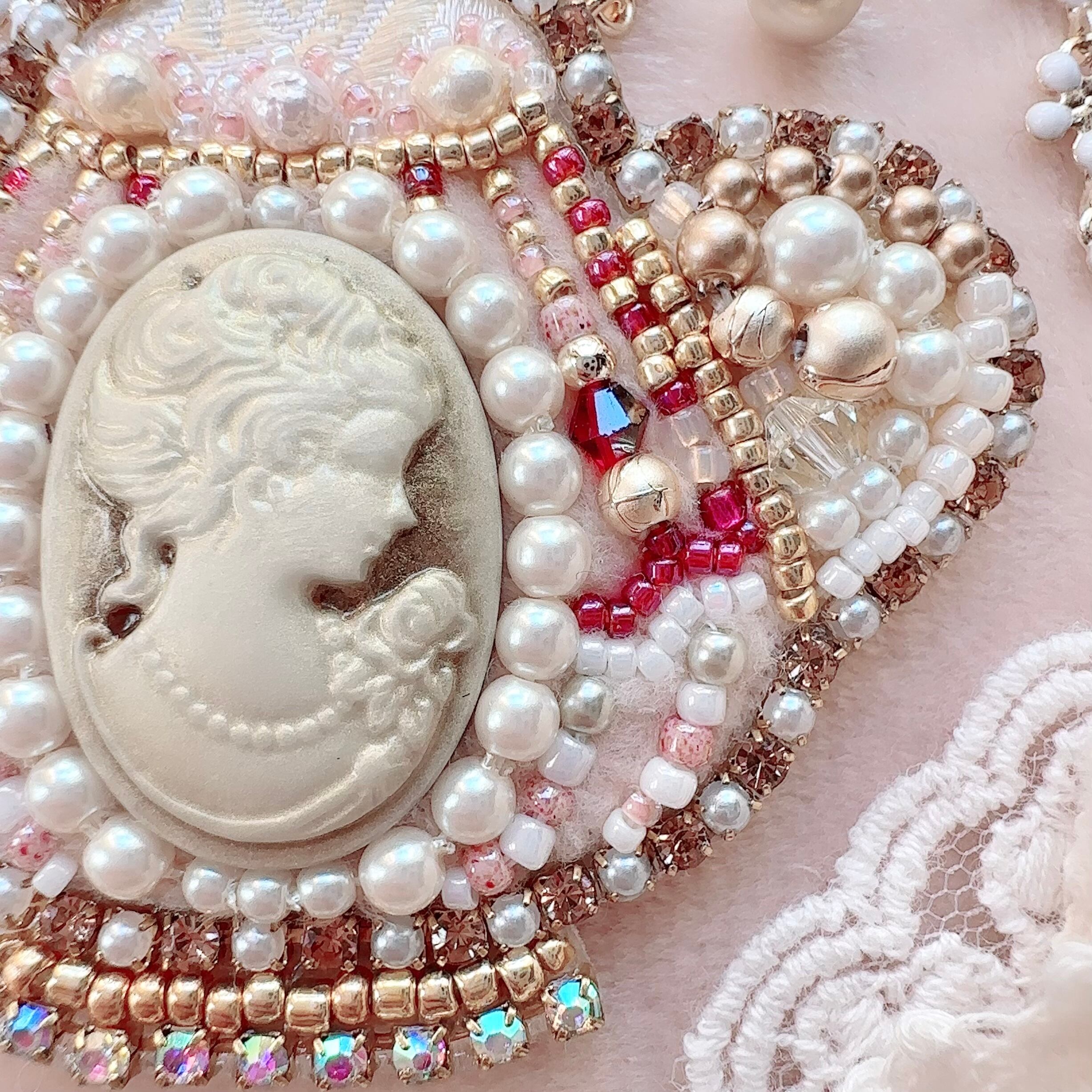 ビーズ刺繍のブローチ・ネックレス・バッグチャームの3wayです。