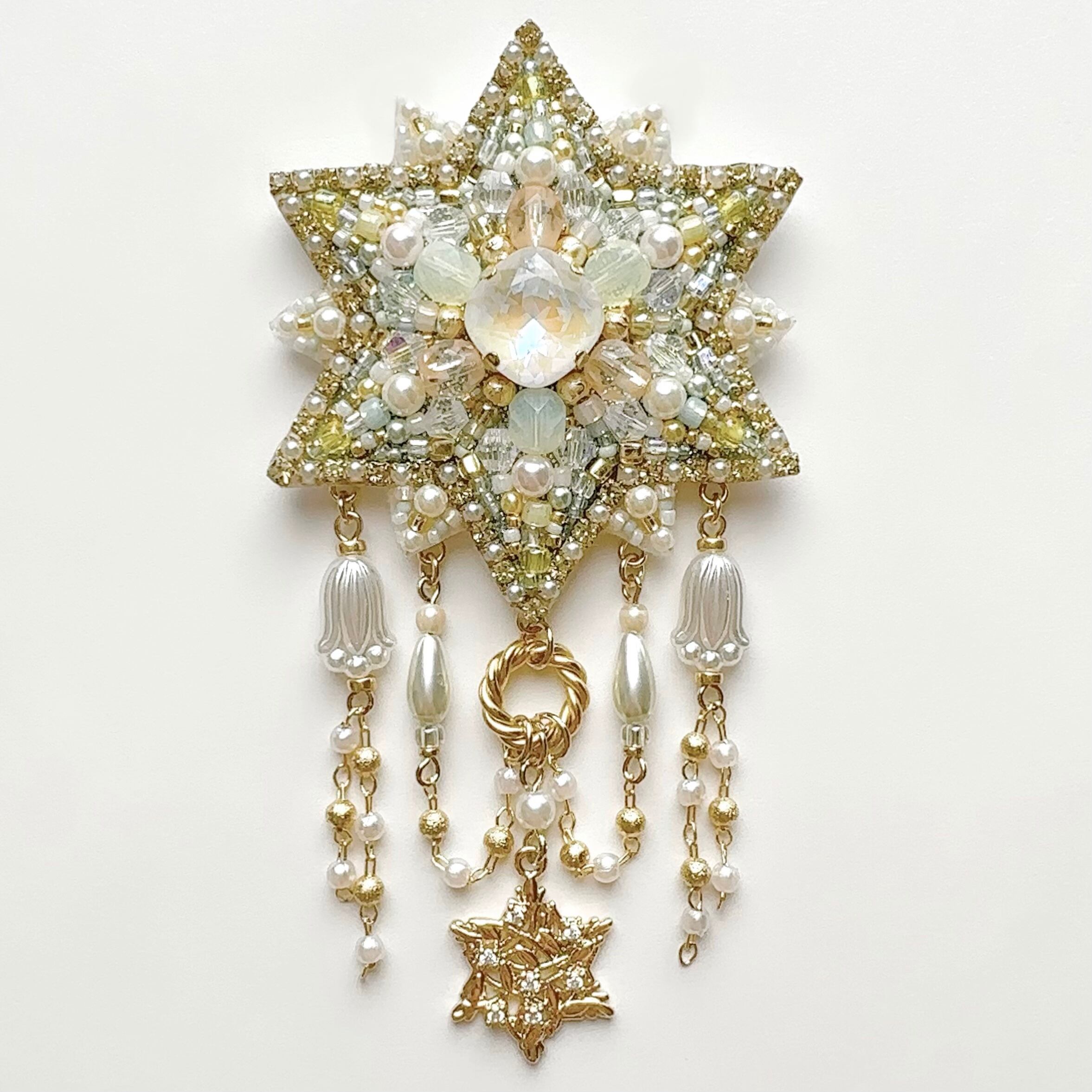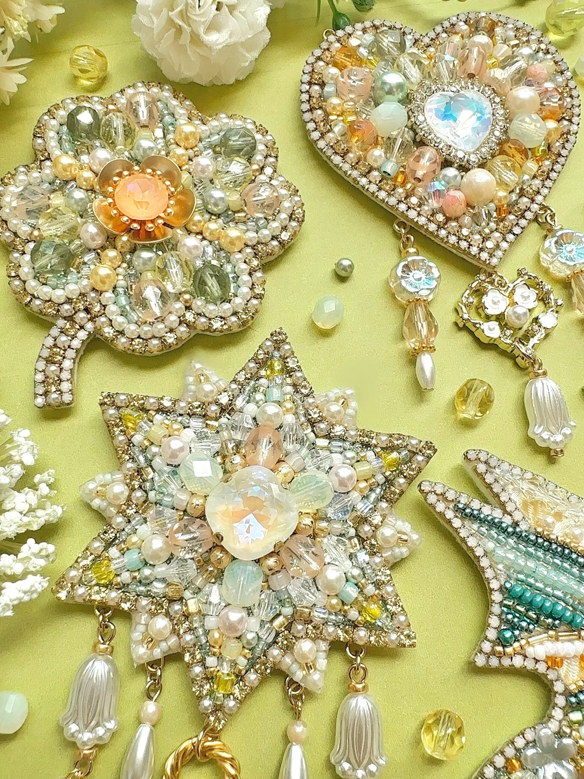 ビーズ刺繍のブローチ・ネックレス・バッグチャームの3wayです。