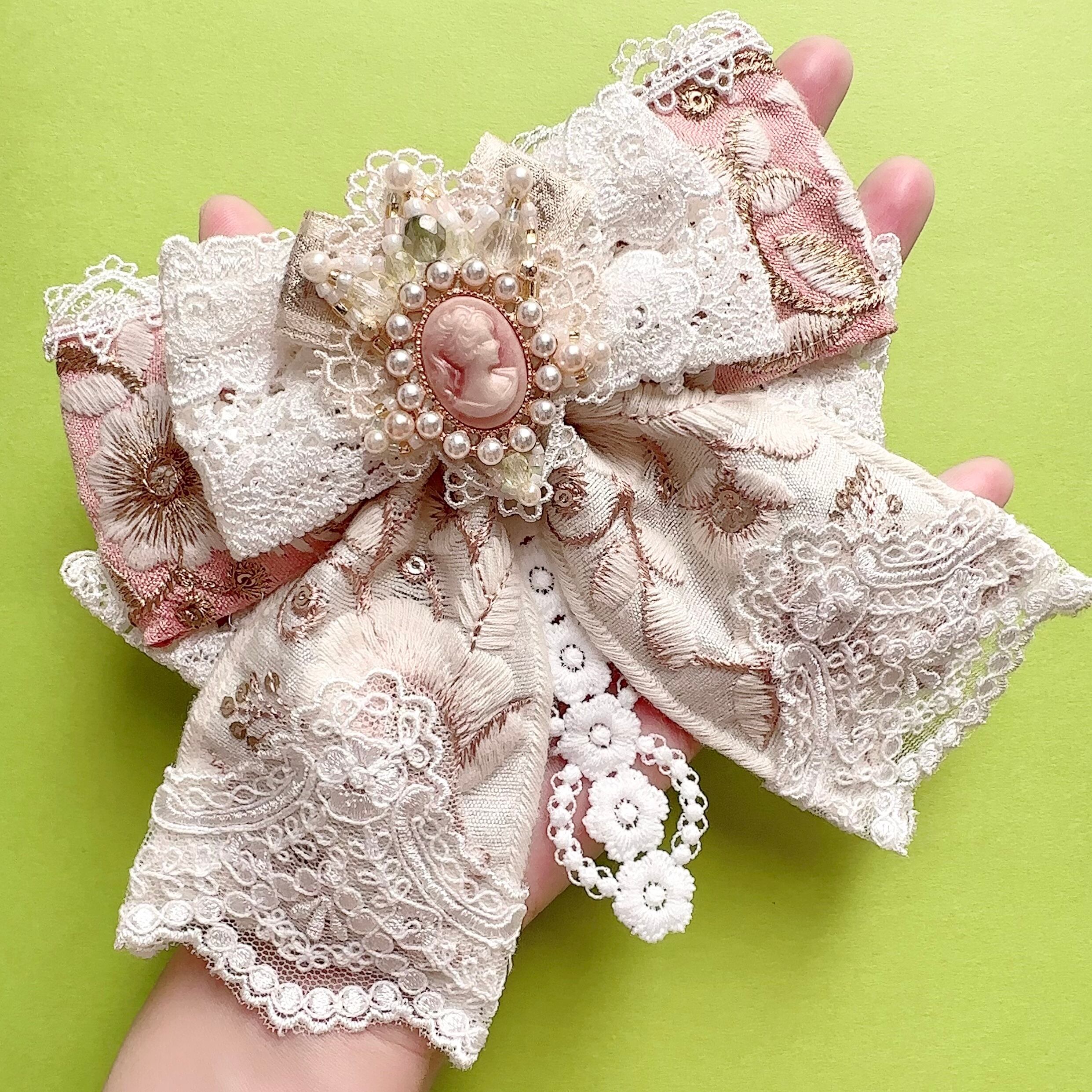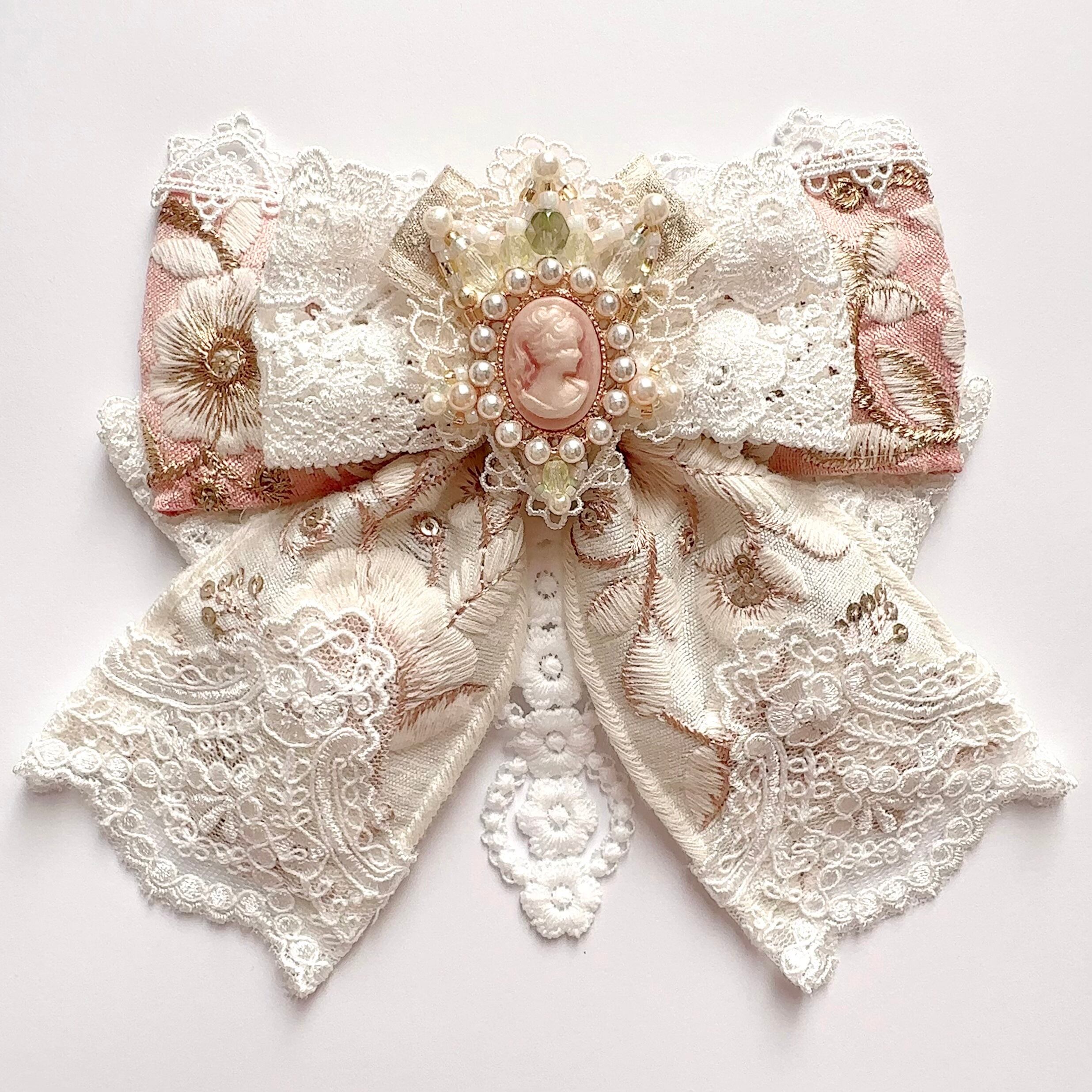 ※バレッタの金具が見えてしまわないように、正面から見て大幅にデザインの影響がないよう致しますが一部レースを使用する場合があります。