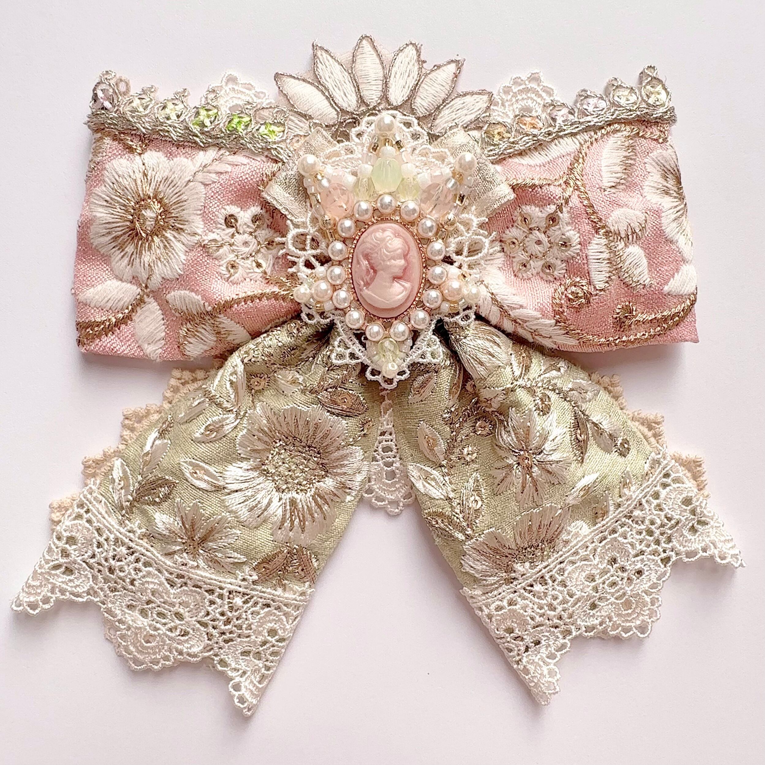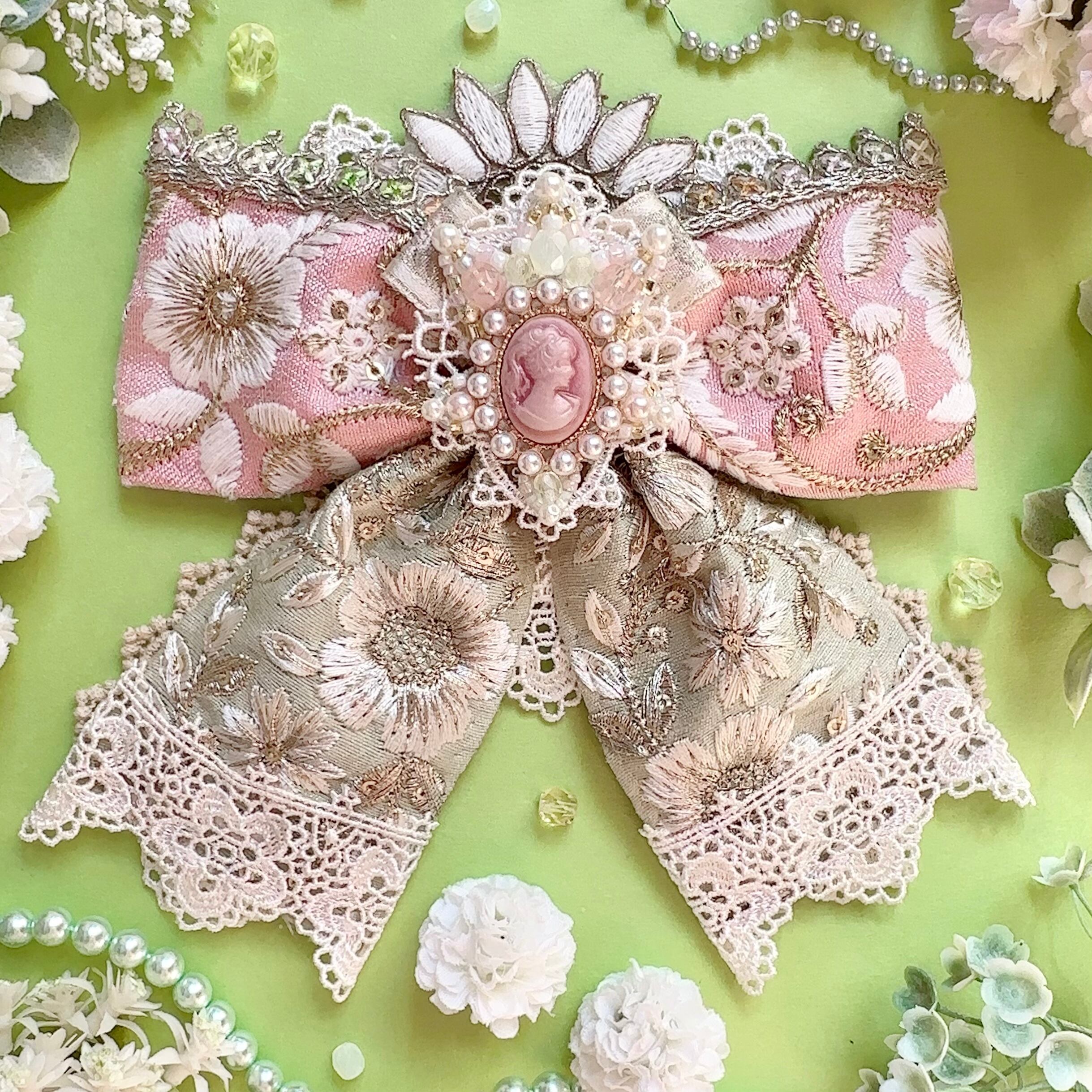 ※バレッタの金具が見えてしまわないように、正面から見て大幅にデザインの影響がないよう致しますが一部レースを使用する場合があります。