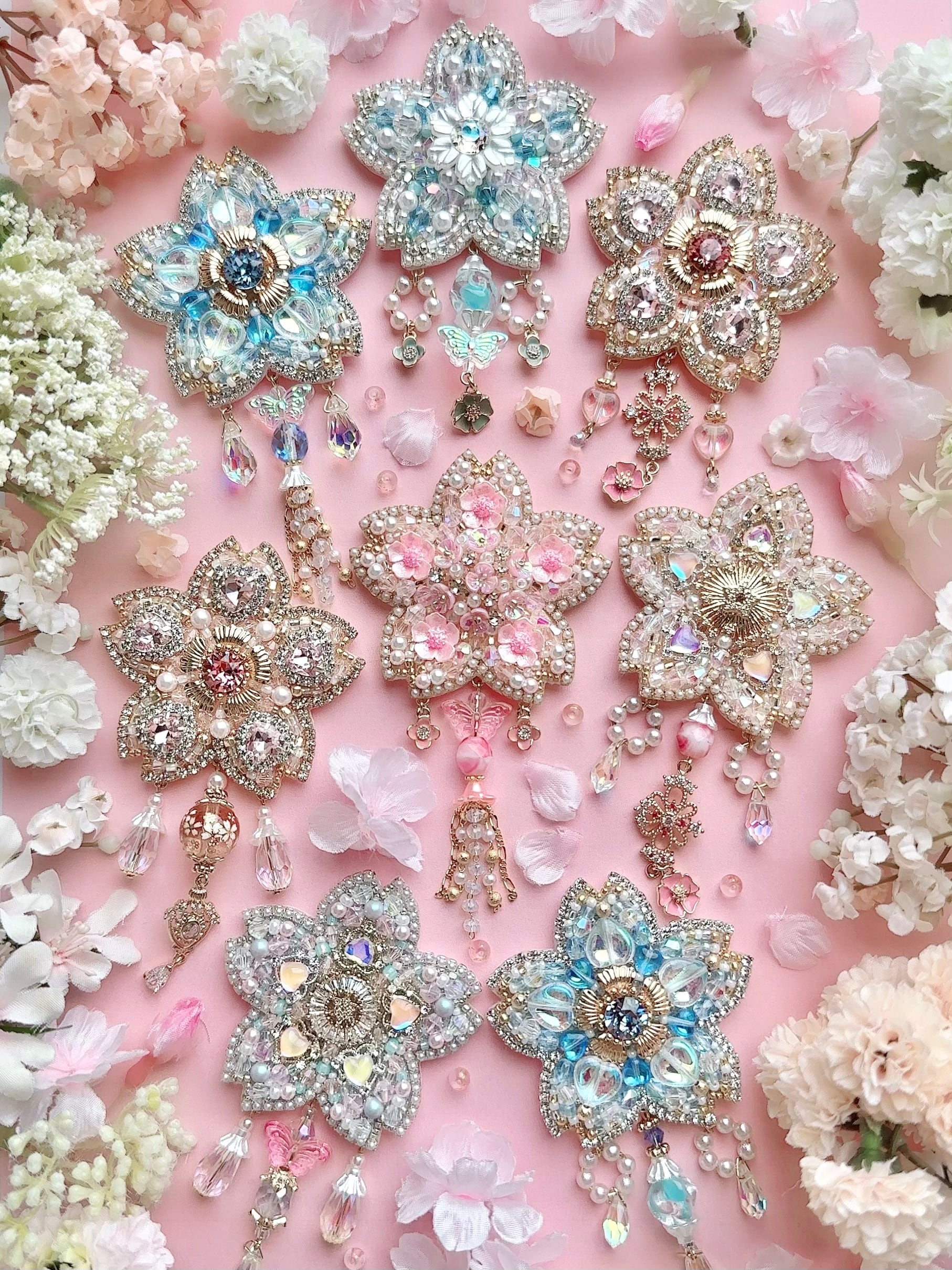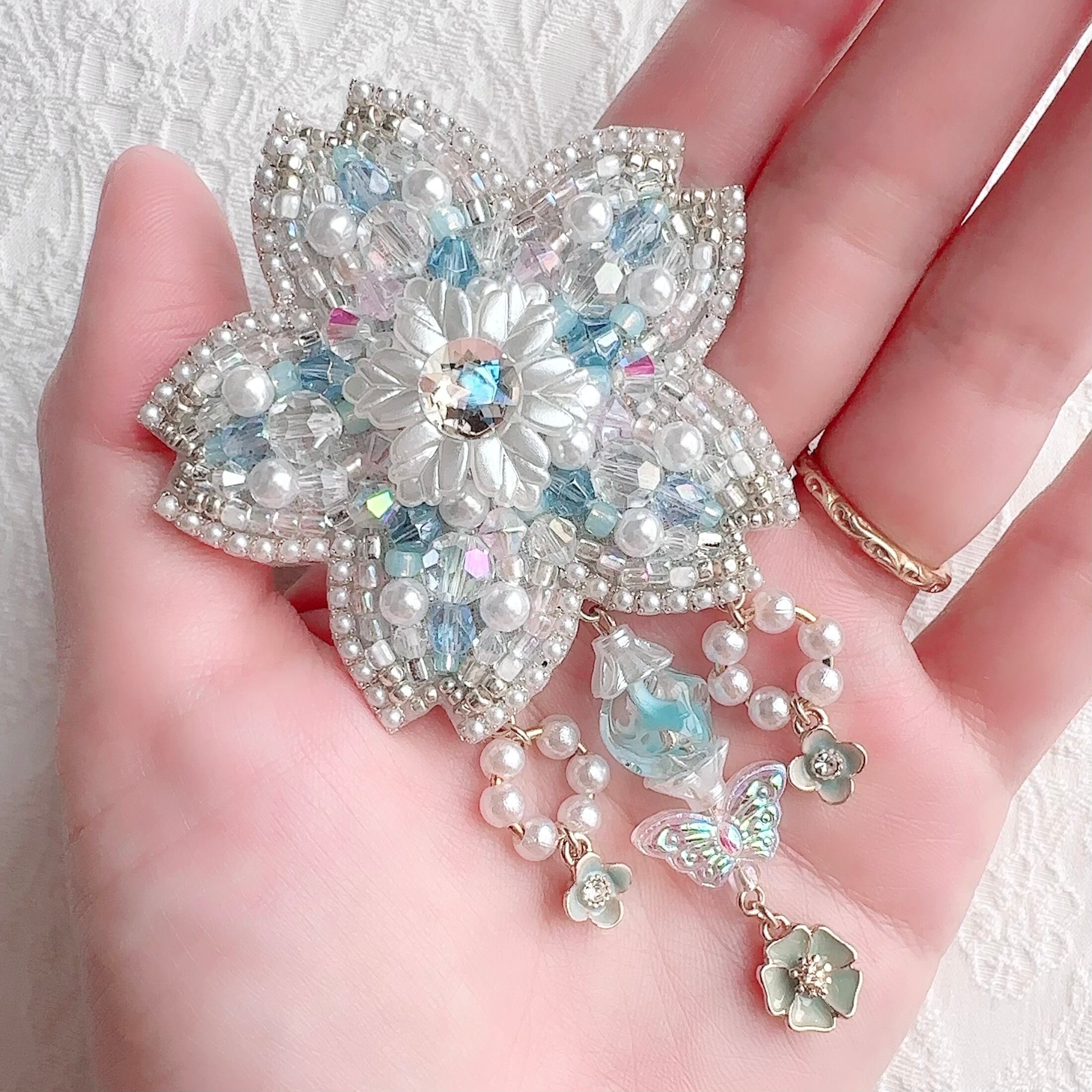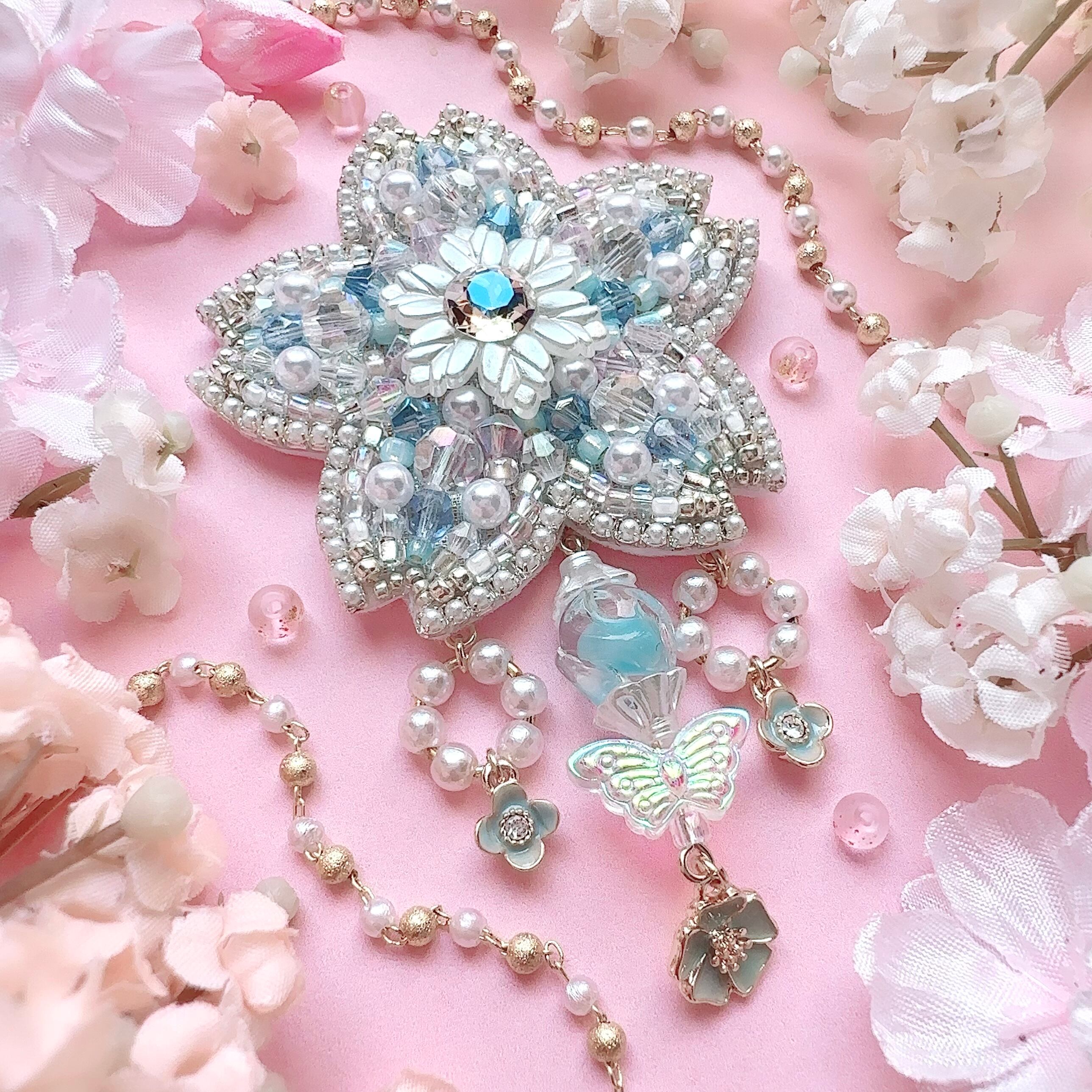 ビーズ刺繍のブローチ・ネックレス・バッグチャームの3wayです。