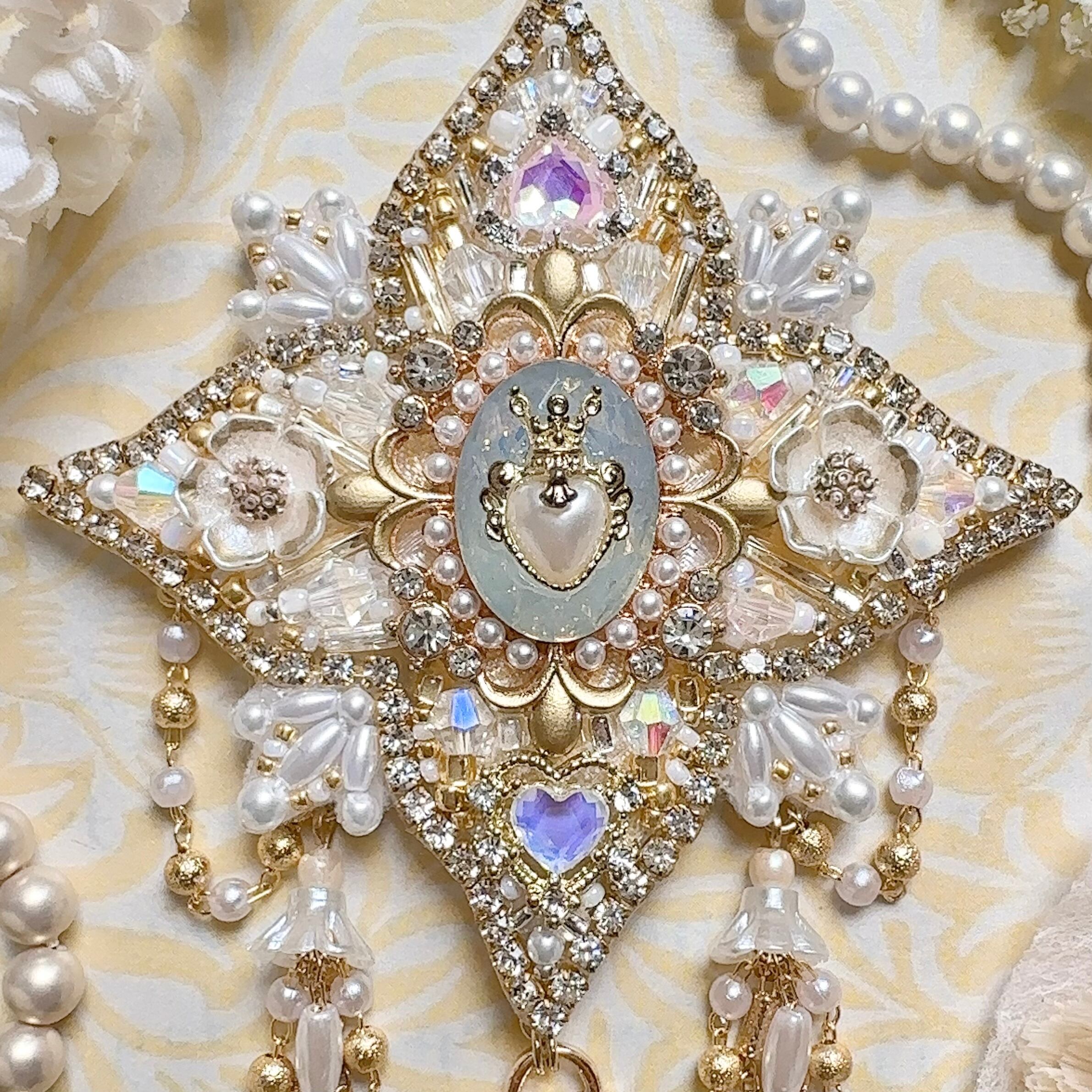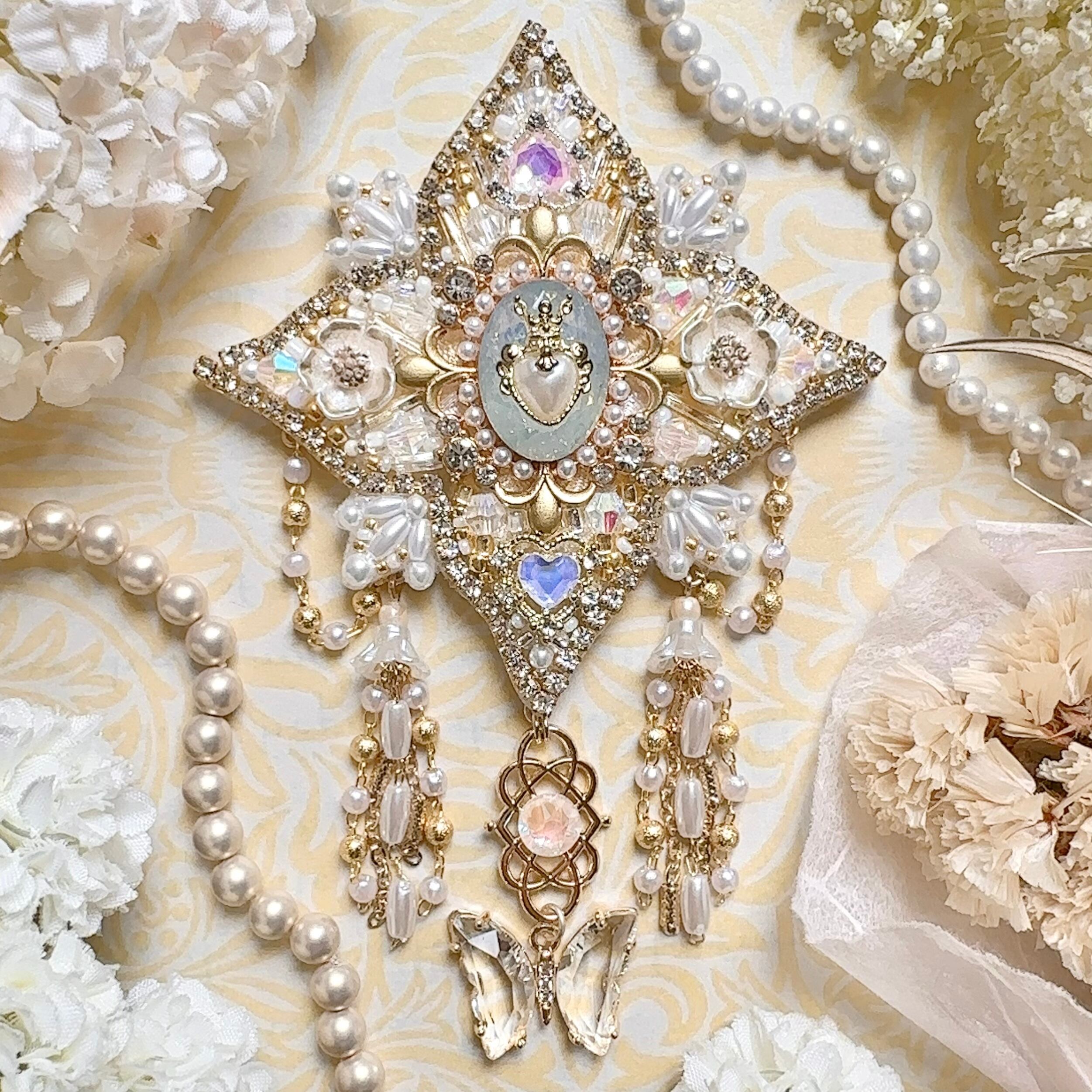 ビーズ刺繍のブローチ・ネックレス・バッグチャームの3wayです。
