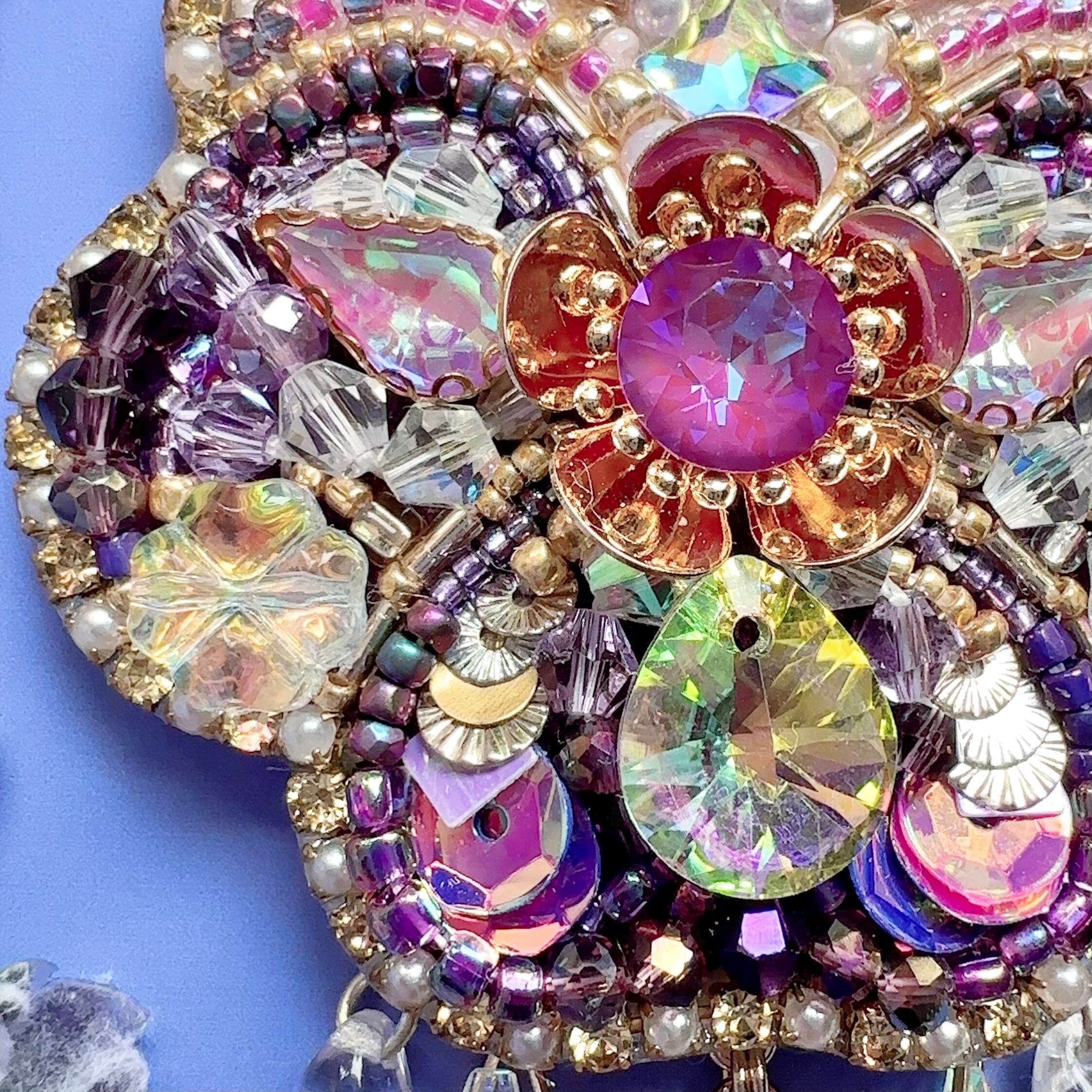ビーズ刺繍のブローチ・ネックレス・バッグチャームの3wayです。