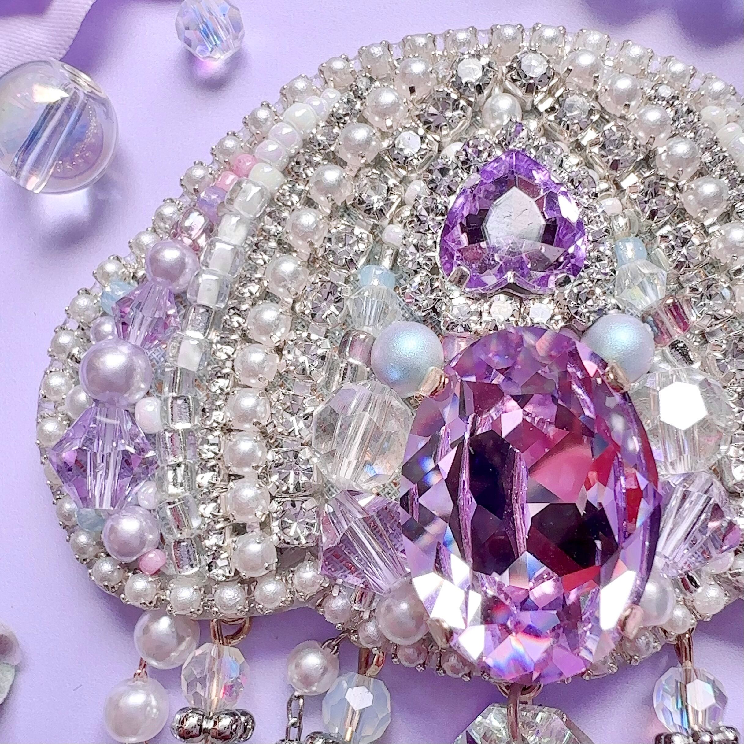 ビーズ刺繍のブローチ・ネックレス・バッグチャームの3wayです。