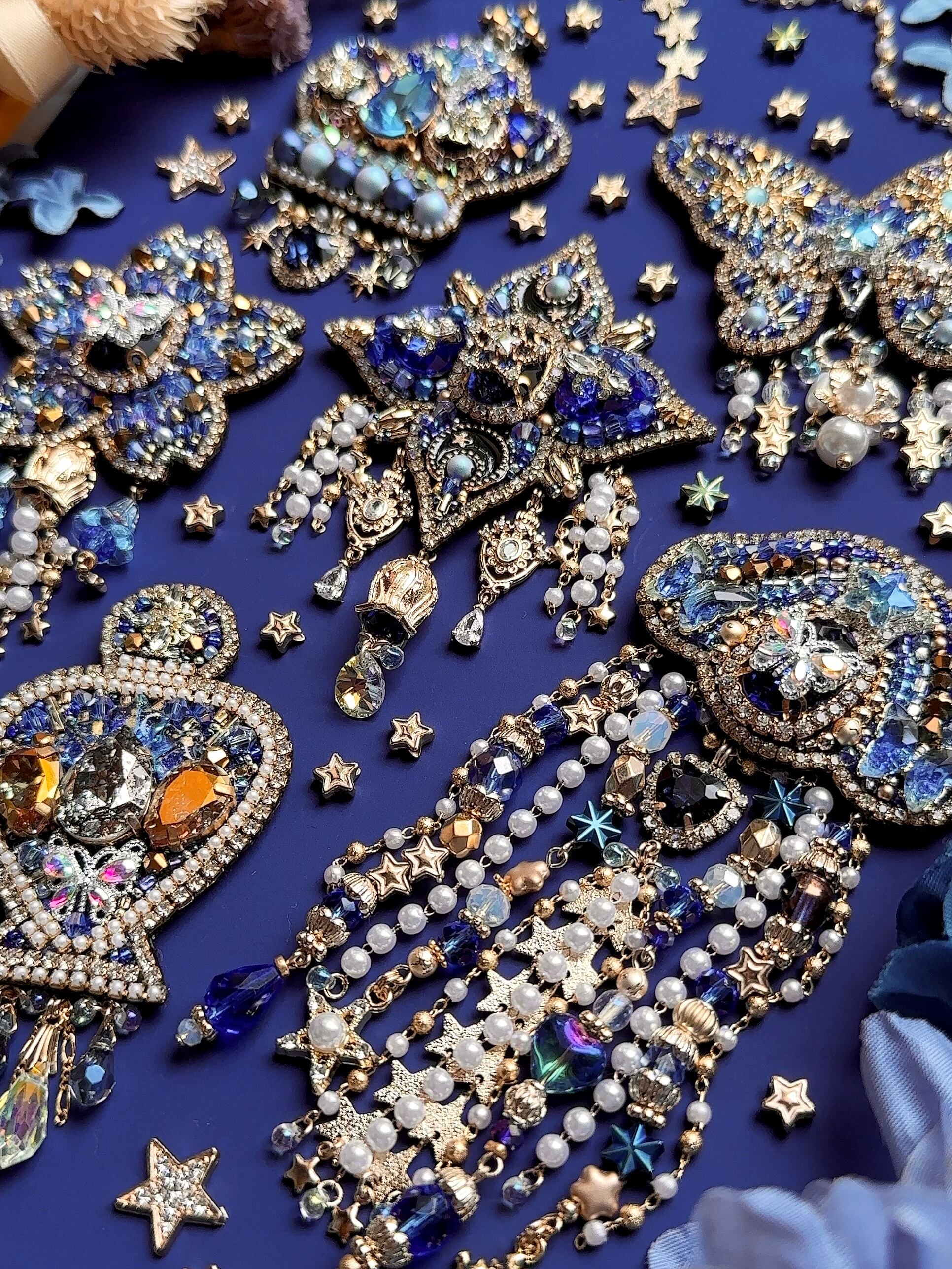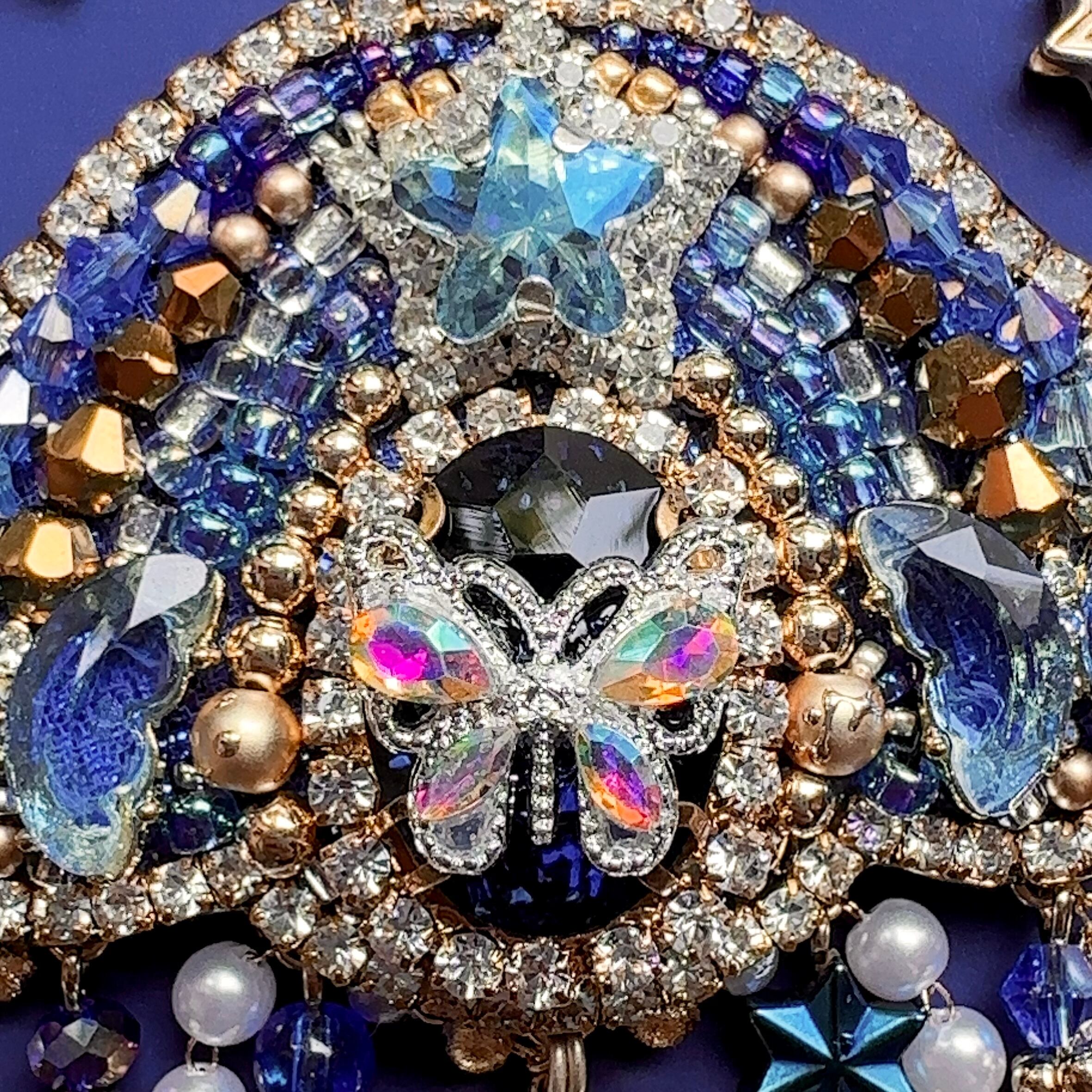 ビーズ刺繍のブローチ・ネックレス・バッグチャームの3wayです。