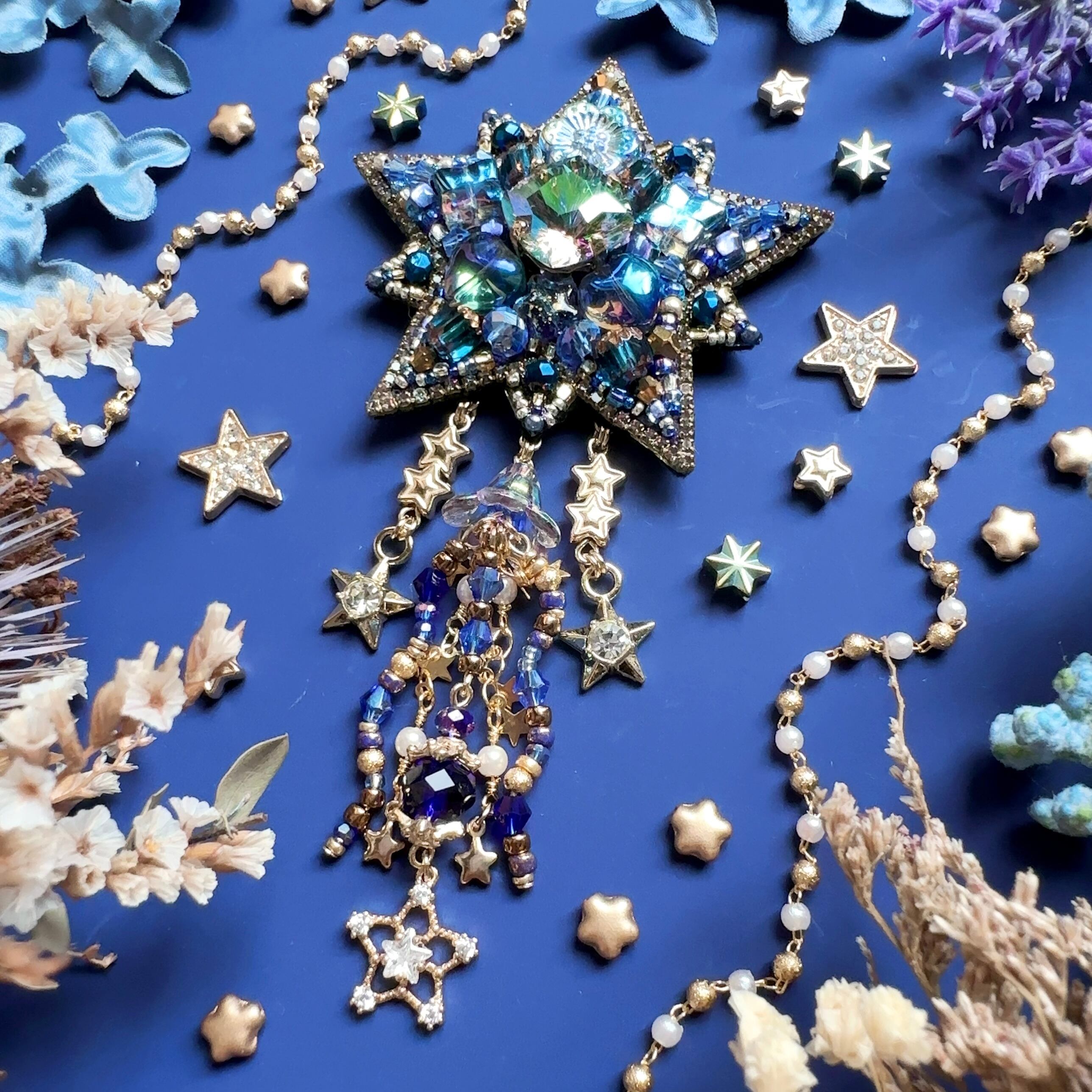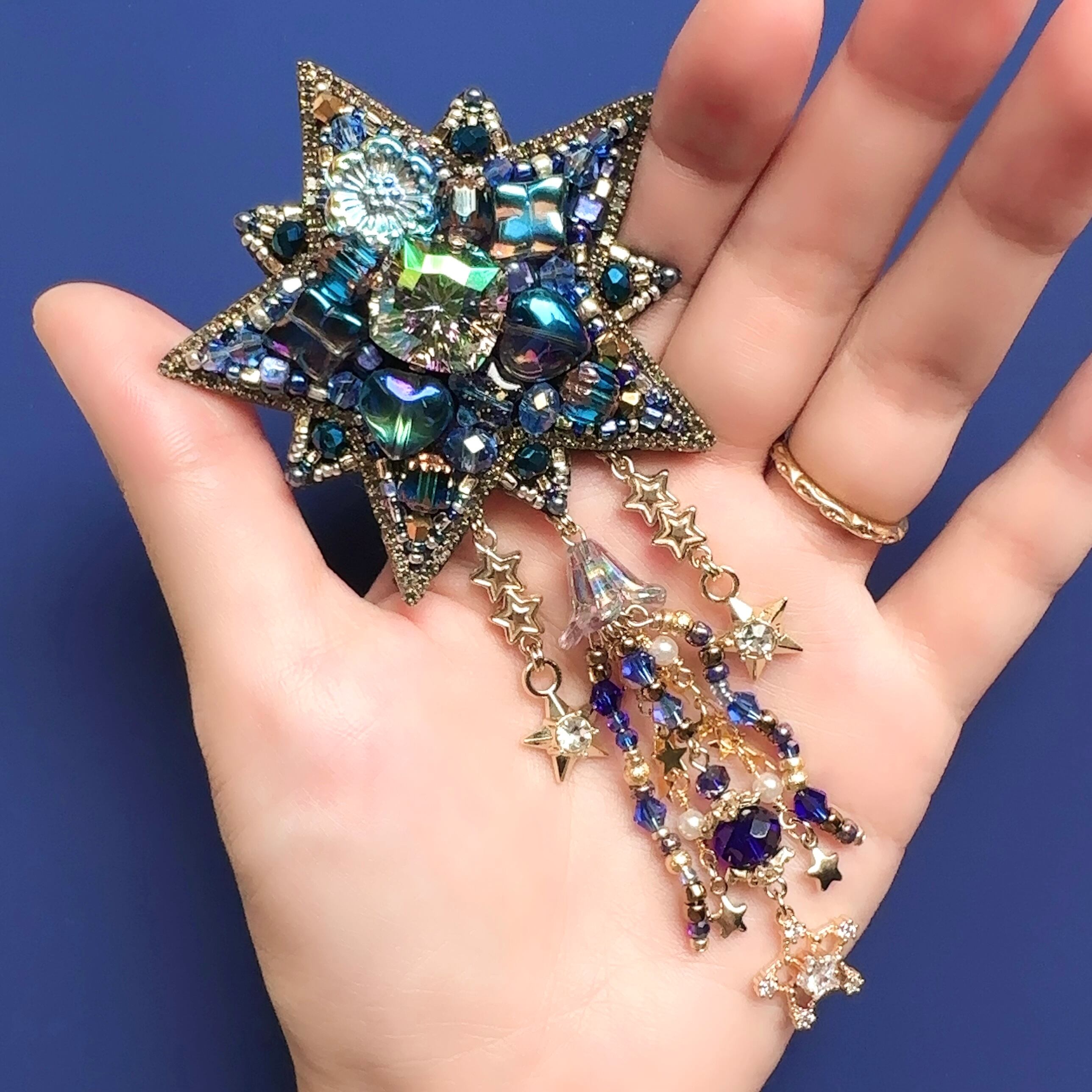 ビーズ刺繍のブローチ・ネックレス・バッグチャームの3wayです。