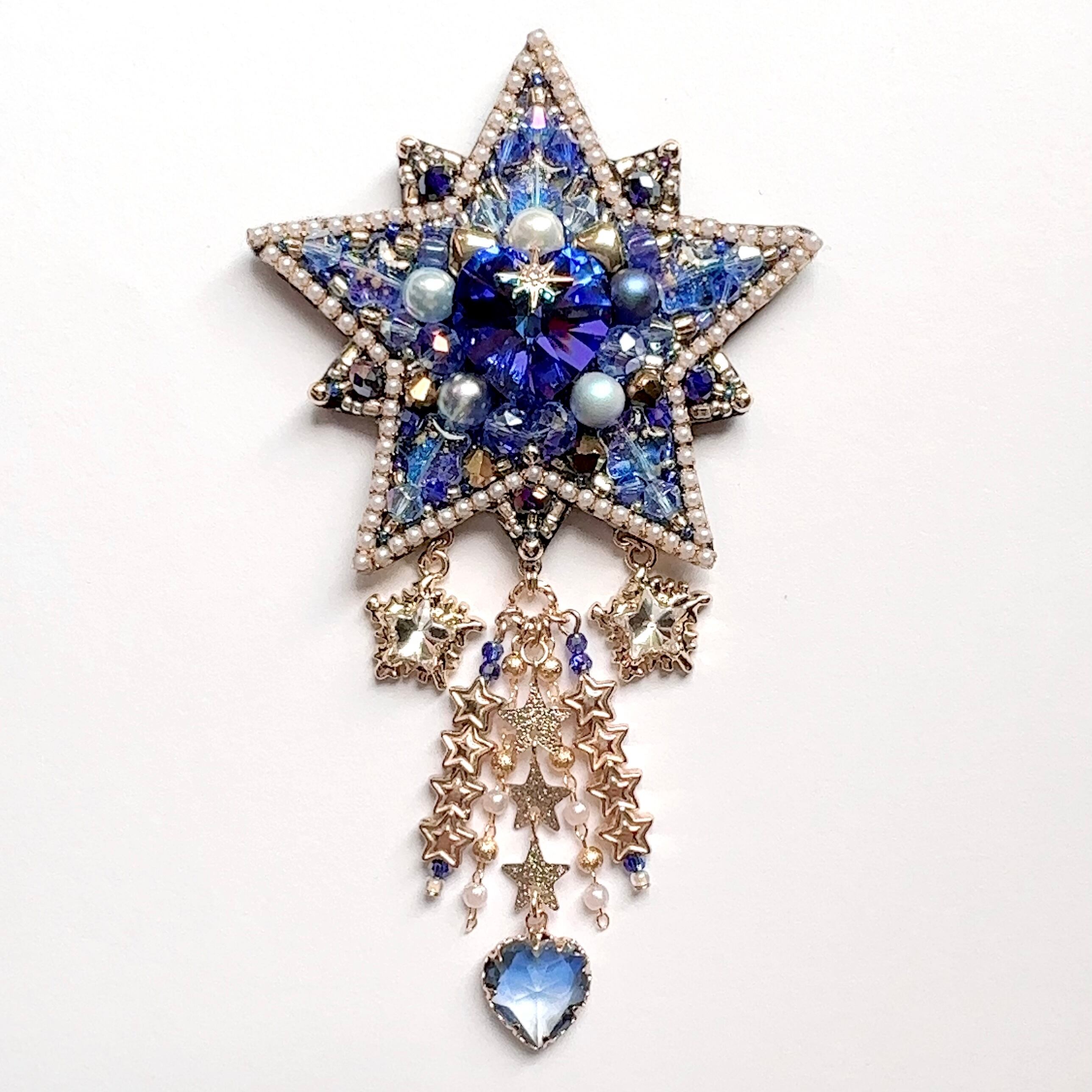 ビーズ刺繍のブローチ・ネックレス・バッグチャームの3wayです。